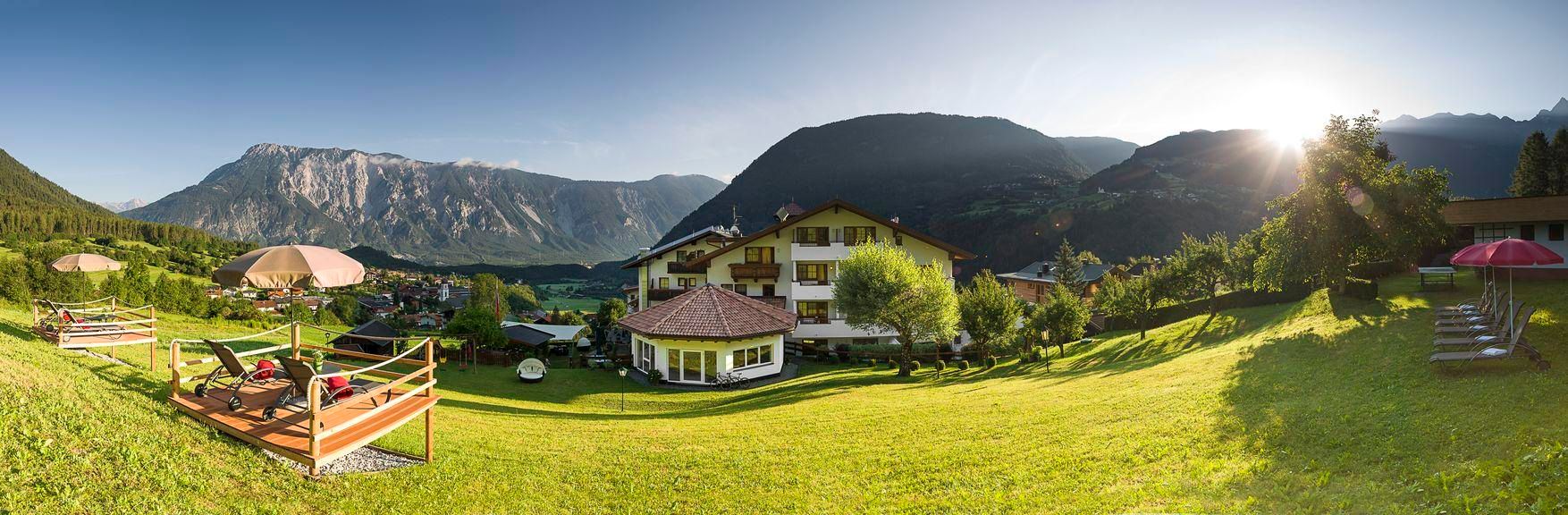 Surrounded by a 15,000 m² park, the completely renovated Aktiv Panoramahotel Daniel awaits you on a panoramic plateau above Sautens. Coziness and warm friendliness surround you in our family-run hotel and make your feel-good vacation an experience. Look forward to a large wellness area and a solar-heated outdoor pool.