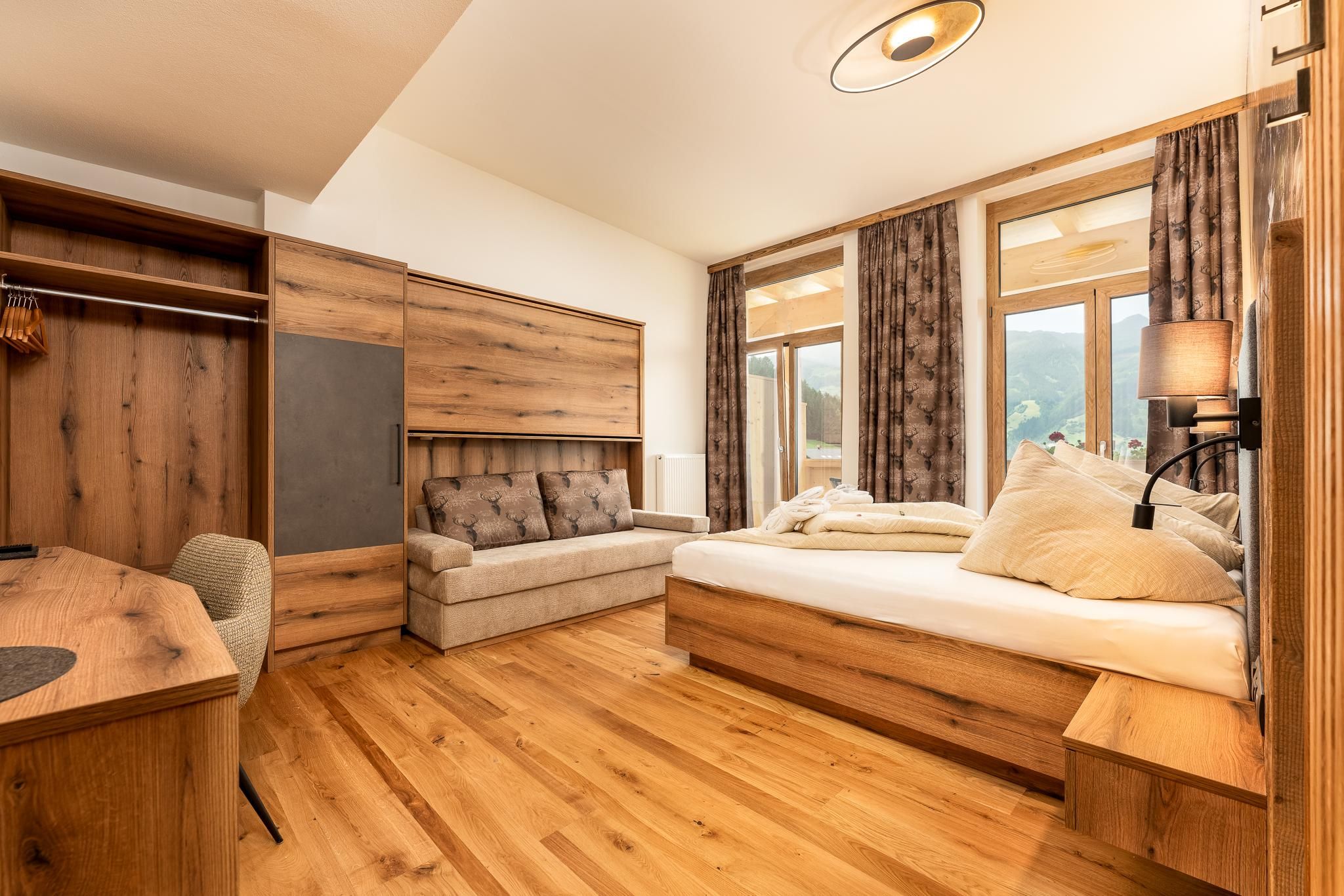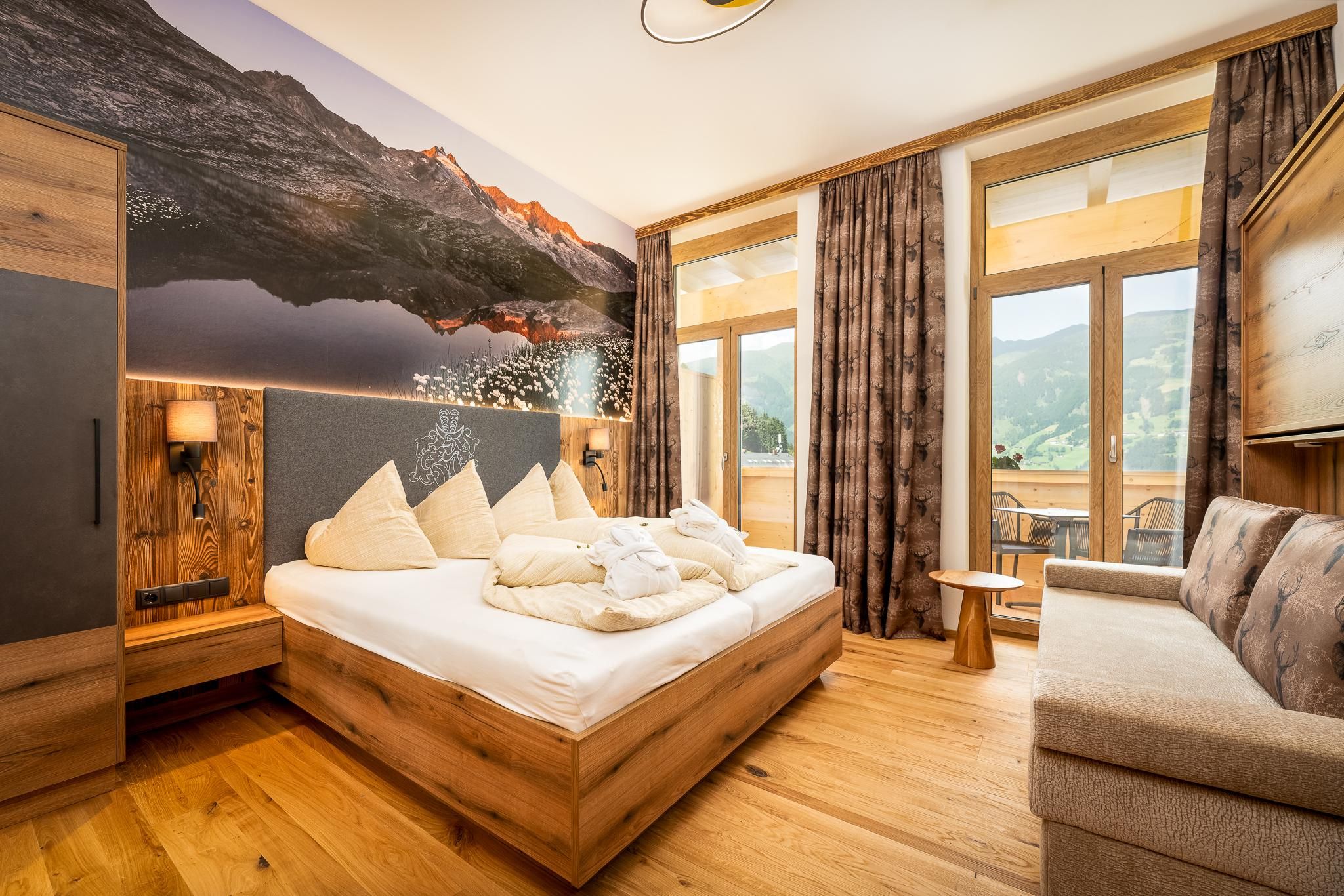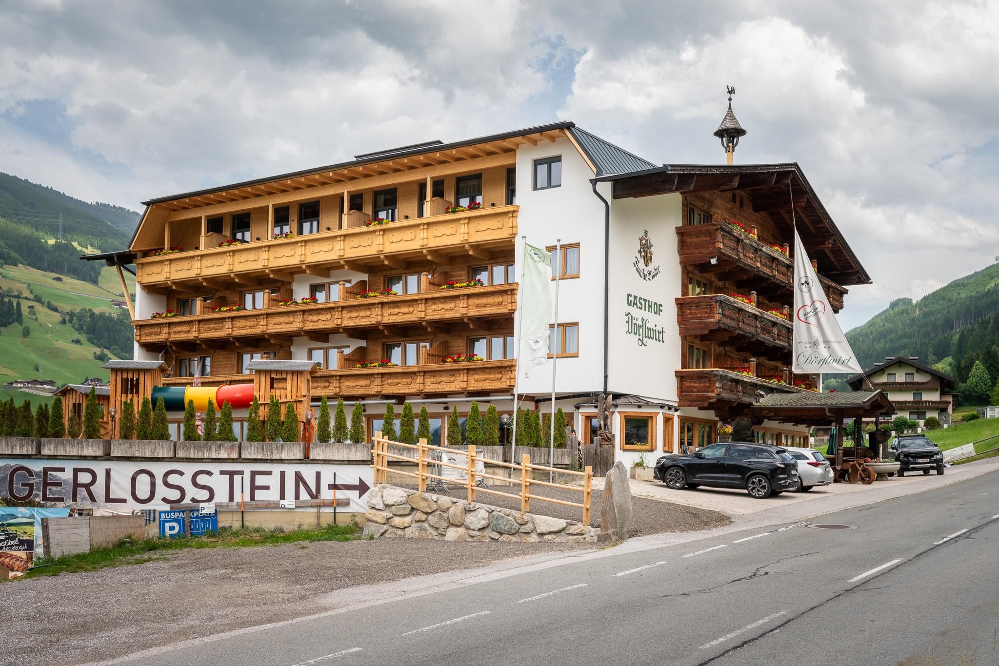 The Family Hotel Dörflwirt the hotel with heart and atmosphere. Our traditional tyrolian and over generations leading hotel,is located on a sunny plateau on the Hainzenberg, above Zell am Ziller and direct next to the gerlossteinbahn. The highlight: a breathtaking view to the Zillertal. You will experience tyrolian and honest hospitality. tyrolian premises, austrian cuisine, a unique spa area, panorama fitness room, lovely decorated rooms, playroom for kids, play cave for adults and kids, this all will expect you in our hotel. An absolute highlight in front of our hotel is the 7km natural toboggan run at Gerlosstein, which is illuminated at night until 1:00 am. The family-friendly ski area of Gerlosstein, which is part of the Zillertal Arena, is especially suitable for families and for stress-free skiing, as you do not have to put up with queuing or waiting in line. Our special service in the winter includes an in-house ski-hire shop and ski school, information for the whole family on you arrival day. The bus stop for the ski bus to the Zillertal Arena is directly in front of our hotel. The family hotel Dörflwirt is the ideal starting point for unforgettable hiking, climbing and mountain biking adventures and all day-excursions in any weather. Come stay with us and enter a world of relaxation, adventure and fun for the whole family. Enjoy a wonderful a unique holiday. Your hosts the Binder Family