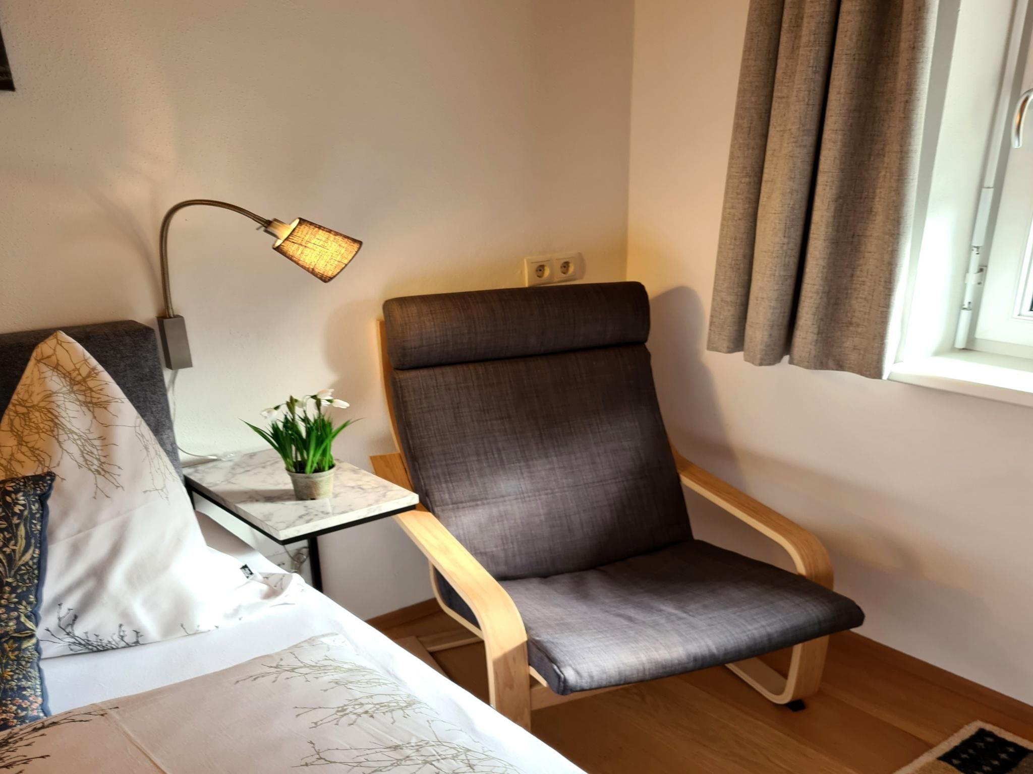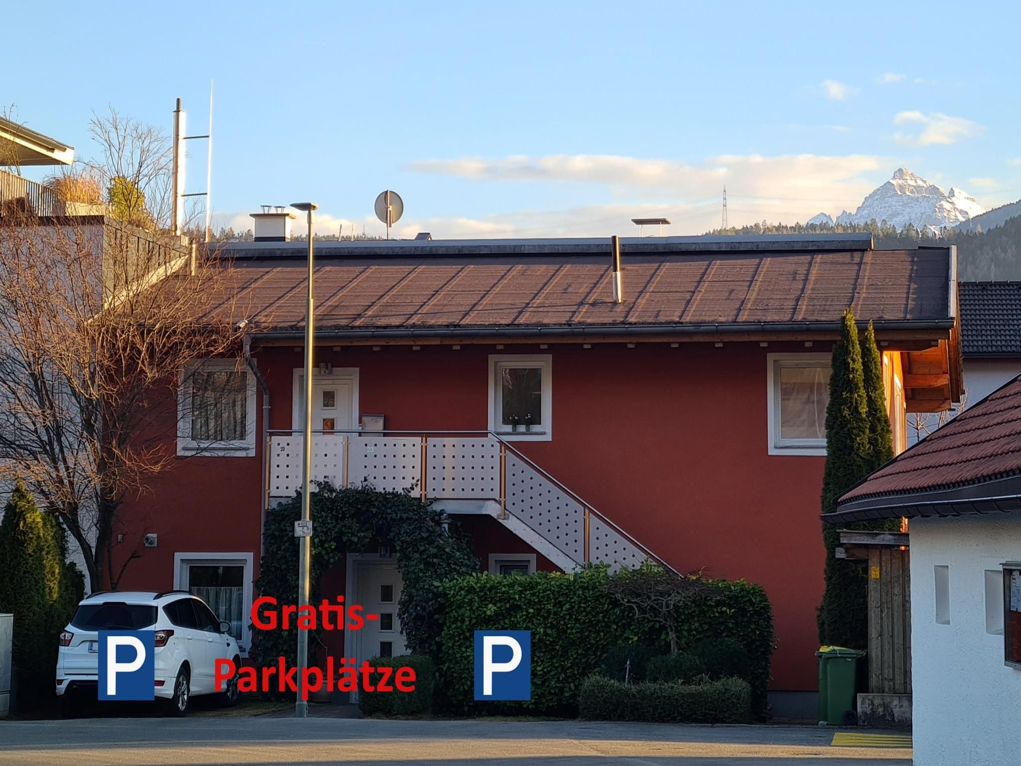 A free parking space for guests is available on the northern side of the building. There, you will also find the external staircase to the entrance of the apartment. The apartment is equipped with a key safe for self check-in.