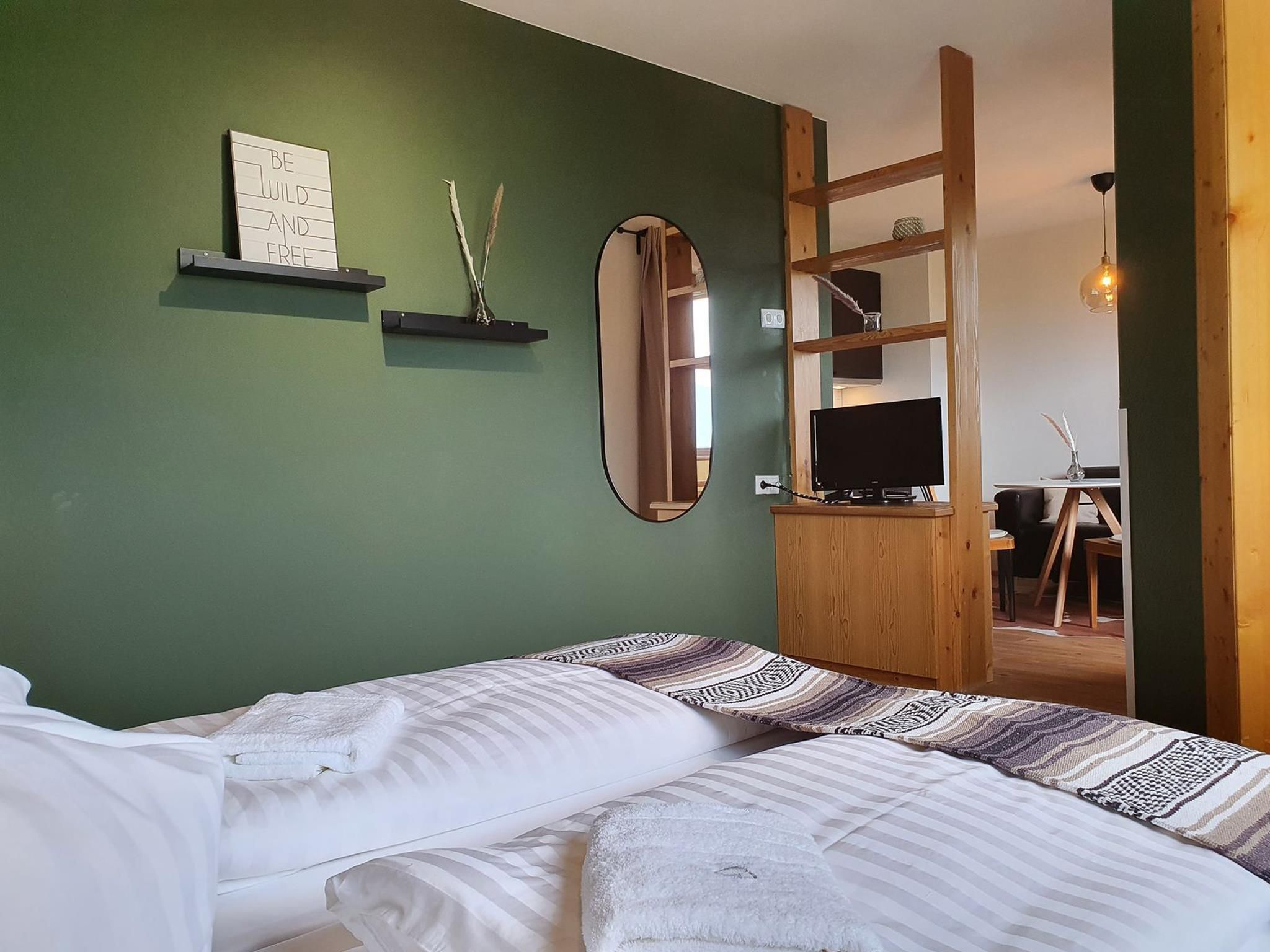 Four cosily furnished apartments are arranged on two floors (without lift) and offer space for totally 16 people. All flats are completely renovated and equipped with new kitchens and stylish, modern furniture. Free parking, Wi-Fi and 24/7 check-in with key code system. The Götzner Nockspitzbahn and the ice sports centre as well as the bus stop are nearby. Very good public connection to Innsbruck and the neighbouring skiing areas Axamer Lizum and Muttereralm. The popular Gruberwirt restaurant is located directly in the house and offers excellent delicacies.