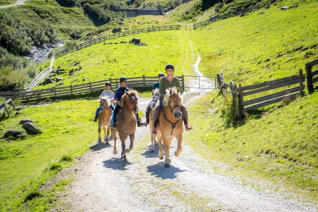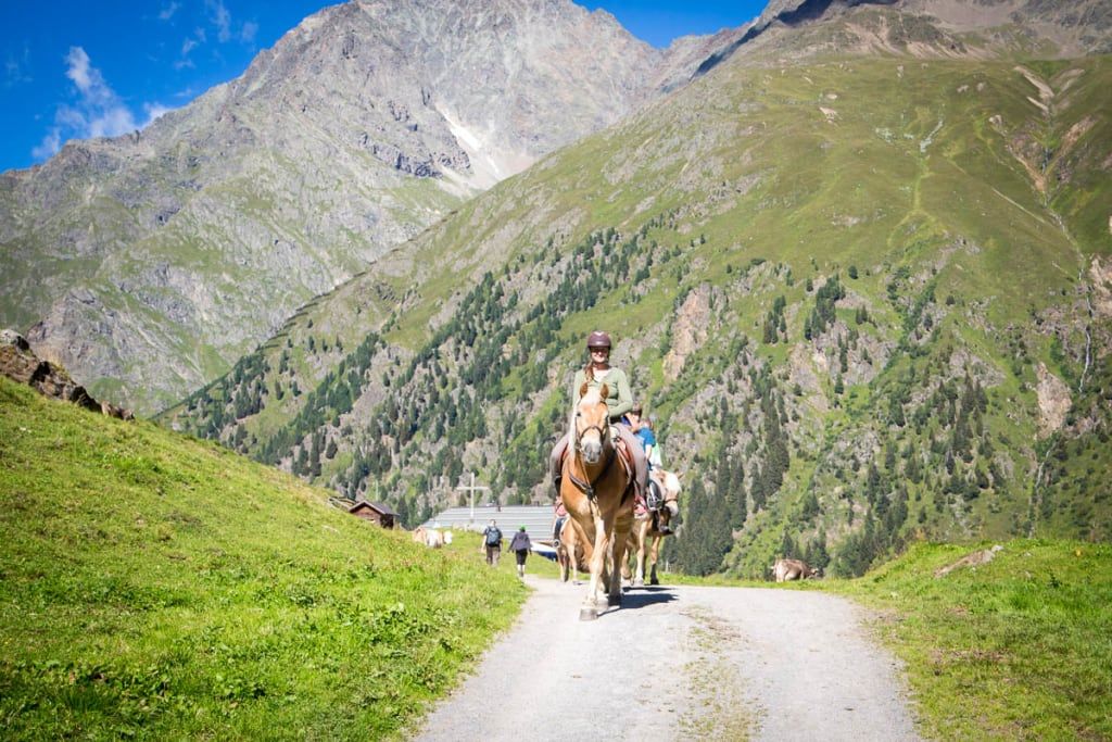 Our alpine farm and riding stable in Pitztal is in a quiet and sunny location, perfect for relaxing and reviving the senses. From Haflinger trekking, horse-drawn carriage rides to children's riding and helping out around the farm, we have many options for everyone. We have large and small animals on our farm - and of course we also look forward to the animals that owners bring on holiday with them. Recharge your batteries at our breakfast buffet or relax after a hike in the sauna.