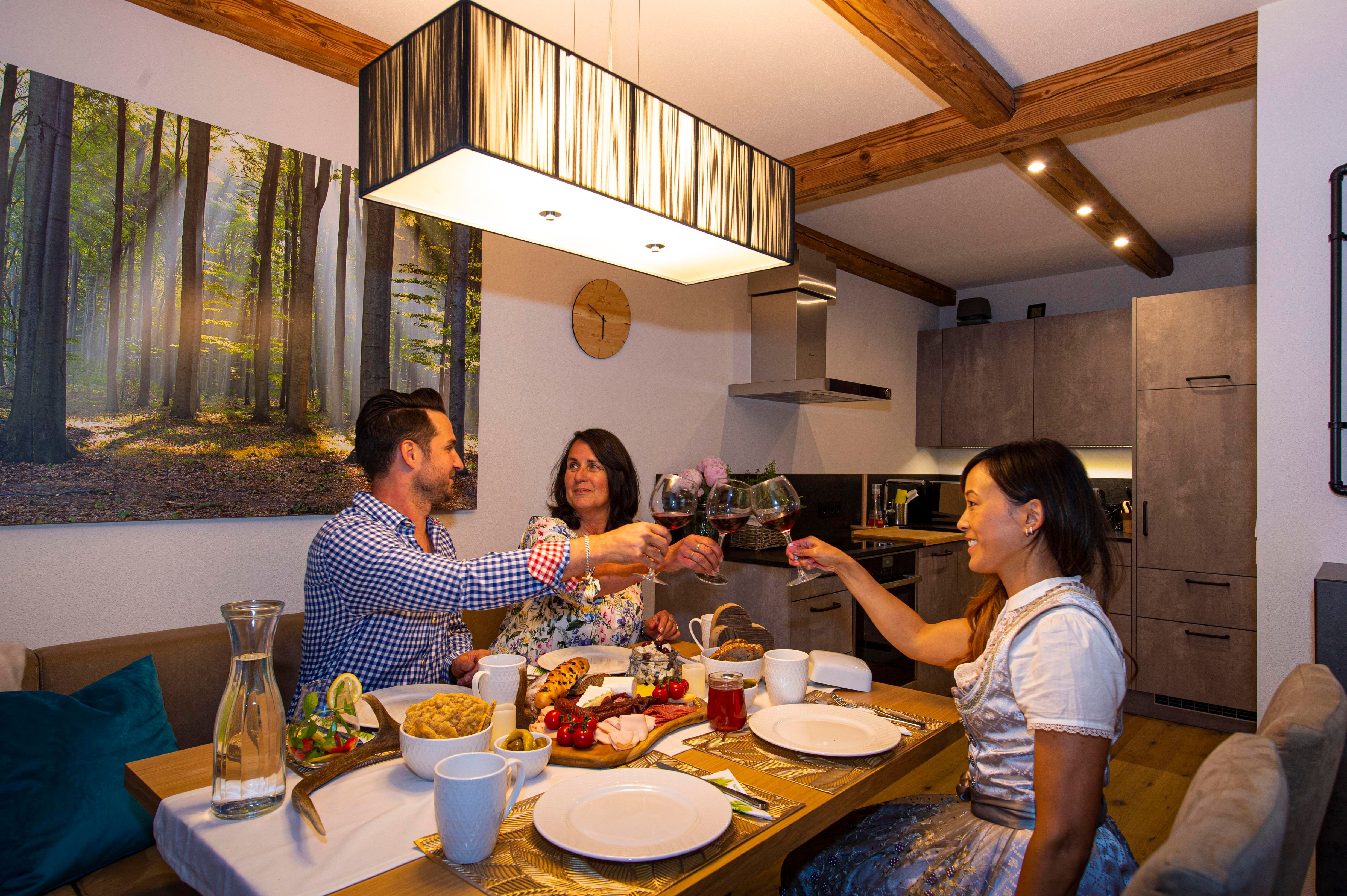 For our luxuriously furnished vacation apartment in Alpine style, special materials from the region were combined with the most modern equipment and technology. The unadulterated and genuine charm of the vacation apartment enters into such a unique symbiosis with the many carefully coordinated furnishing details that you already know in the entrance area that you will experience a very special time here.