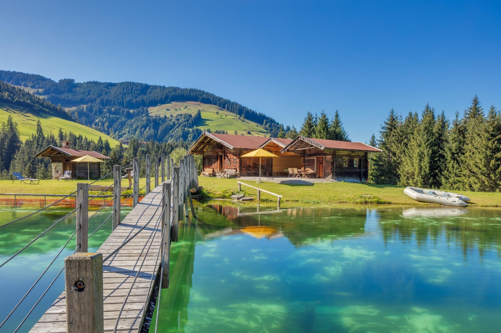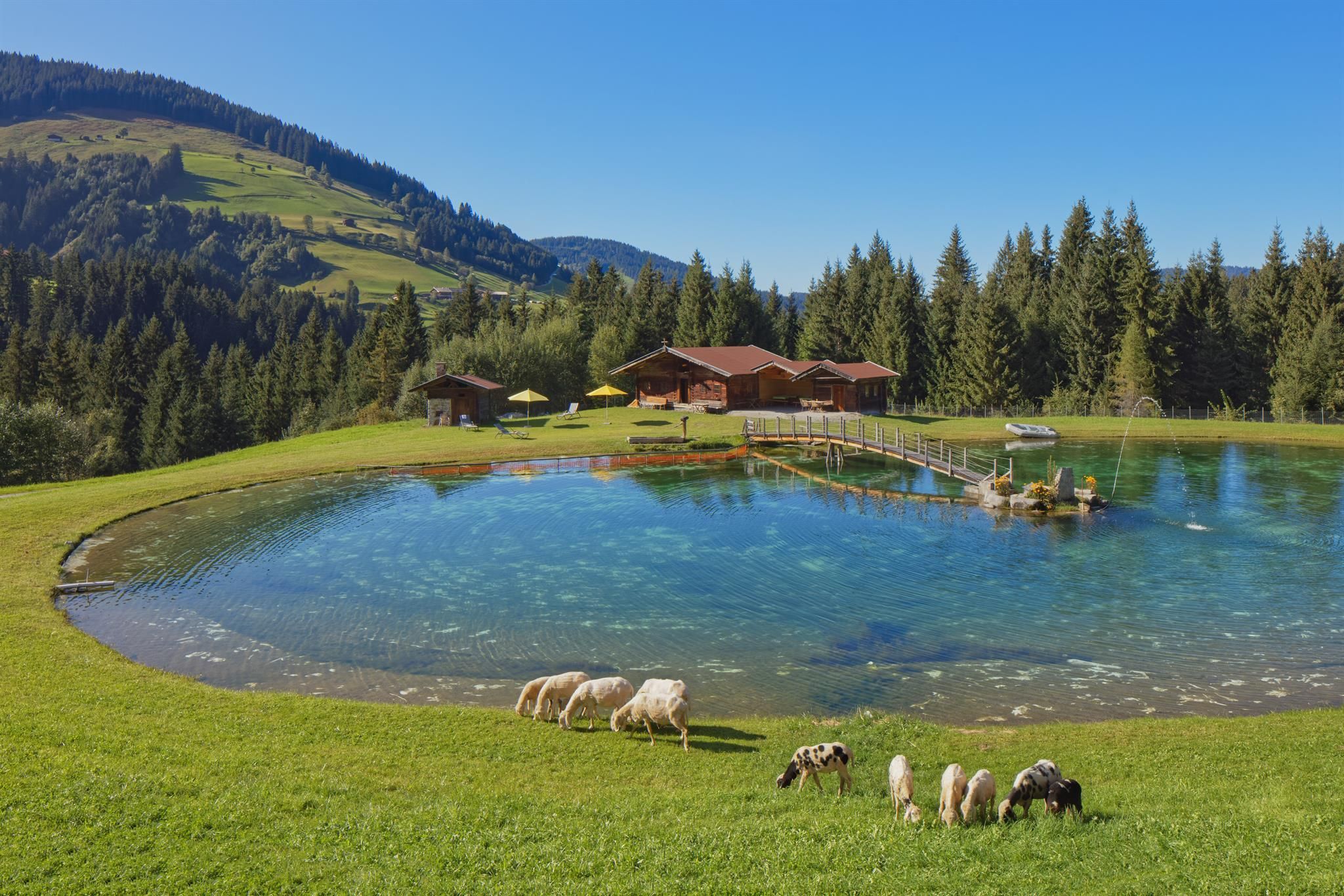 Or choose an apartment only. Without board. An indoor pool with spa and luxurious massages are also available at Talhof. For all hotel guests, whether you choose board or not. Our mountain lake is exclusive for Talhof guests.