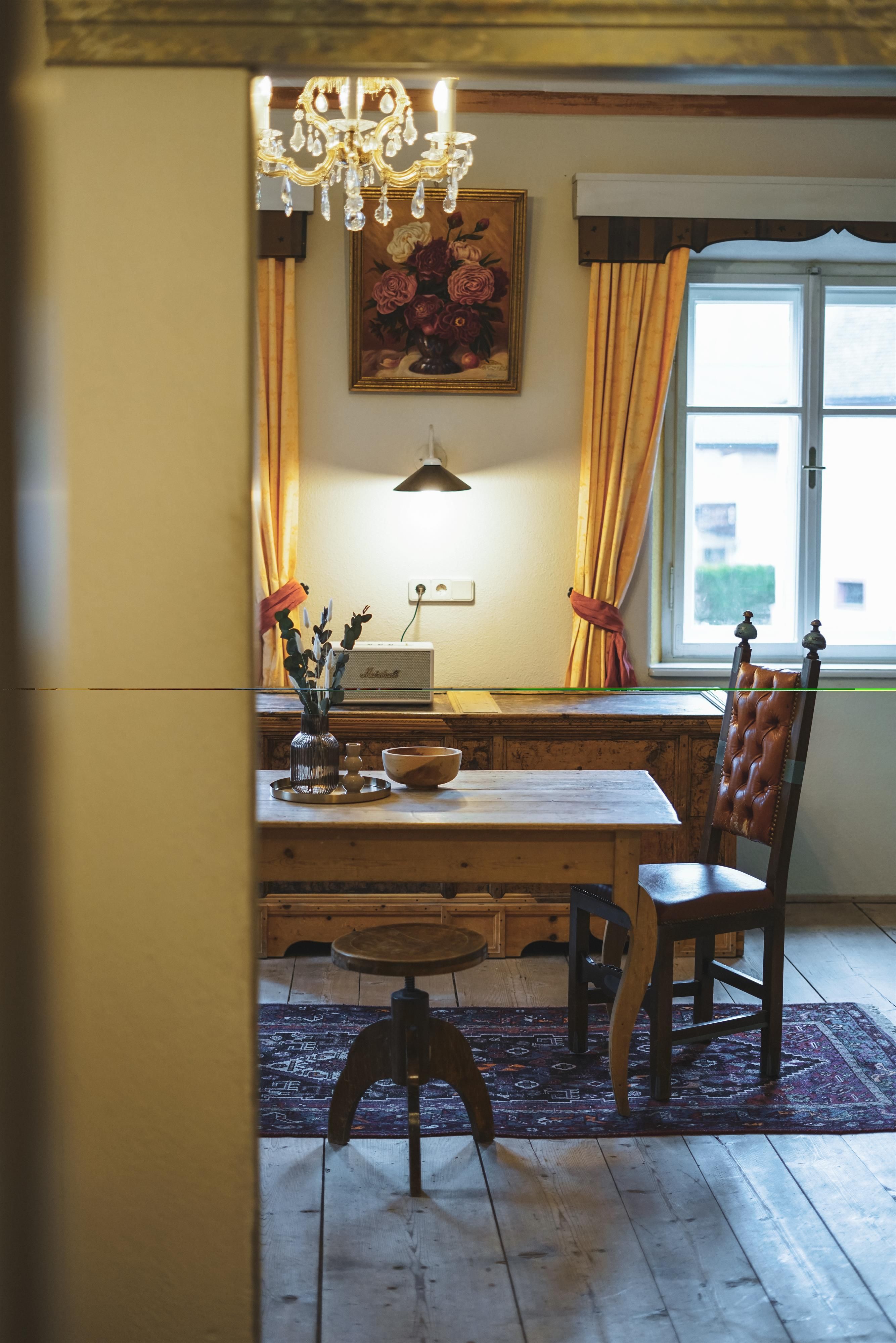 Protected ancient edifice, renovated in Tyrolean style. Apartments can be kooked with breakfast as well. Popular restaurant with Tyrolean parlur and Knights´ Room.