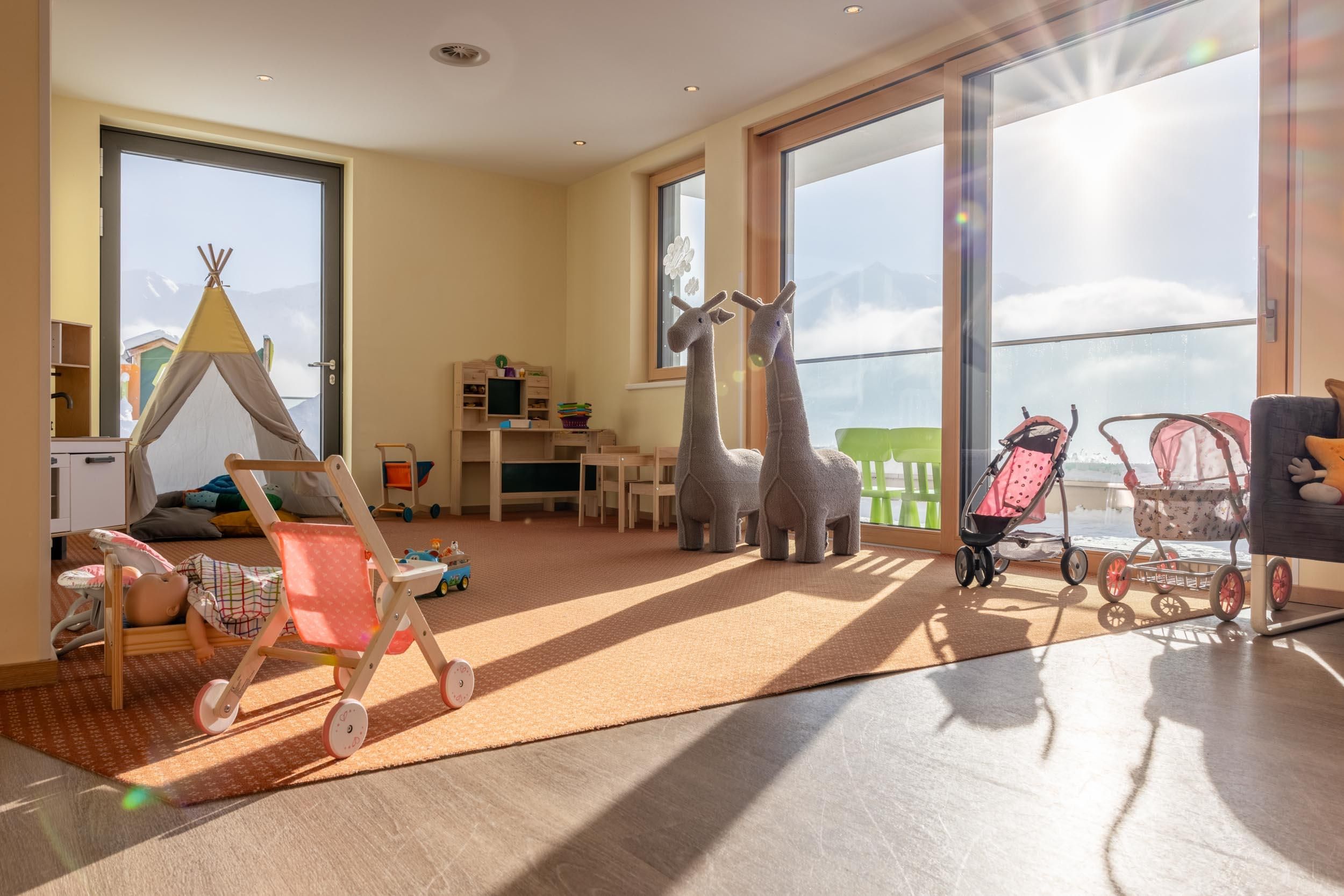 - 3,000m² adventure outdoor terrain with XXL sandpit, a playground with water attractions, etc.