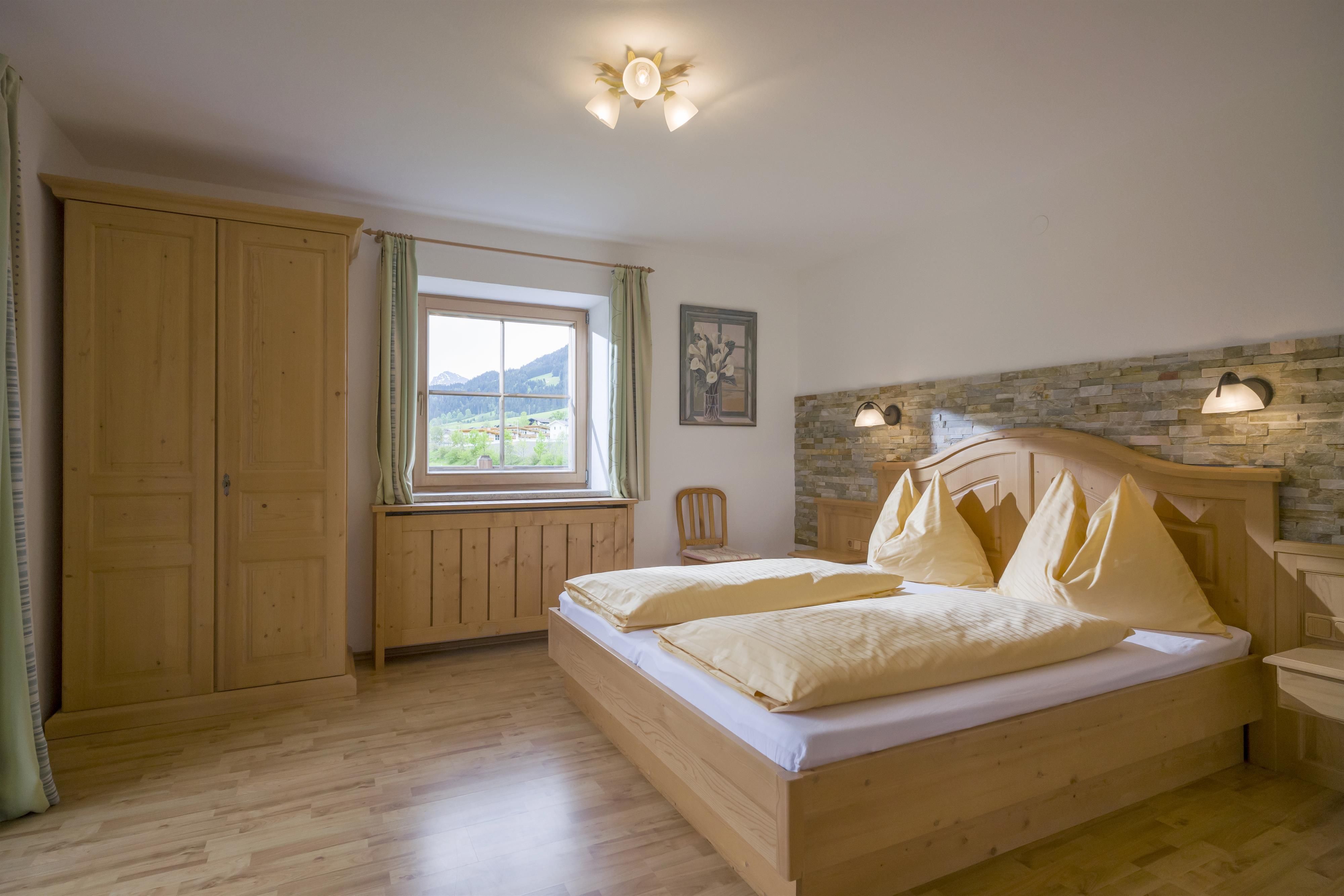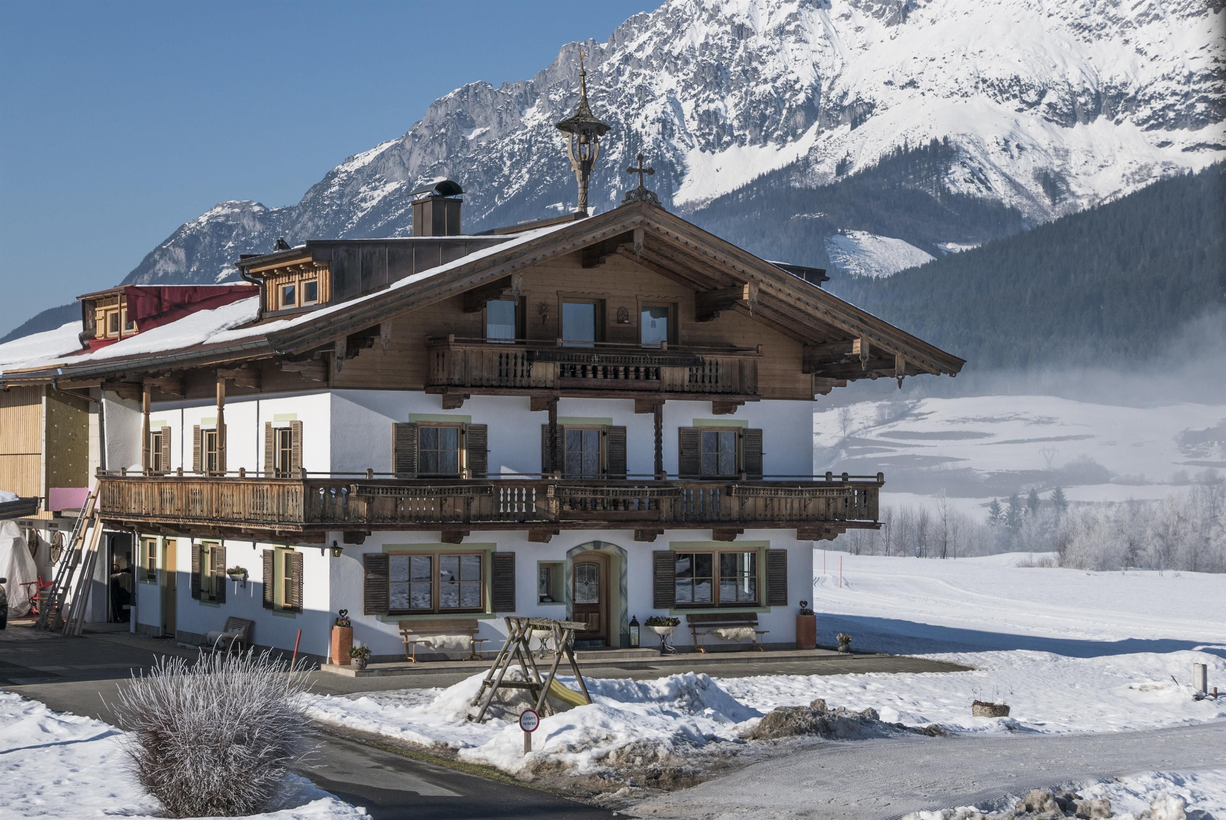 Our family-friendly, managed farm is situated in a sunny, quiet valley location next to the golf course with an unobstructed view of the Wilder Kaiser and the Hartkaiser.