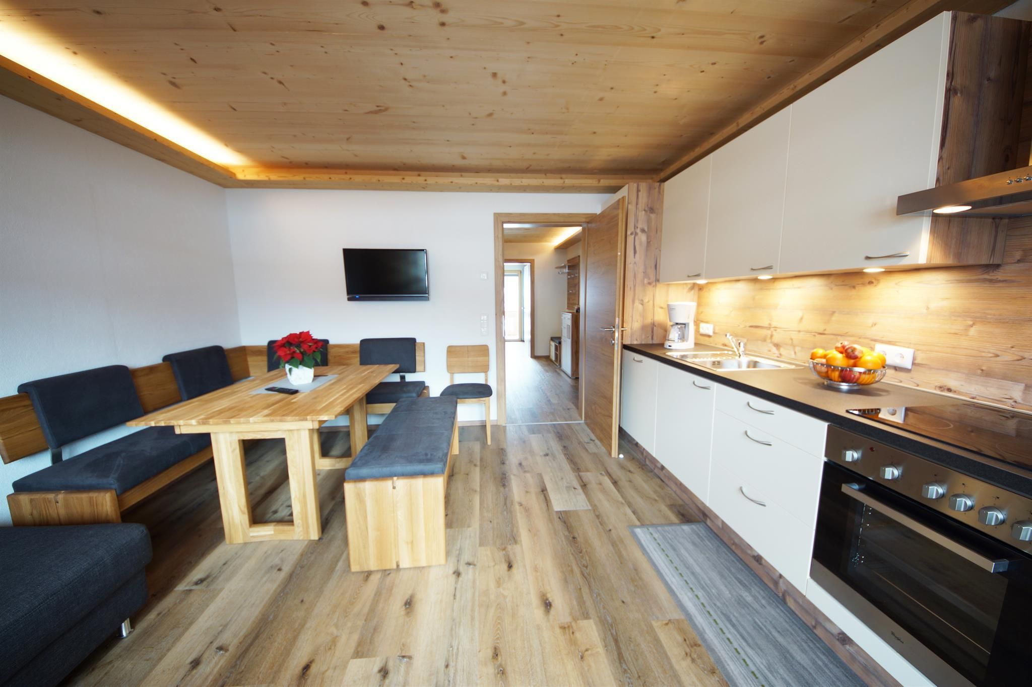 Our flats are newly furnished and bright & modern. A ski storage room with ski boot drying facility and a covered car park are available to our guests.