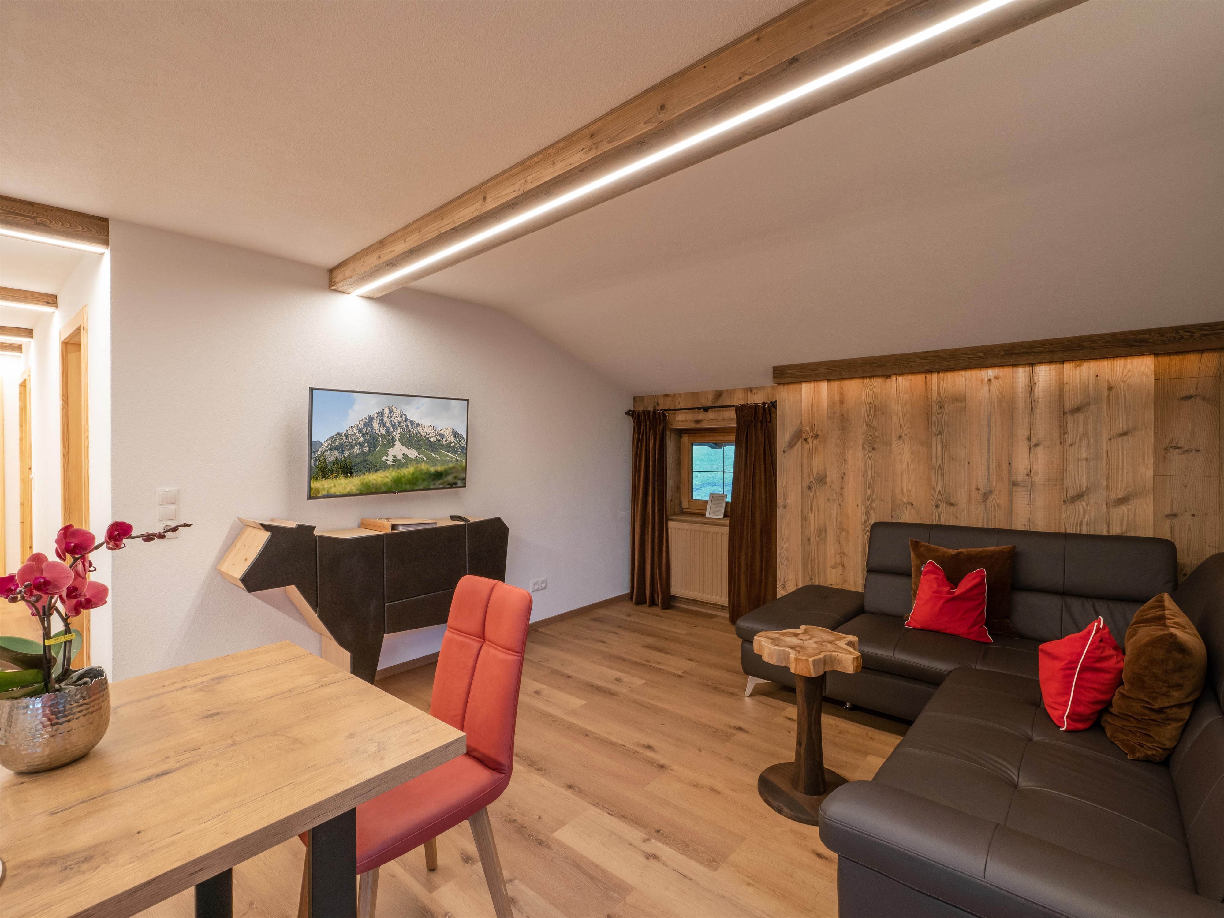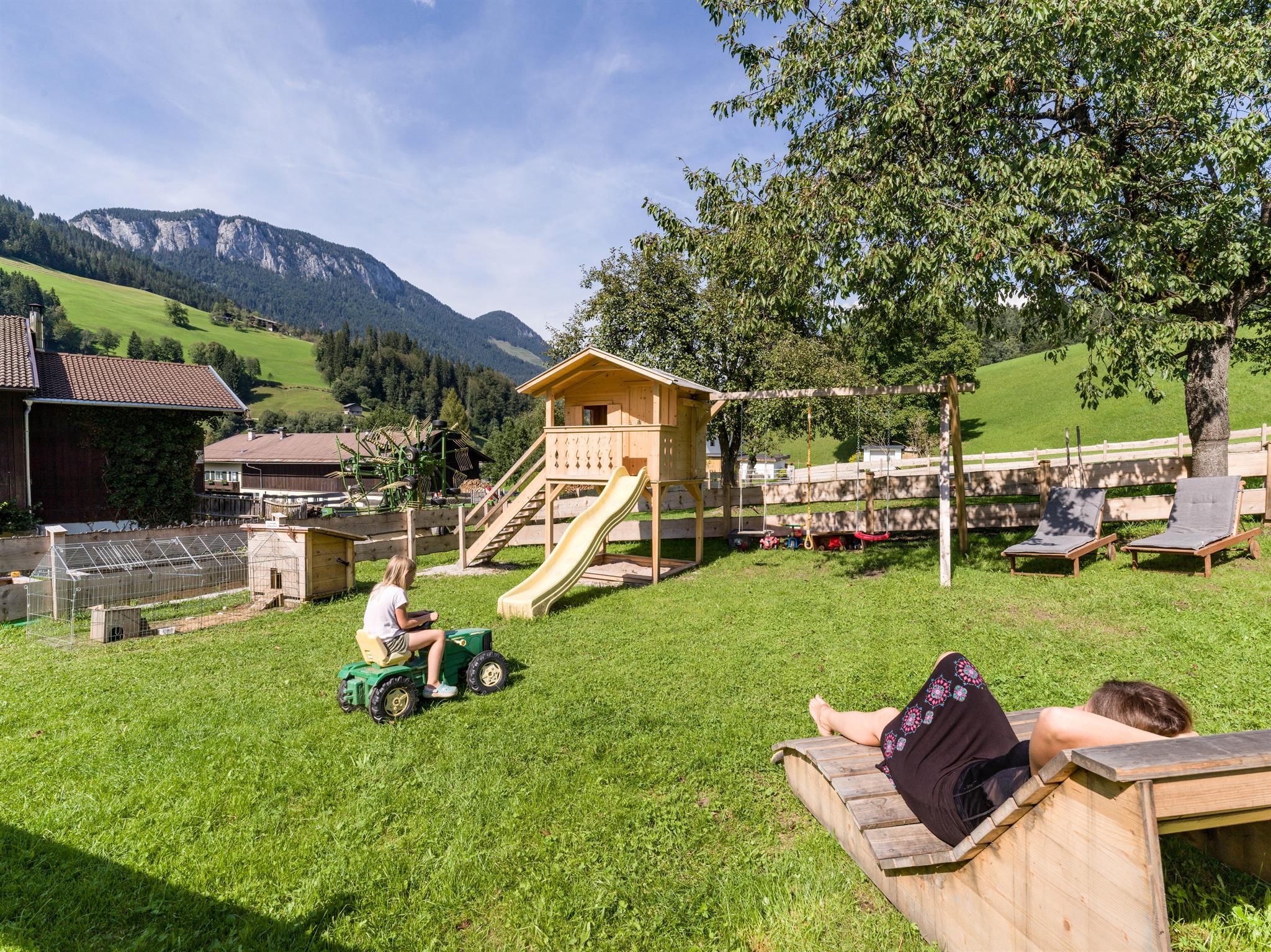 Situated at the edge of Itter, our holiday farm offers fast access to the huge ski area SkiWelt Wilder Kaiser Brixental. Kids can get to know various animals here (cows, chicken and a pony).