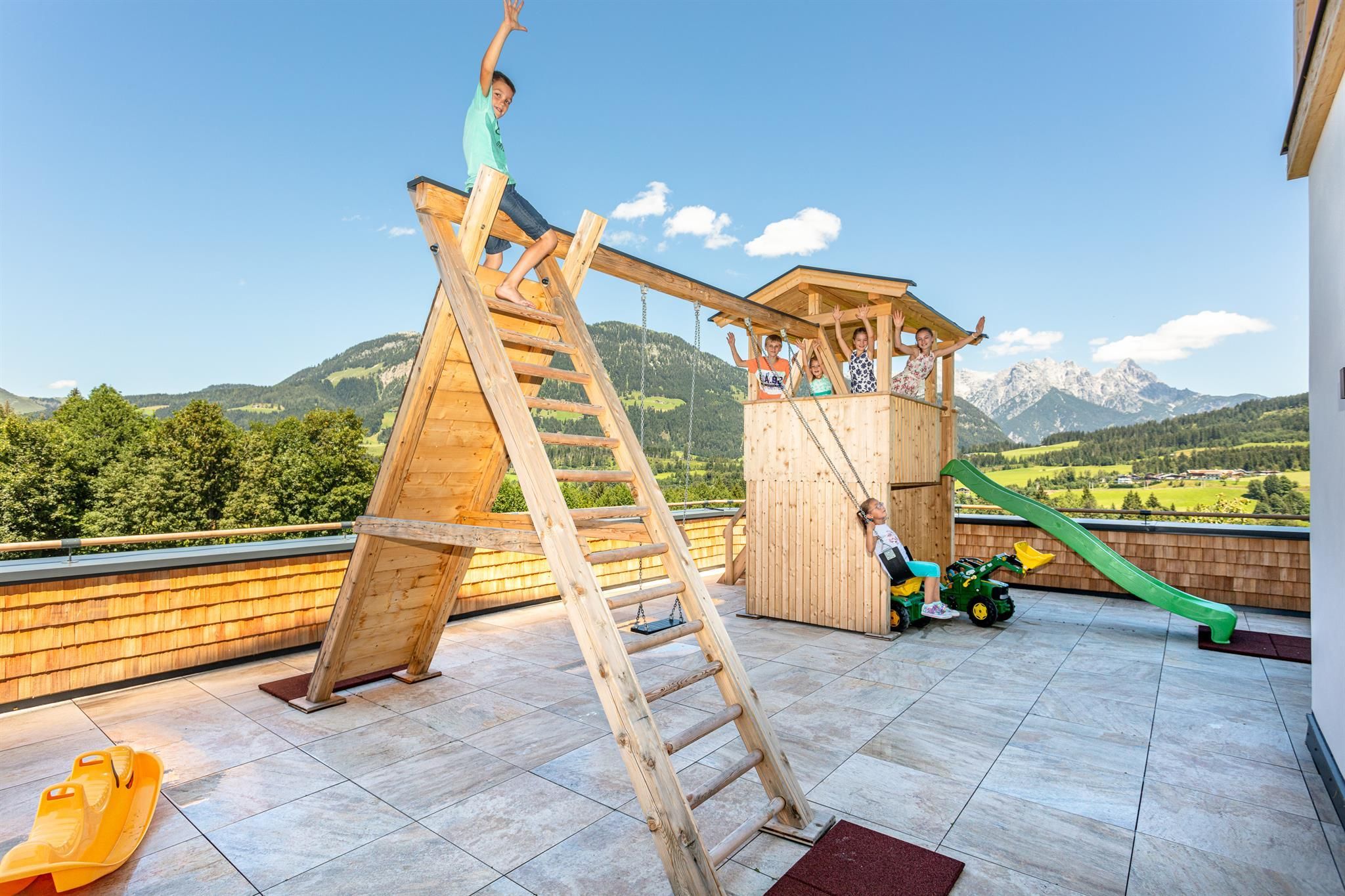 Do you want to have an active holiday, make a recovery or just relax? A holiday at our bio-farmhous is worth a try! Ideal for all age groups, families and animal lovers! The farm is situated sunny and calm on 830 m elevation with an outstanding view to the surrounding mountains. During the summer it is an ideal starting point for hiking and bike tours. Special features: For the kids there are a lot of surprises like animals, a play- and climbingtower with sandpit, swings, slide and trampoline, small tractors with trailer, bobby-cars, three-wheeler, ping pong, scooter,...