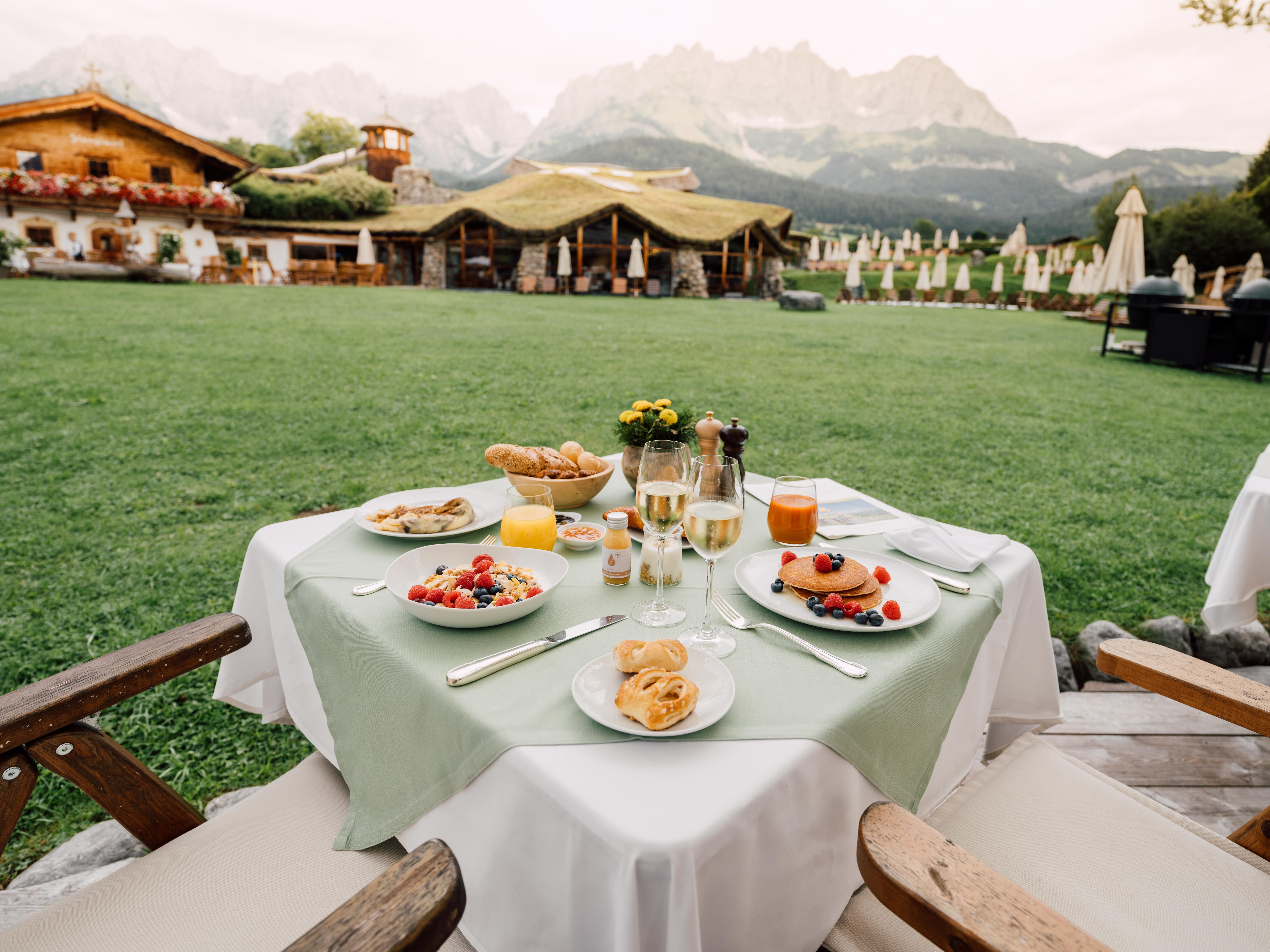 Savour unforgettable moments at the foot of the majestic ‘Wilder Kaiser’ mountain, renew your strength and your spirit surrounded by nature in the unique 12,000m² Well-Being Adventure World – sustained and heated by the establishment’s very own Kaiser spring. Experience the heights of culinary delight in the rustic lounges – where delicacies are served from our very own farm. Get active in the multiplex Stanglwirt Sports-World which includes a private Lipizzan stud, on-site driving range with the Golf Sport Academy, tennis centre with the internationally renowned PBI Tennis School, the hotel’s own ski school, ample fitness grounds with medical fitness facility and much more. Children’s eyes will light up at the prospect of our children's water world and of our very own children’s farm, not to mention the diverse programme on offer for children and youngsters to round off the comprehensive range here for each and every generation! A huge variety of other attractions are just waiting for you to discover them all throughout the year... For more than 250 years we have been there for our guests every day bar none!