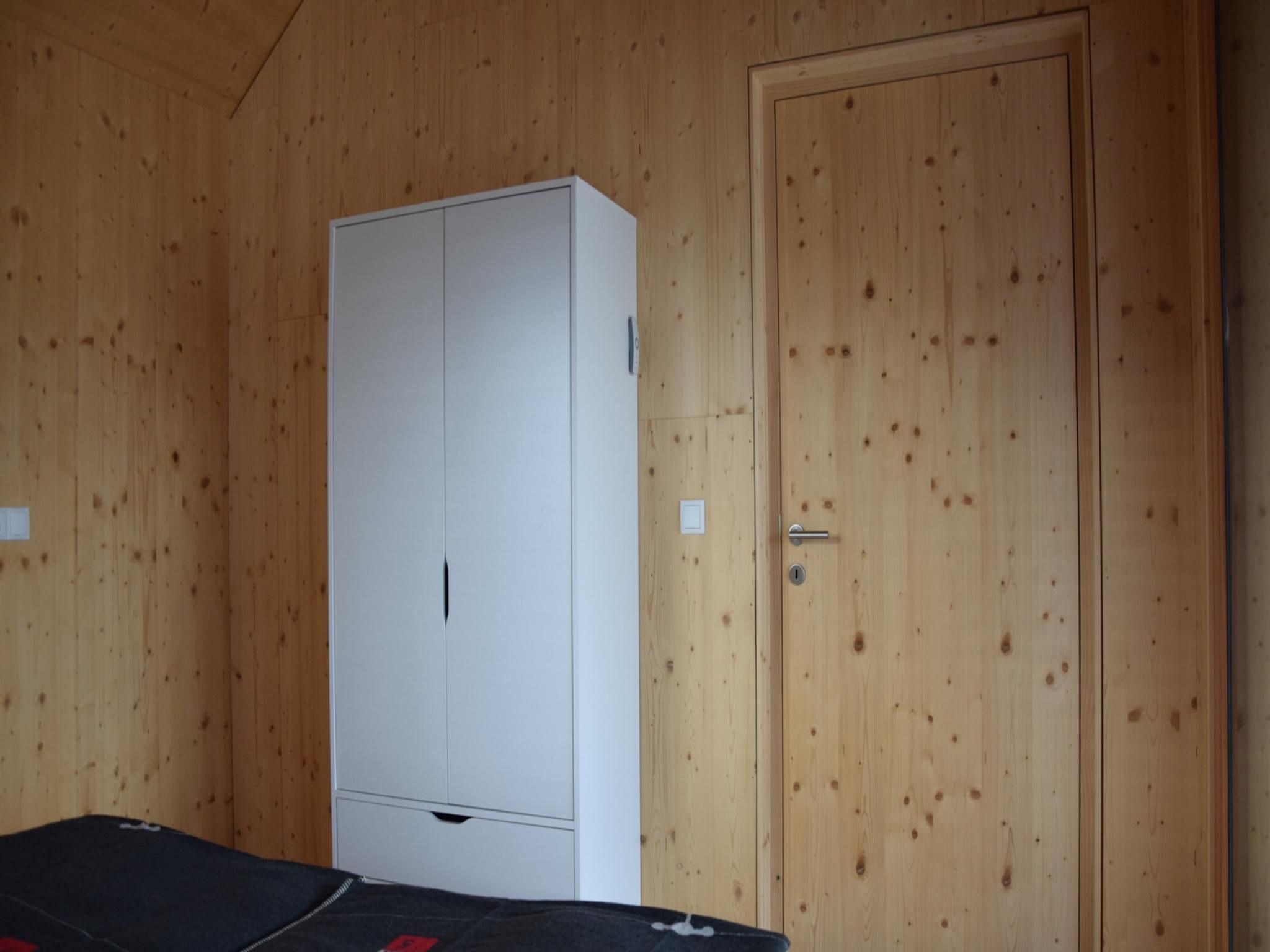 The apartment is 75m², can accommodate four people and includes two comfortable bedrooms with access to the terrace, a large, modern living room, two spacious bathrooms and a storage room. The wooden structure has a ceiling height of over 4 metres and is located directly under the gable roof. The partially covered terrace is accessible from all rooms and offers impressive panoramic mountain views.