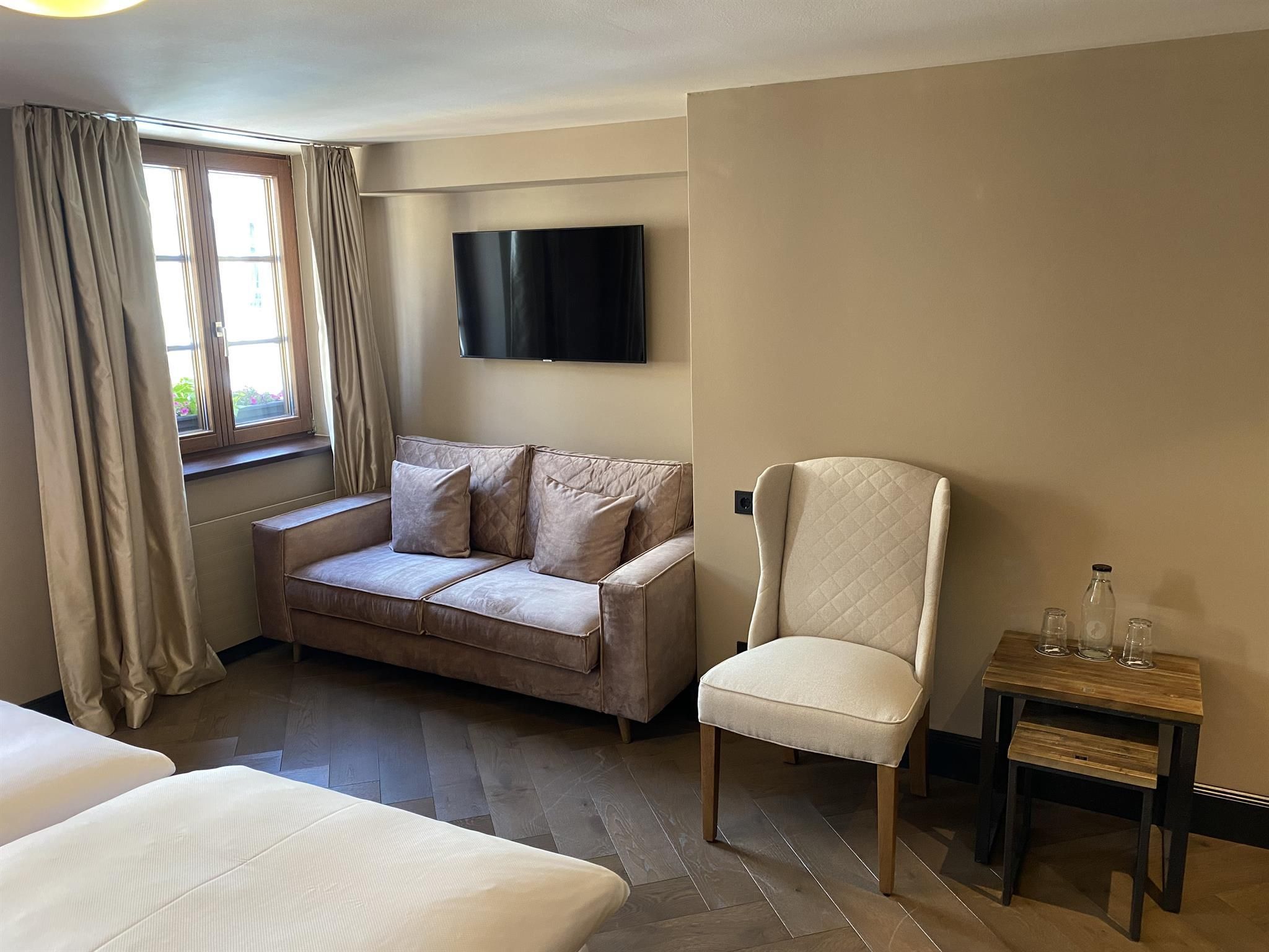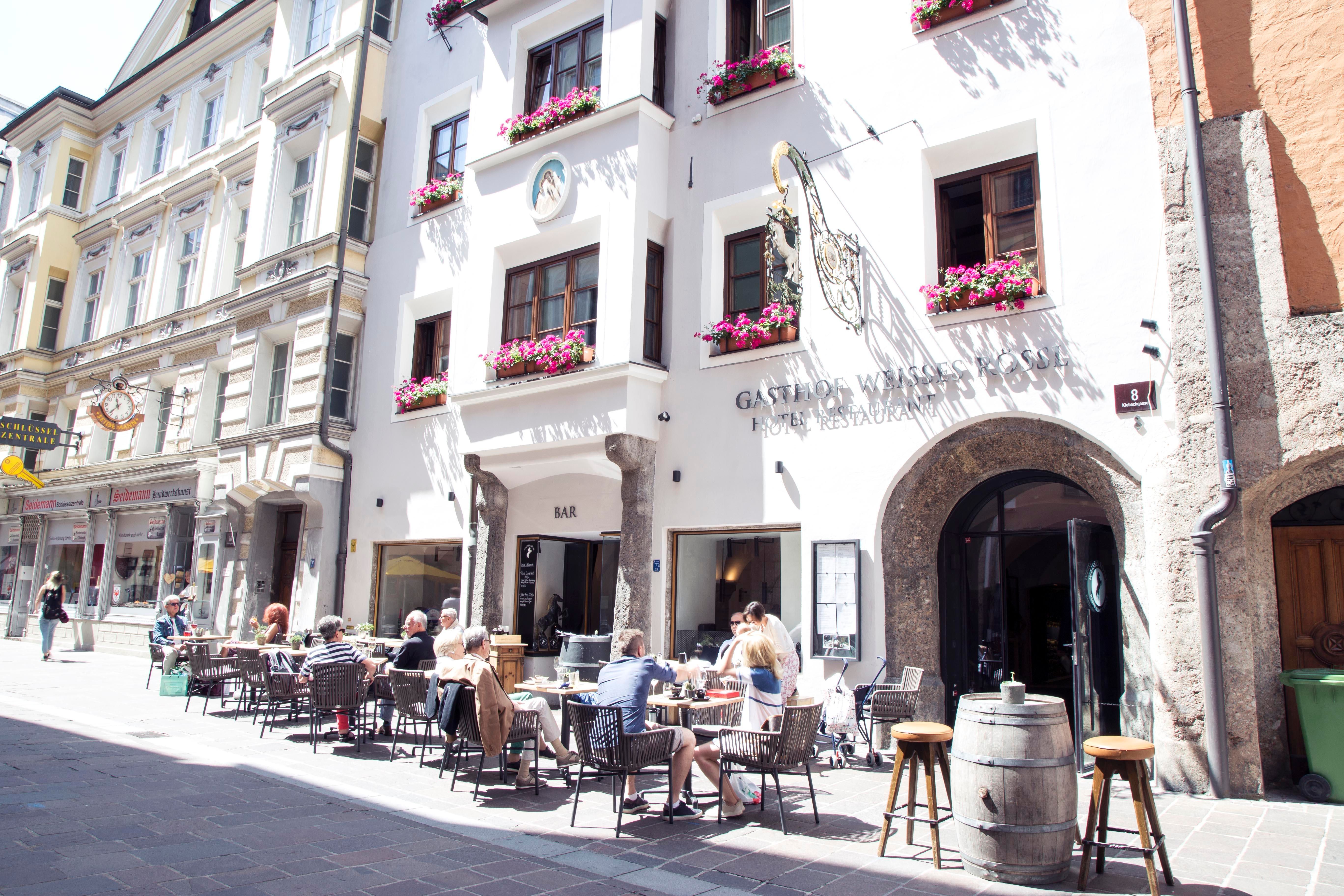 The boutique hotel Weisses Rössl is located in the heart of Innsbruck's old town and combines Tyrolean style with urban lifestyle. The fourth generation of the Plank family, hoteliers and innkeepers, lays emphasis on exclusive interiors. MINI, COZY, BOUTIQUE or SUITE? None of the carefully renovated rooms, furnished with great attention to detail, is like the other. Elegant black and white, comfortable box spring beds, wooden floors and an extravagant lighting design make the rooms a place of good taste. The Innsbruck Wirtshaus Weisses Rössl on the first floor with its 600-year history combines tradition and modernity and serves both home cooking and international dishes. Here you will also find the only restaurant terrace in the old town. In the Innsbruck Bar Weisses Rössl in the medieval vault, people meet for breakfast, lunch, coffee & cake, aperitif, cocktail or "a glass" including a snack at a late hour.