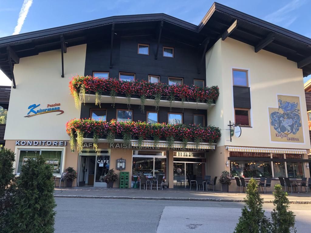 Our pension is in the middle of the center of Ellmau. In our house we also have a café with confectionery and nice terrace. All our rooms offer a bathroom with shower and toilet, TV and radio. In the winter the ski bus stop is directly in front of the house. The indoor- and outdoorpool "Kaiserbad", golf course and shopping possiblities, restaurants and bars are nearby.