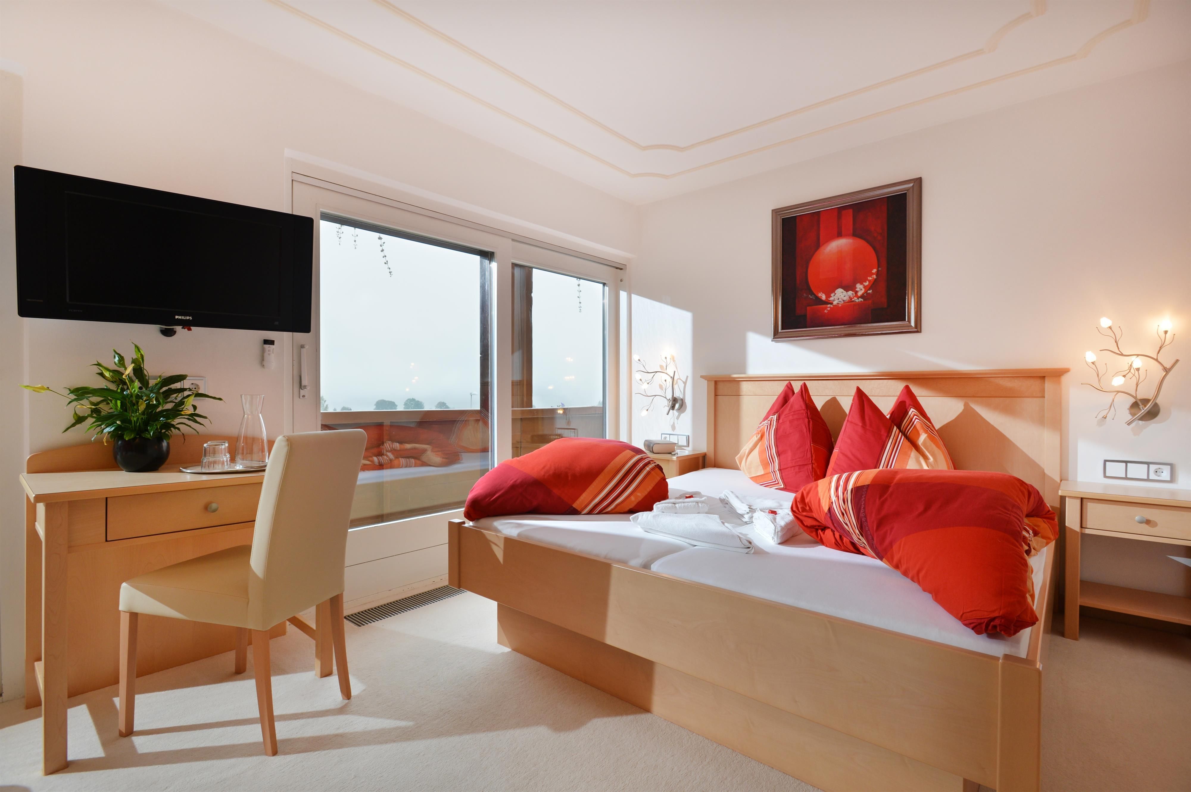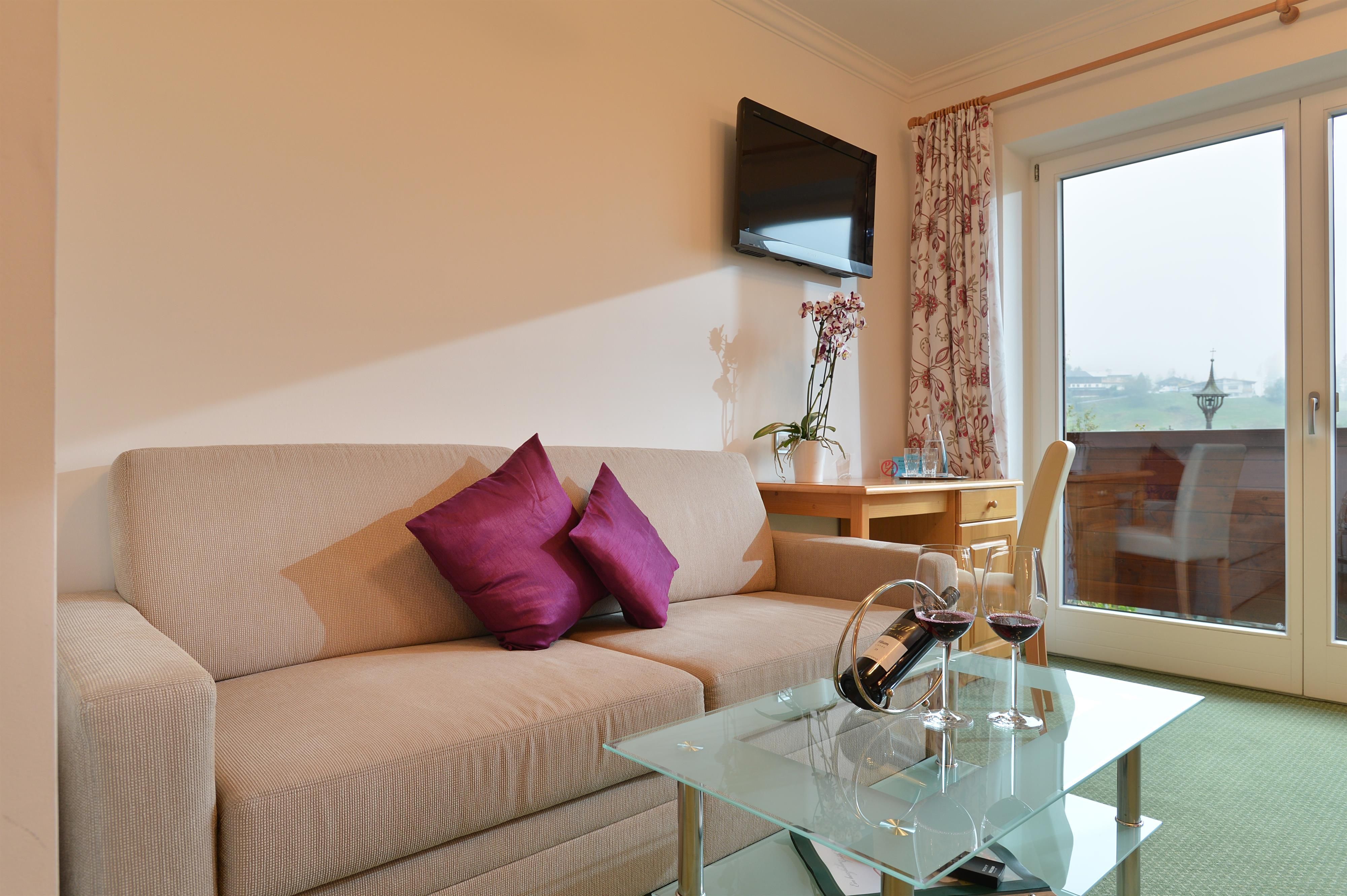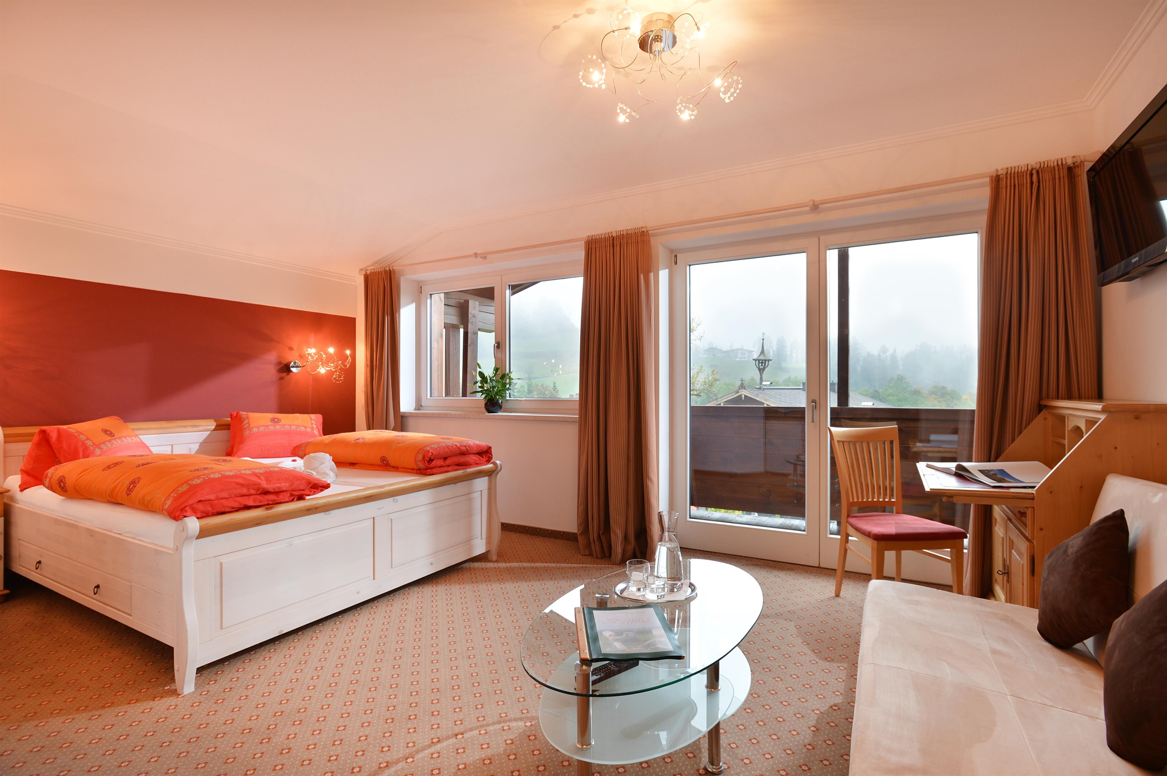 Close to Hartkaiserbahn and ski lifts. Sauna and solarium, ultrared-cabin. Cosy restaurant with good food, home made cakes, ice cream specialities. Conservatory, sun terrace with wonderful views to the Wilder Kaiser. Half board or bed and breakfast.