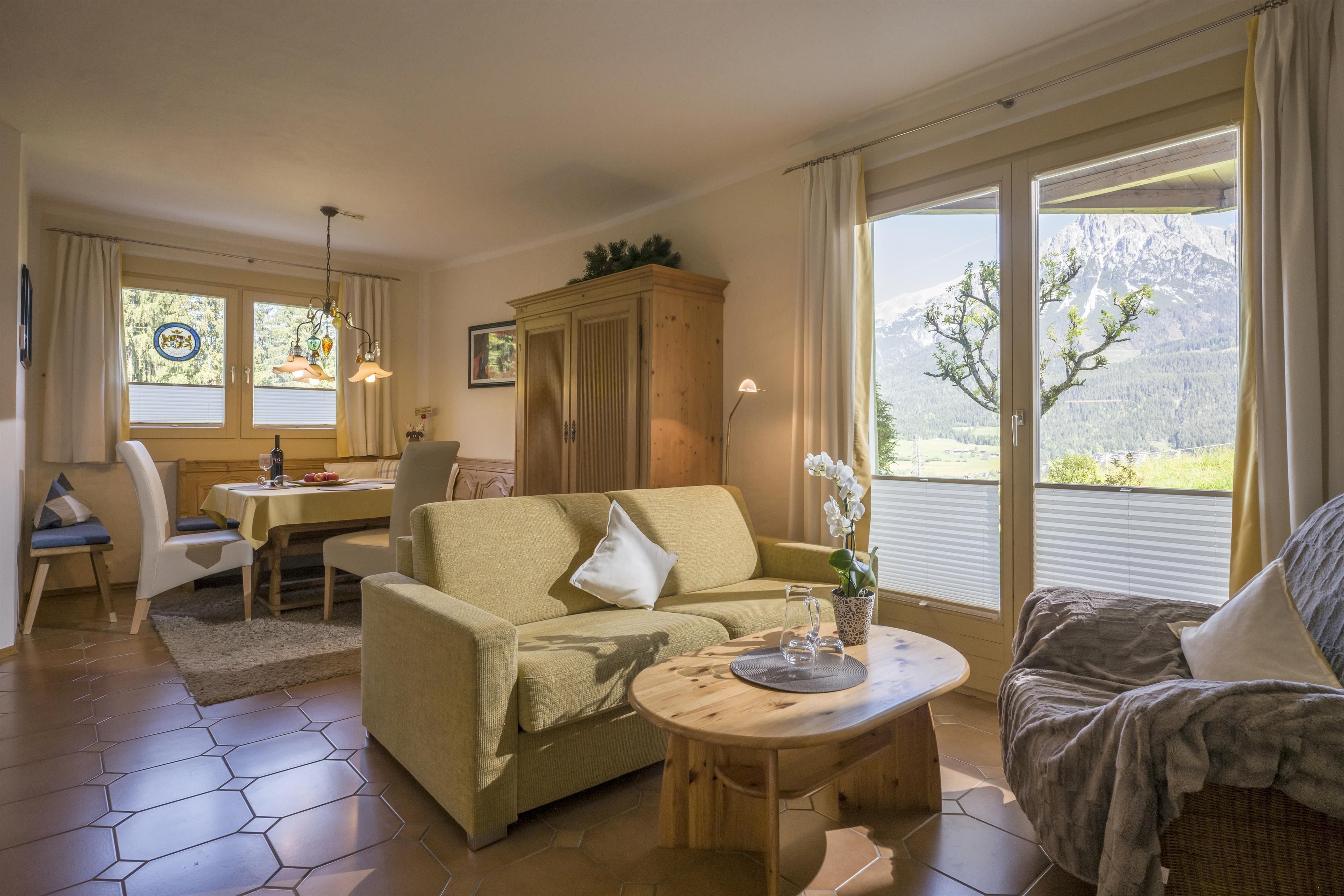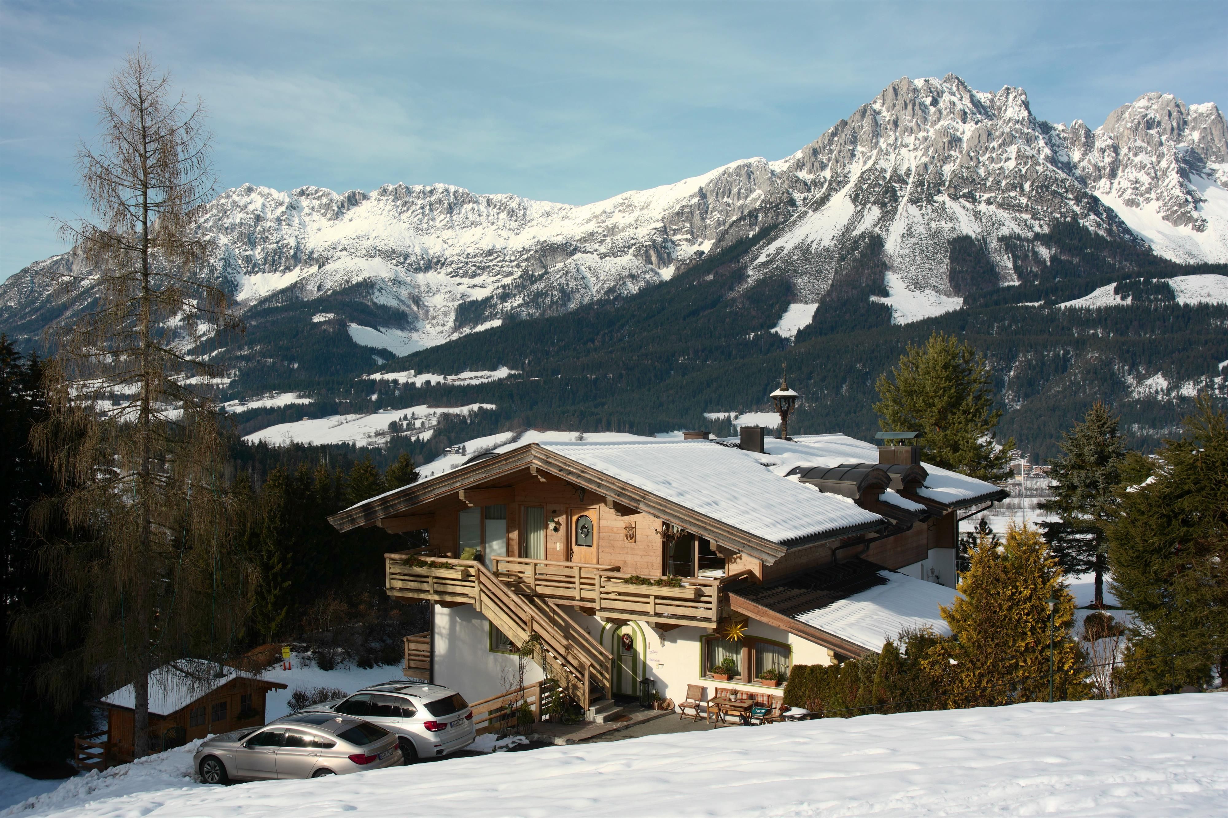 Just 1 hour driving from Munich you find our beautiful Chalet in Ellmau. At 820m, just 5 minutes from the centre you find the Chalet Grizzly. Enjoy an absolutely wonderful view to the Wilder Kaiser mountain just next to the skislope. In summer you can start great hikes directly from here.