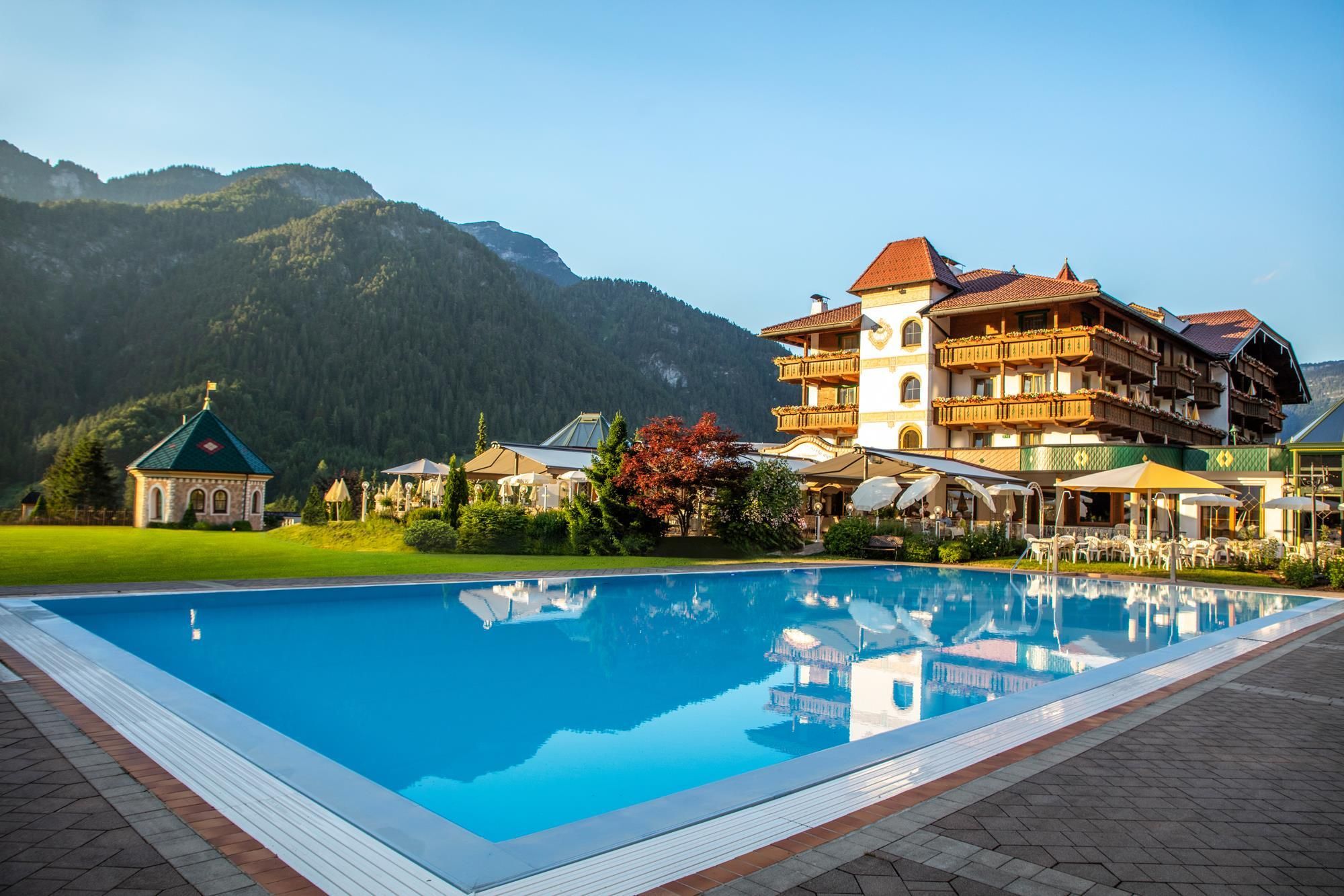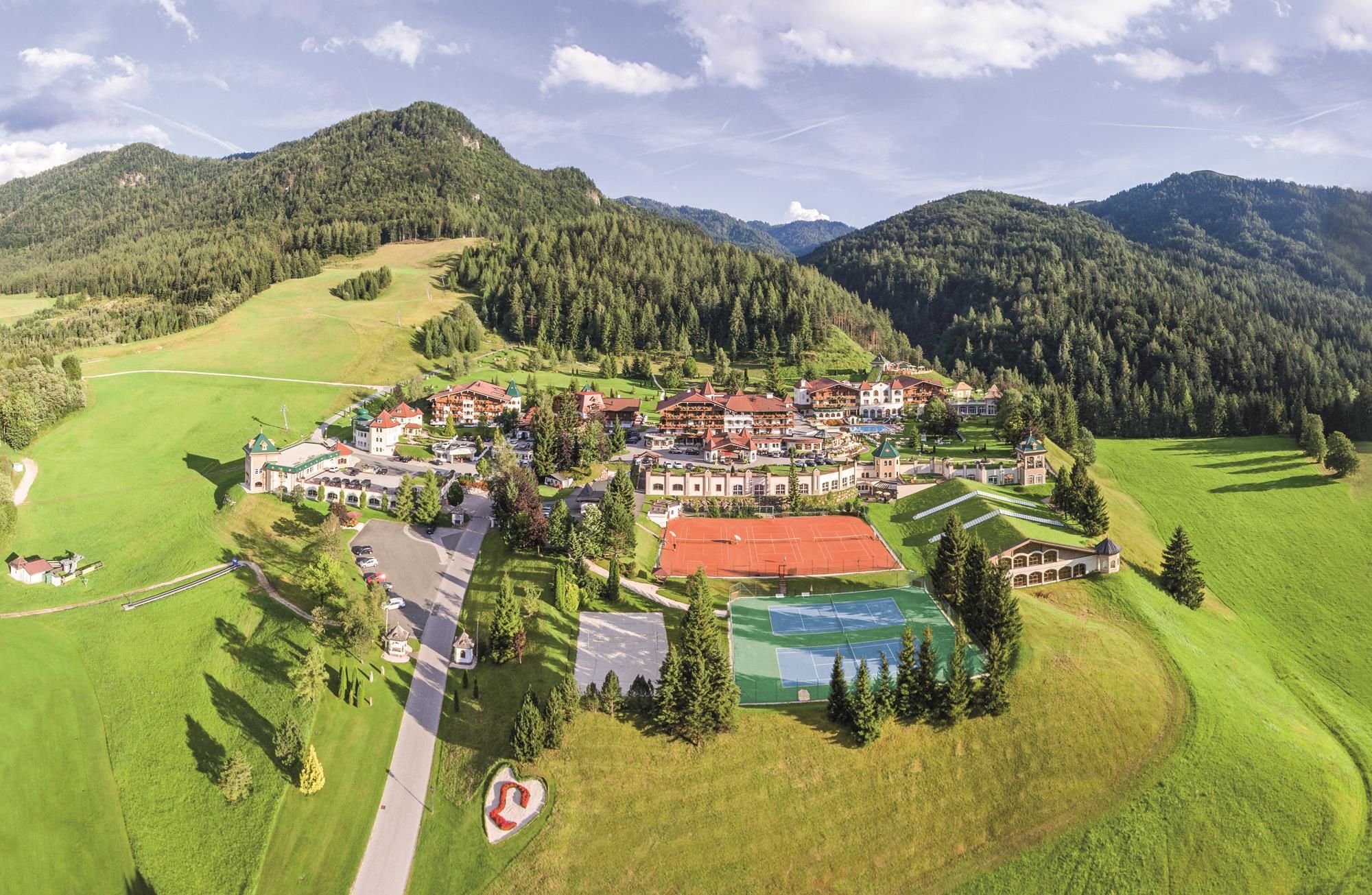 Only 17 km away from Kitzbühel our hotel is idyllically situated at the foot of the Alps. Let's go to the golfing experience at our own 9 - hole golf course or on our 6-hole practice course with its own golf academy. For the slightly more experienced golfer we offer our guests great golf packages where you can also try the numerous golf courses nearby. Tennis players find also the best conditions. Tennis star Daniel Huebner-Schluifer leads the tennis academy and inform the guests on the five clay courts or the three top courts in the hall. Relaxation can then be found in our spacious 3.000 m² wellness area or in the beauty farm. Explore the countless possibilities we have offer to you like romantic walks, Mountain bikes, asphalt curling, guided walks, archery and much more ..... Let the holiday pass in review during the evening it's best six-course meal in our gourmet restaurant. It looks forward to you Martin Unterrainer and the entire Lärchenhof-team