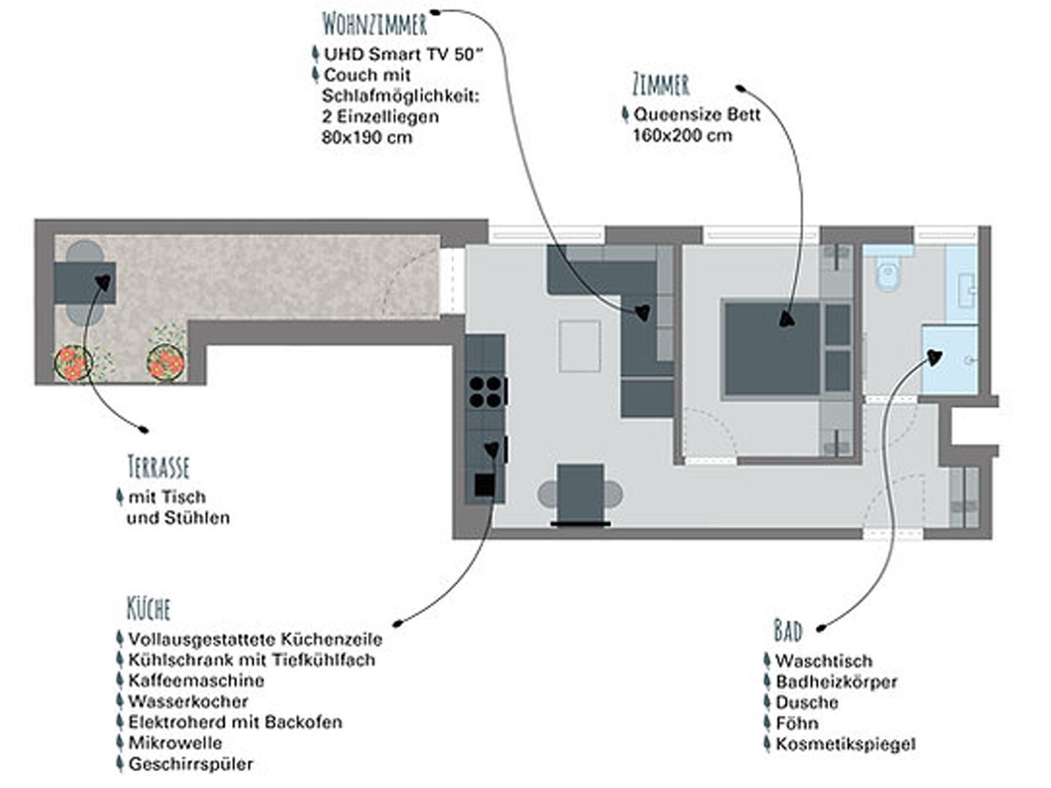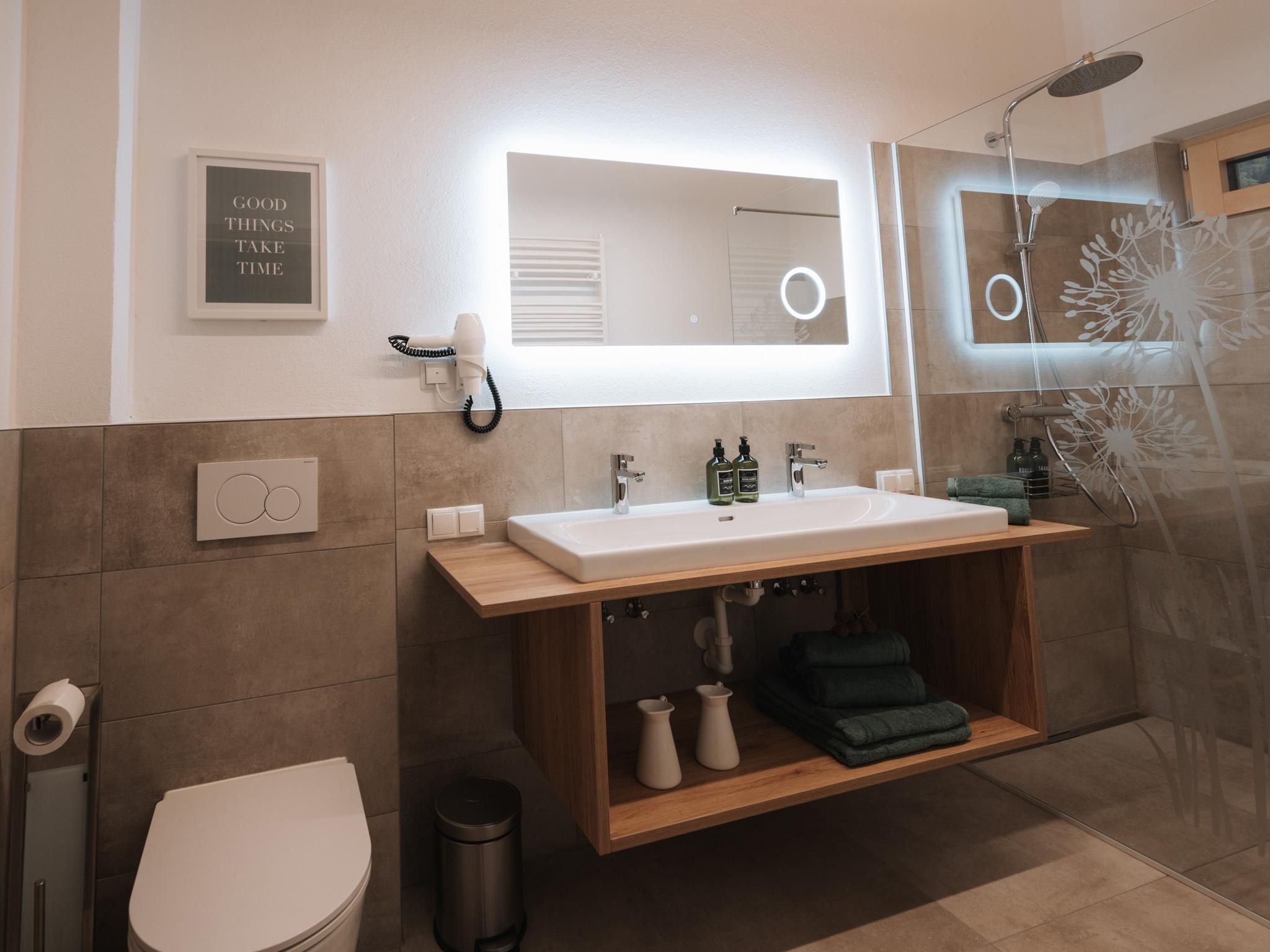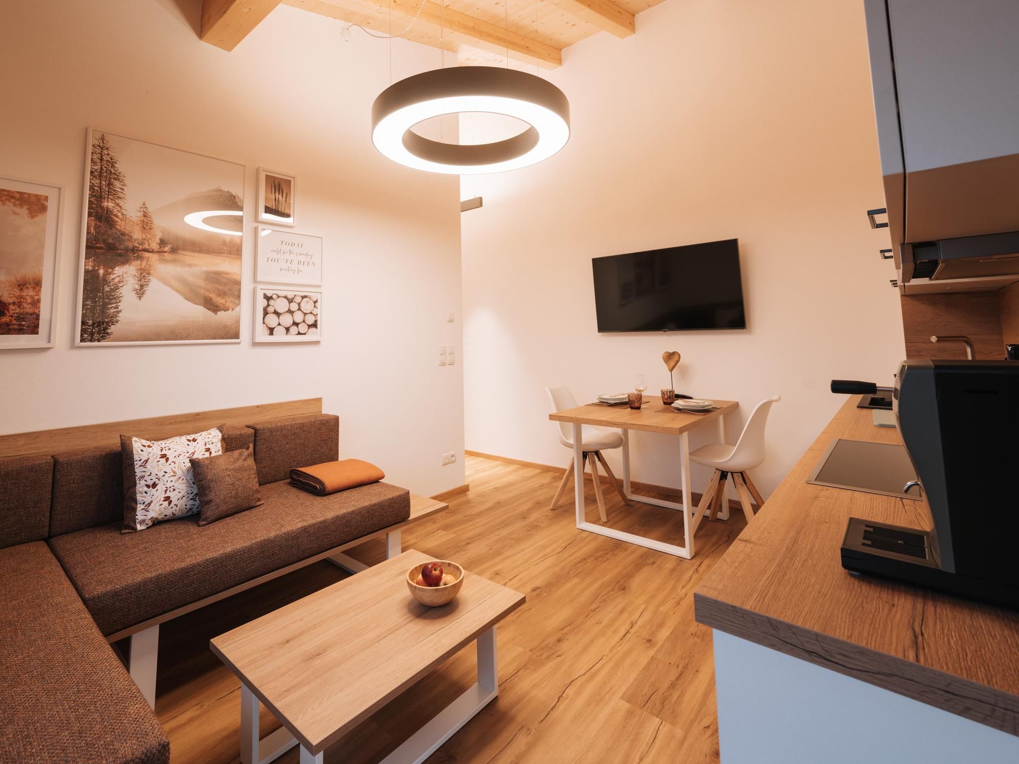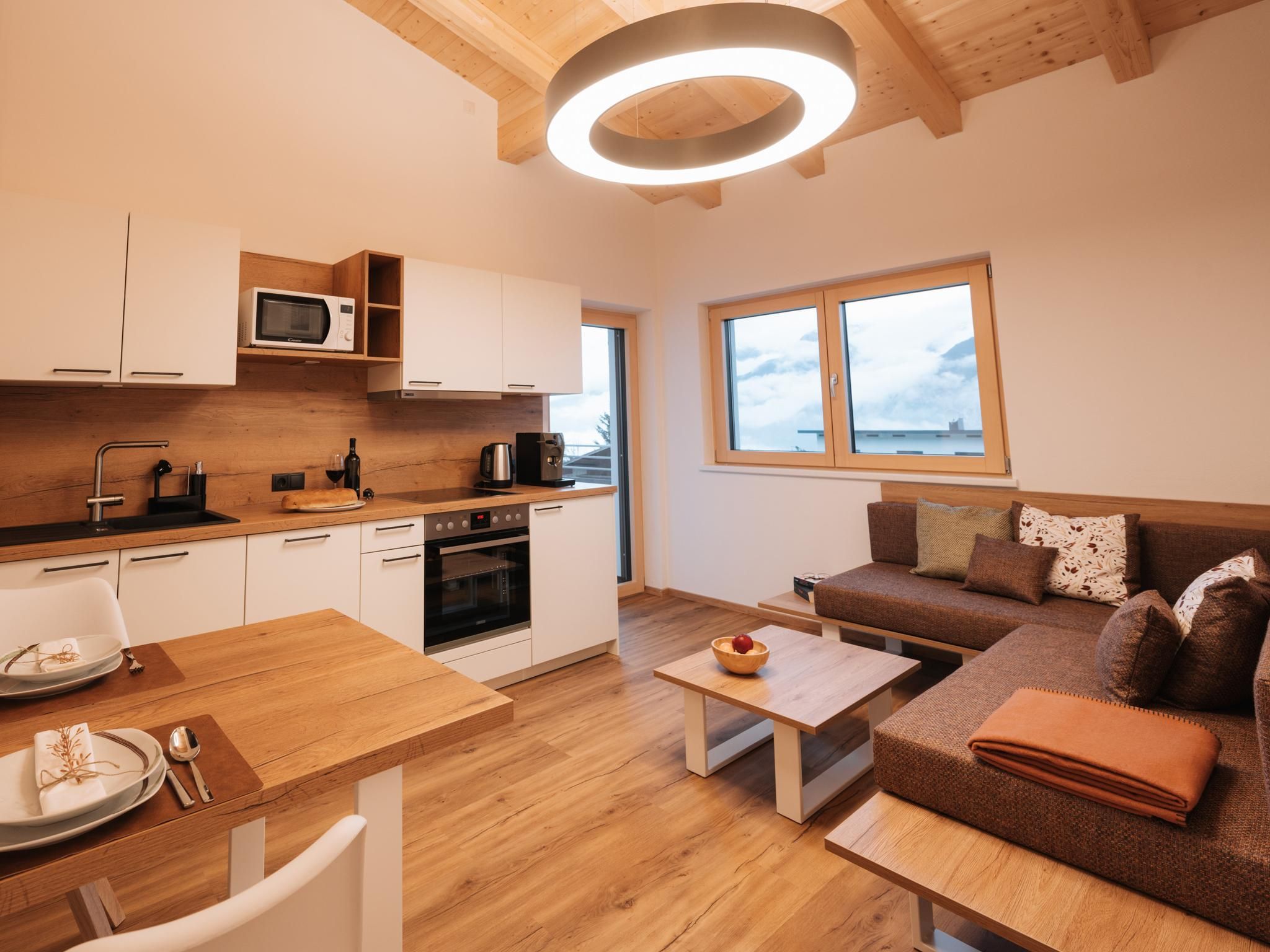 The modern and stylishly converted holiday home on the southern outskirts of Axams offers space for a maximum of 10 people in two exclusive holiday flats. Both apartments have one or two bedrooms, shower/WC, modern kitchen and living area and terrace. The flats are located on the 1st floor above our very popular in-house Italian restaurant. Free parking and a small ski lift for beginners (only in good snow conditions) right next to the house. The village centre with various shopping facilities and restaurants can be reached in a few minutes. The Axams bus terminal and the Axamer Lizum bus stop are nearby.