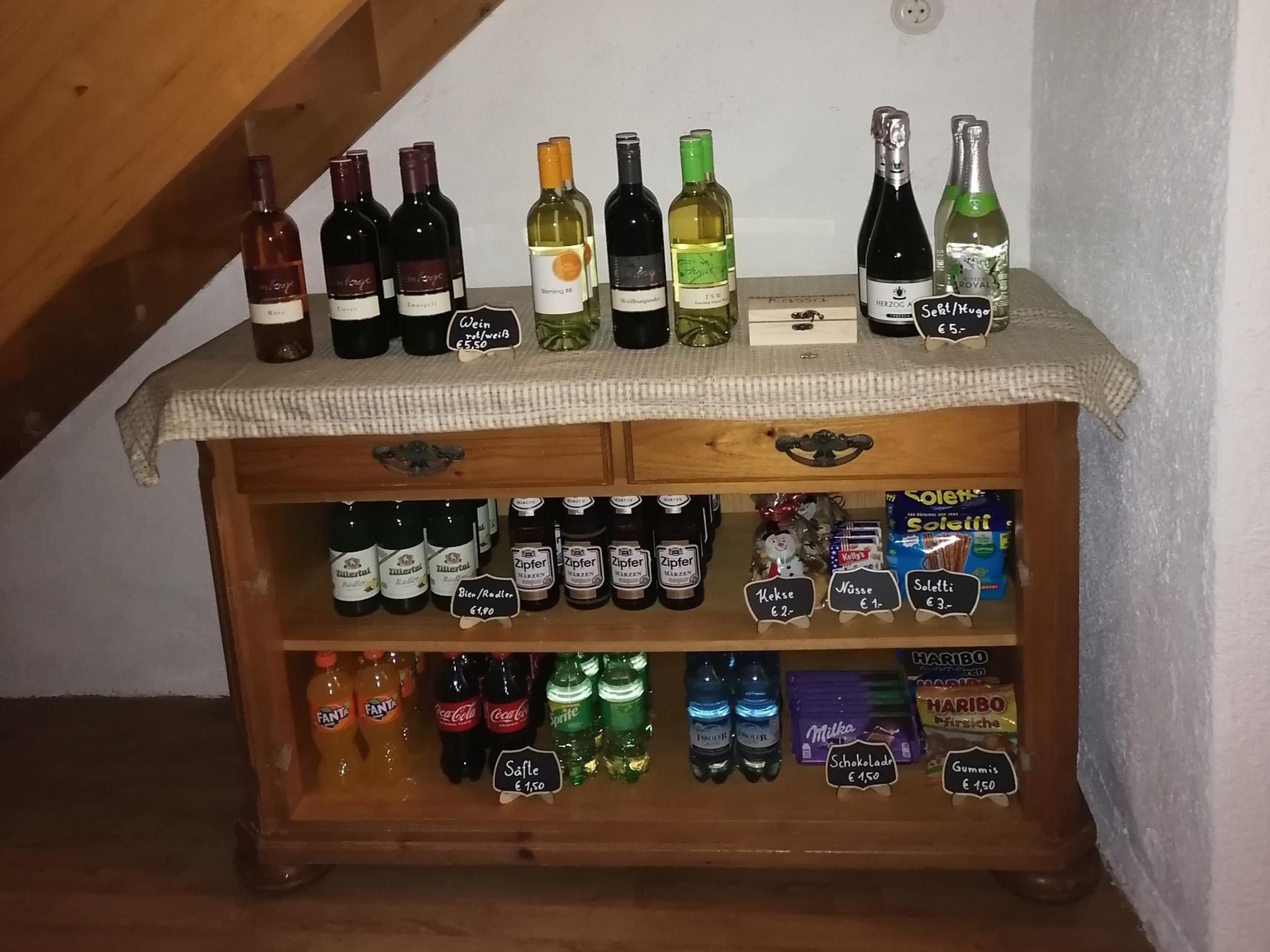 A small selection of drinks are available in the apartment, which guests are welcome to enjoy for an additional fee.