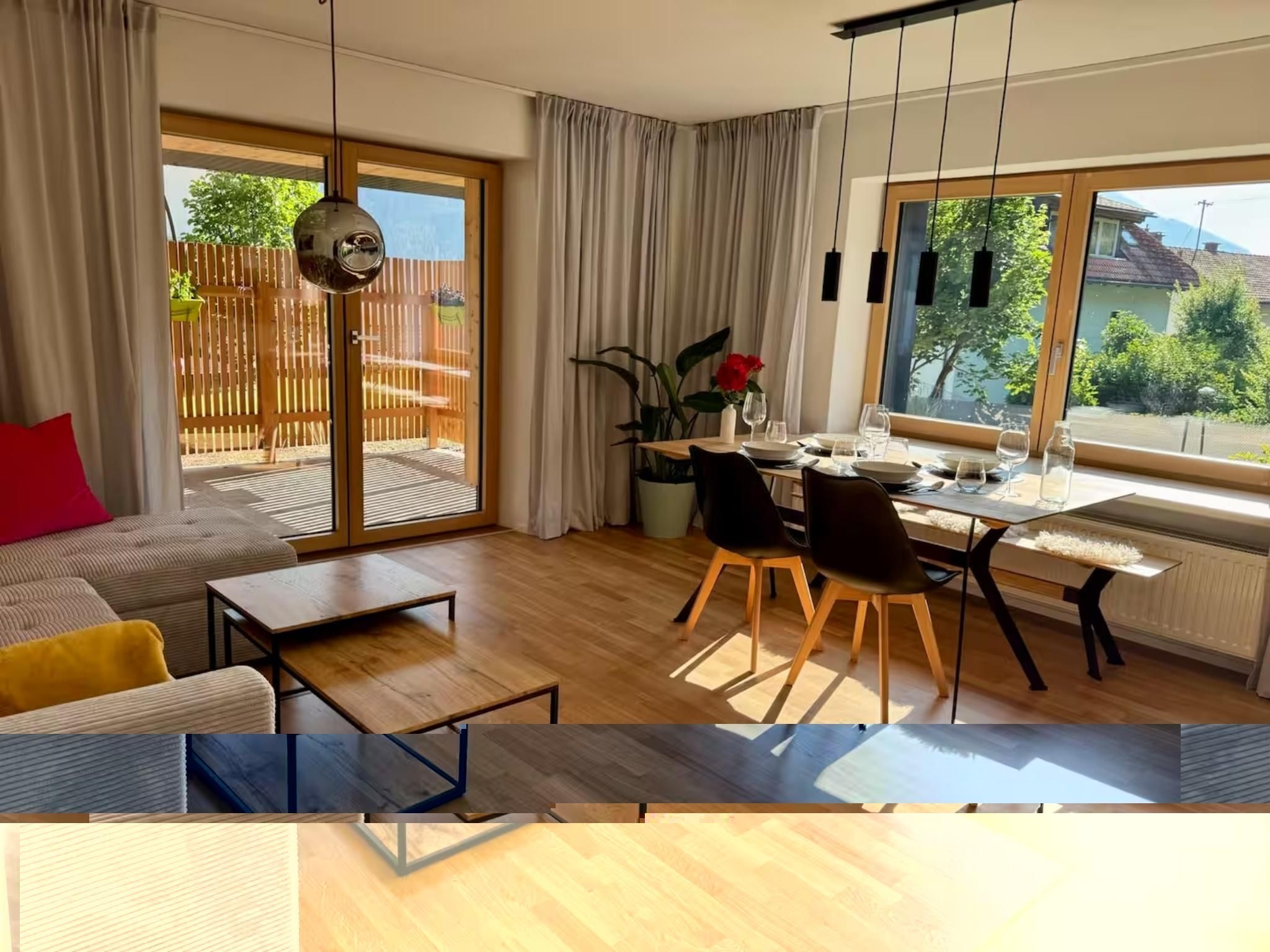 This stylish and spacious accommodation is great for families or up to 4 adults. The apartment is in a central but quiet location and offers a terrace and a beautiful garden. The apartment is on the first floor and offers a small beautiful garden and a large terrace. It has a fully equipped kitchen and a large living/dining room. Two separate bedrooms with cozy beds, closets and chests of drawers offer plenty of storage space for your stay. The apartment is close to the center of Zirl, in 5 minutes you can reach the stores as well as the bus stop. There is a bus to Innsbruck every 30 minutes. Free parking directly at the accommodation. A forest walk is possible from the accommodation in 5 minutes. The perfect starting point for adventures and hikes in the Tyrolean mountains, a trip to Innsbruck to the Golden Roof or in winter to the family-friendly ski areas.