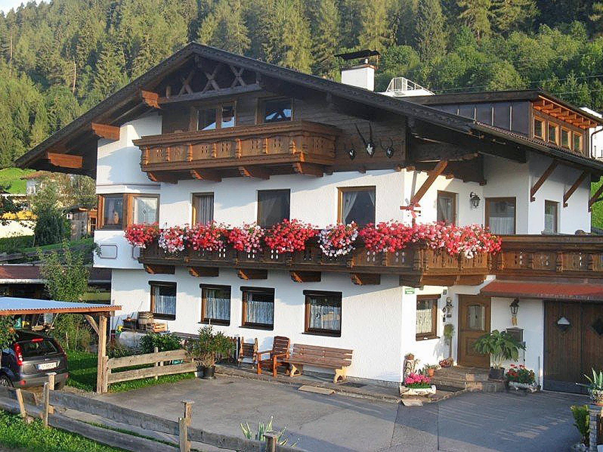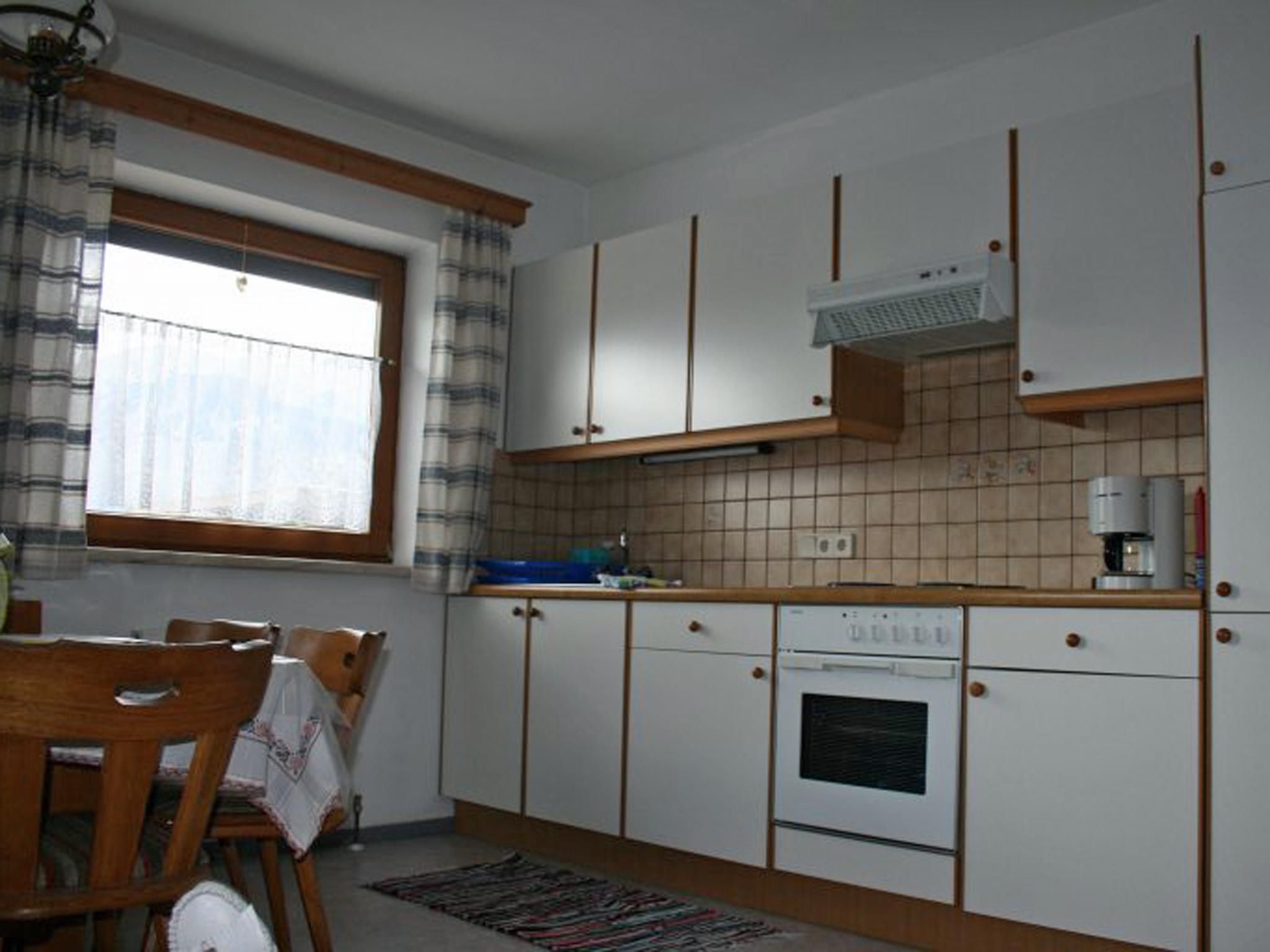 This comfortable apartment with a rustic country house style interior is located on the ground floor of our house. The apartment includes two separate bedrooms that can accommodate four to five people. Our Tyrolean style house is well-maintained and located in a very quiet residential area on the outskirts of Axams. A private road leads to the house and the parking spaces. The village centre, various shops and restaurants, a bus stop and the leisure centre are all within easy walking distance.