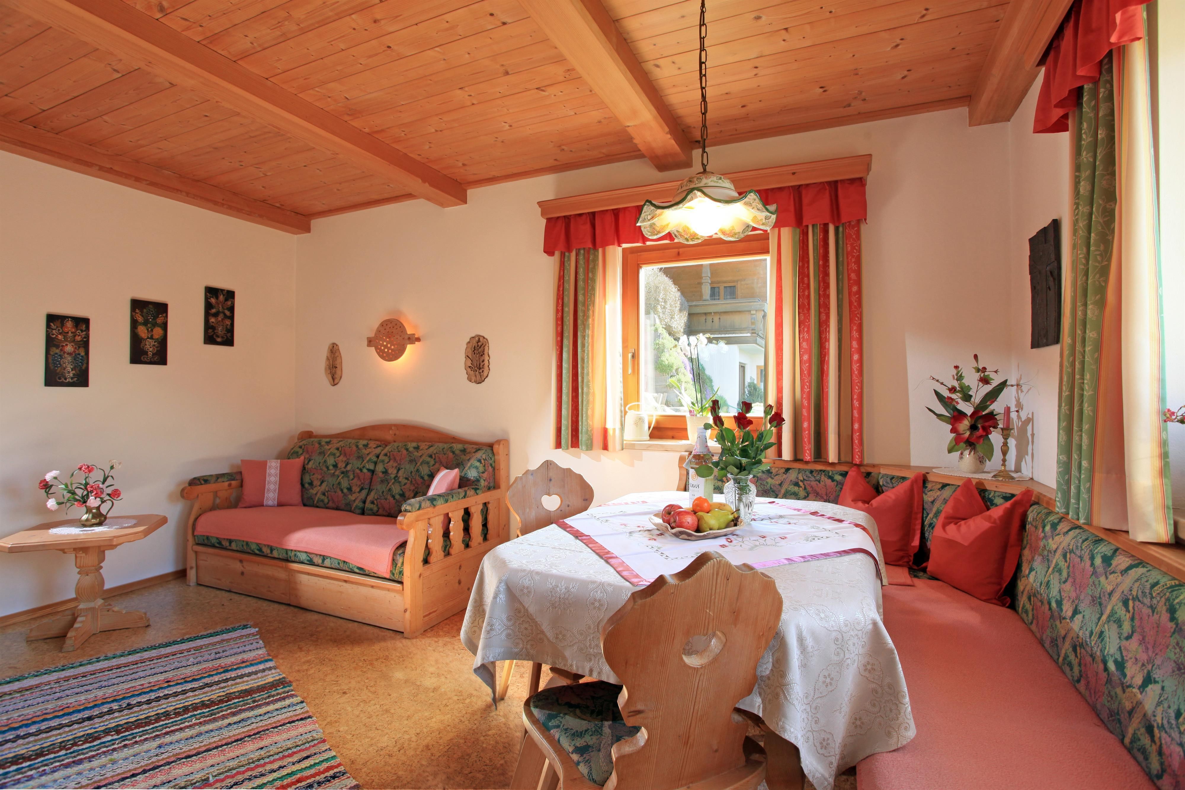 Situated on a rise, sunny, quiet location. Approx. 2km from center. Apartments in traditional style, wood burning stove.