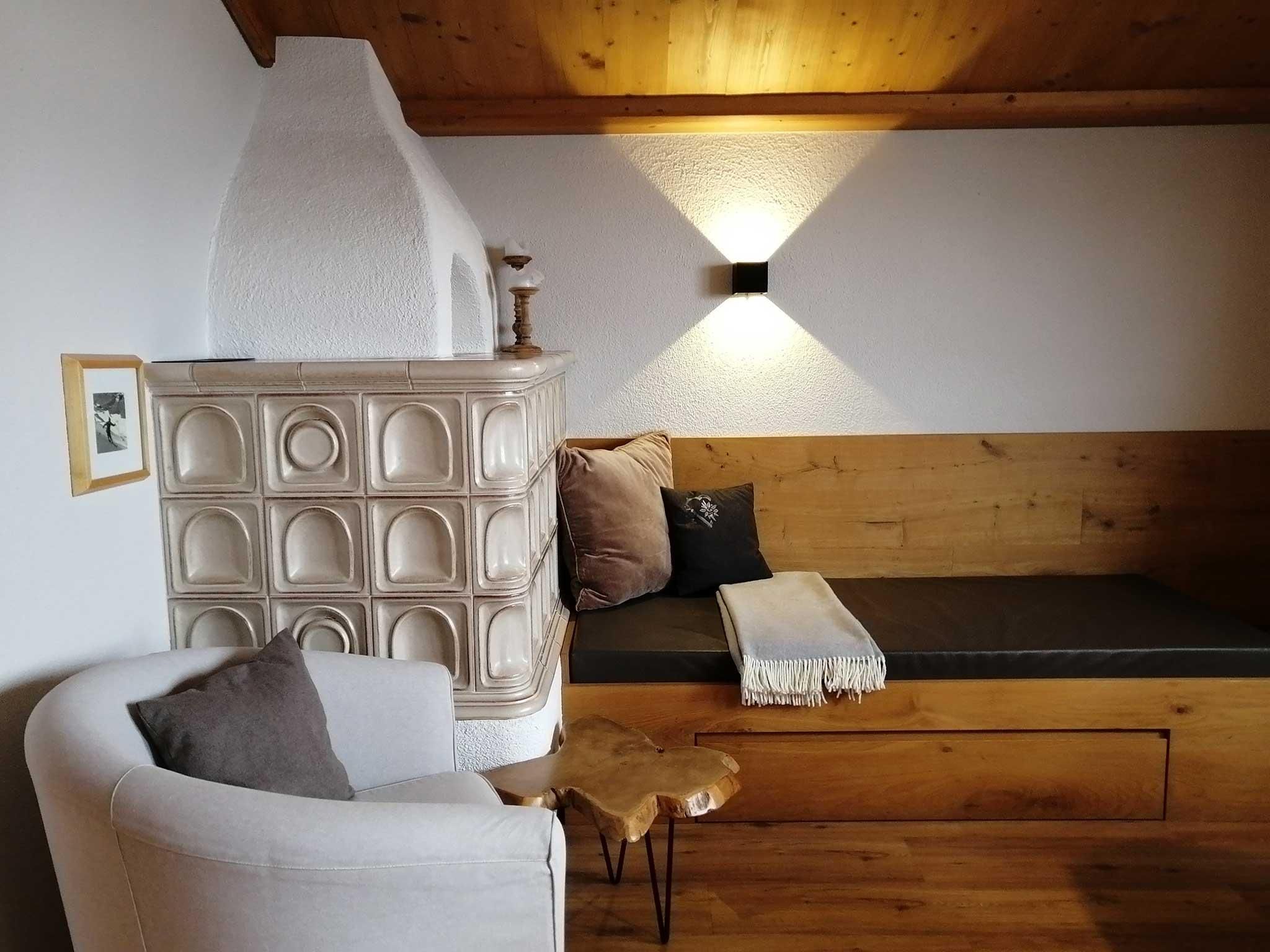 The guesthouse includes three holiday apartments each for two people and two double rooms with a balcony, all furnished in a modern alpine style. Guests particularly value the quiet location and the wonderful views. The house is just 150 metres from the ski slopes of Bergbahnen Oberperfuss. The unique breakfast buffet features regional and home-made products.