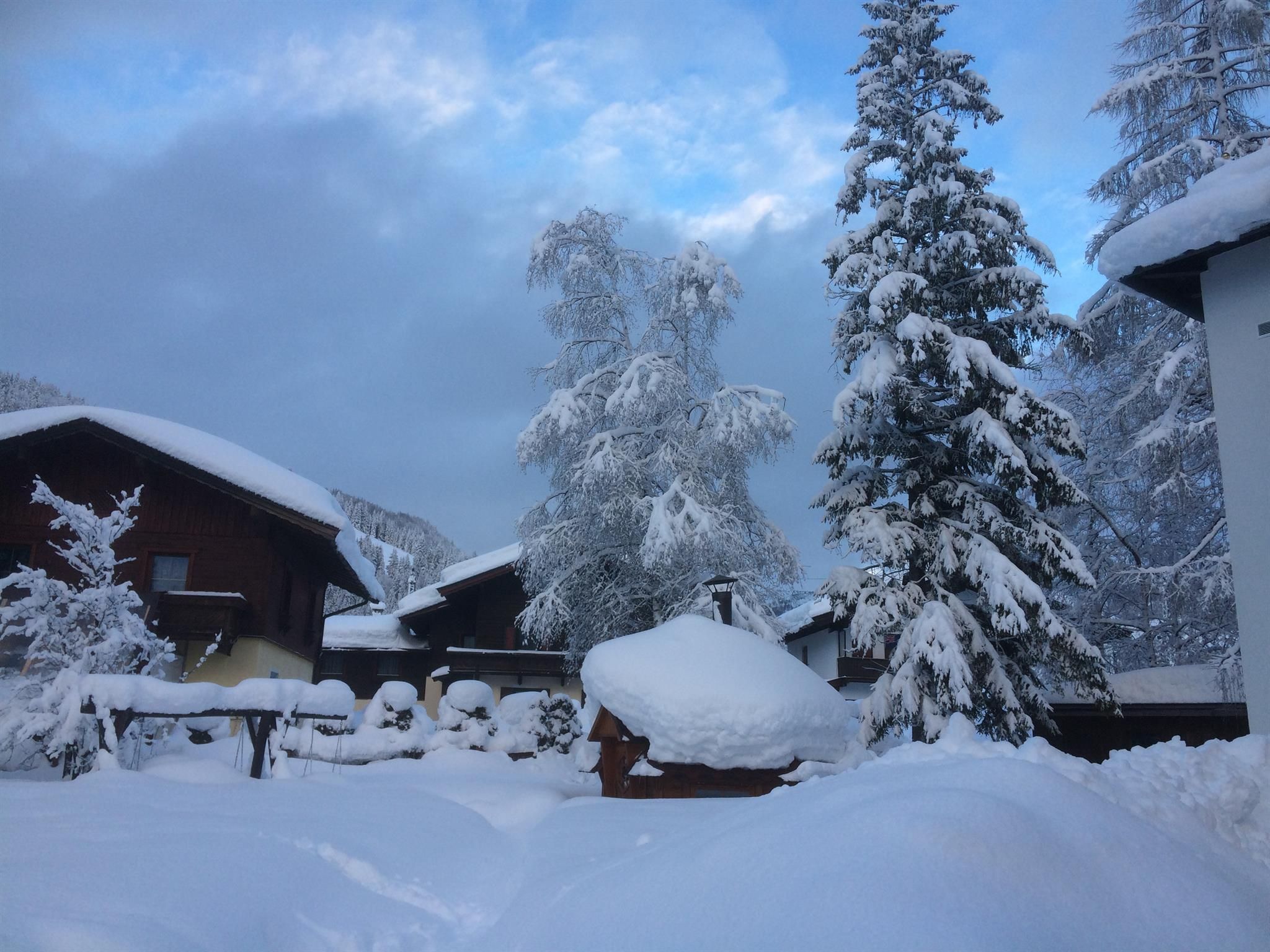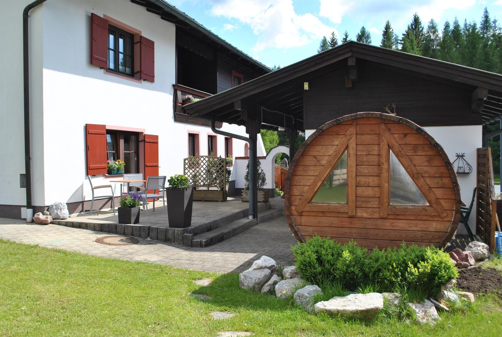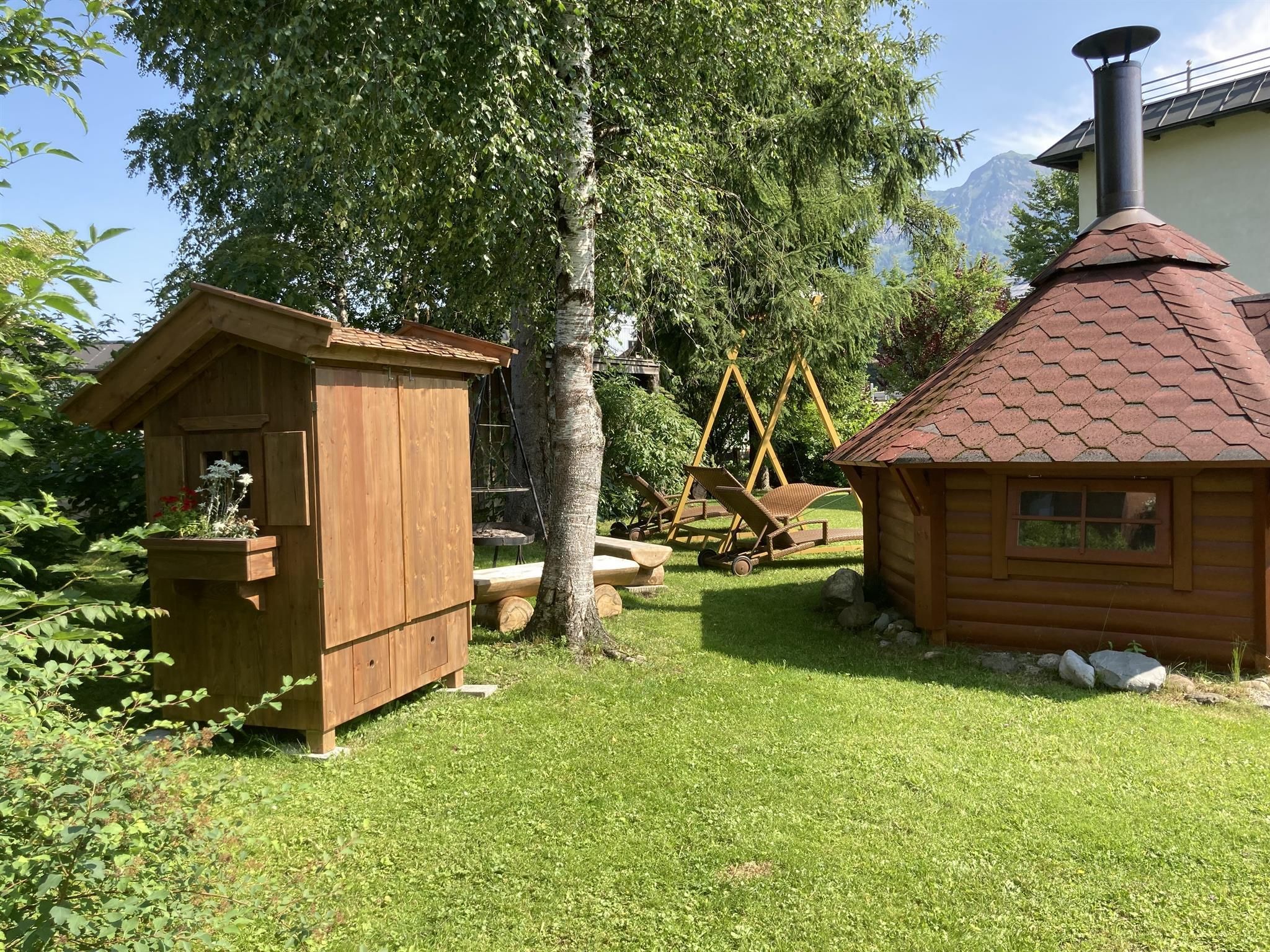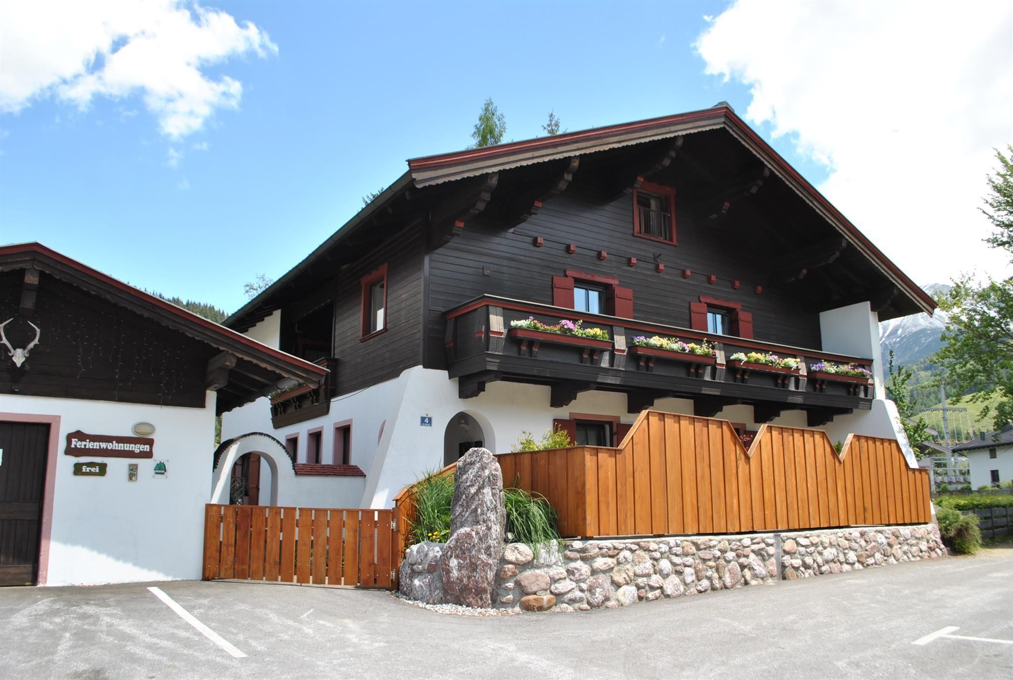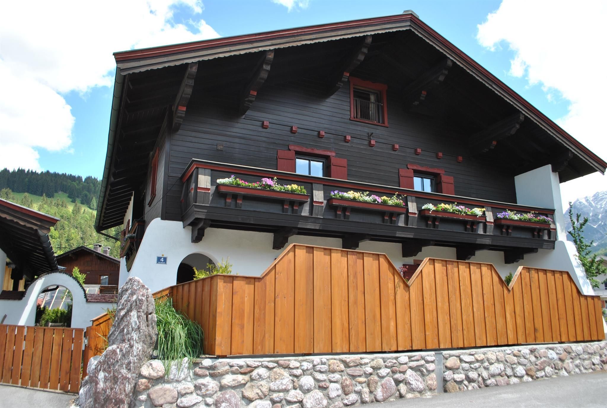 Beautiful house in central position which offers 4 apartments (1x 2 people, 2 x 2-4 people,1x 5-7 people ). Large garden (1400 m²) with sunbathing lawn, barbecue hut and barbecue area, alpine arbour and swing for chilling out. WINTER: close to skibus-stop and crosscountry-tracks. Restaurant, Café and supermarket within walking distance.