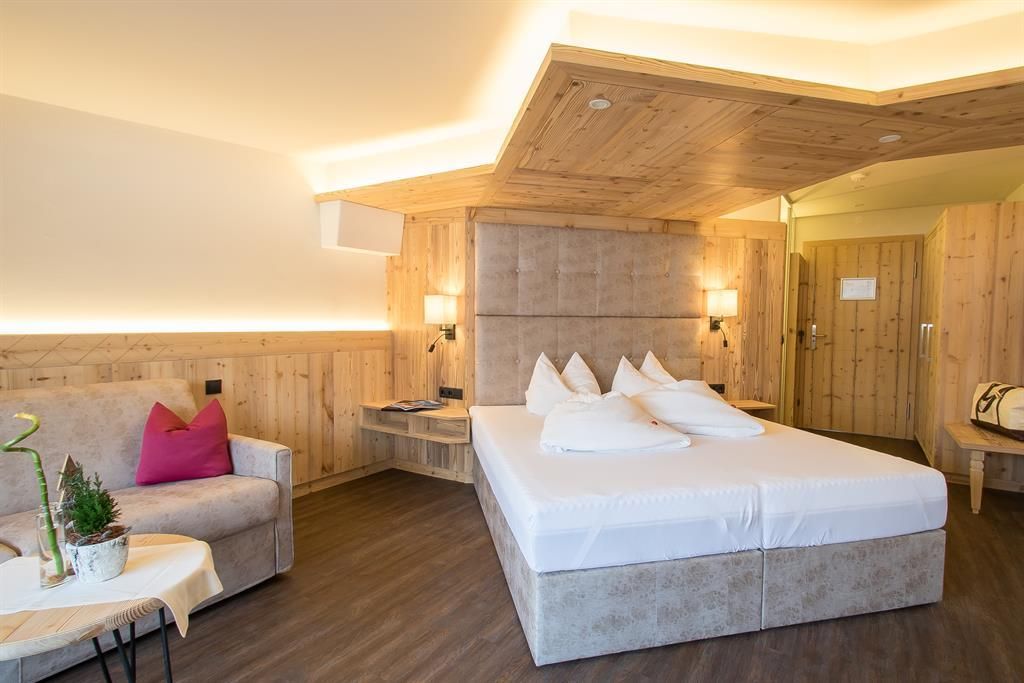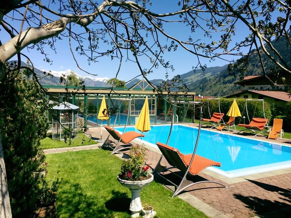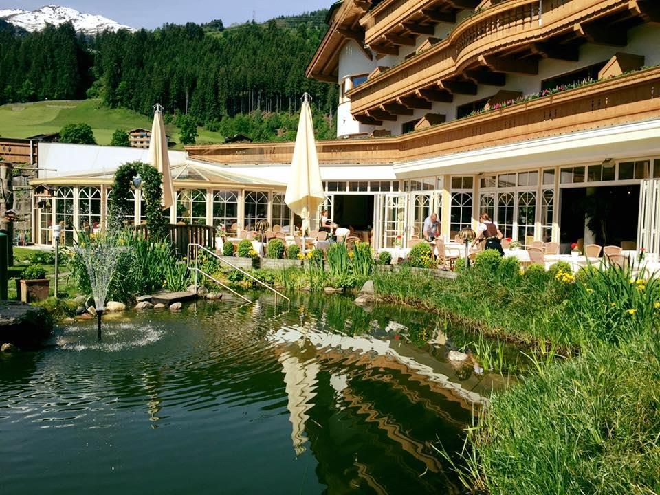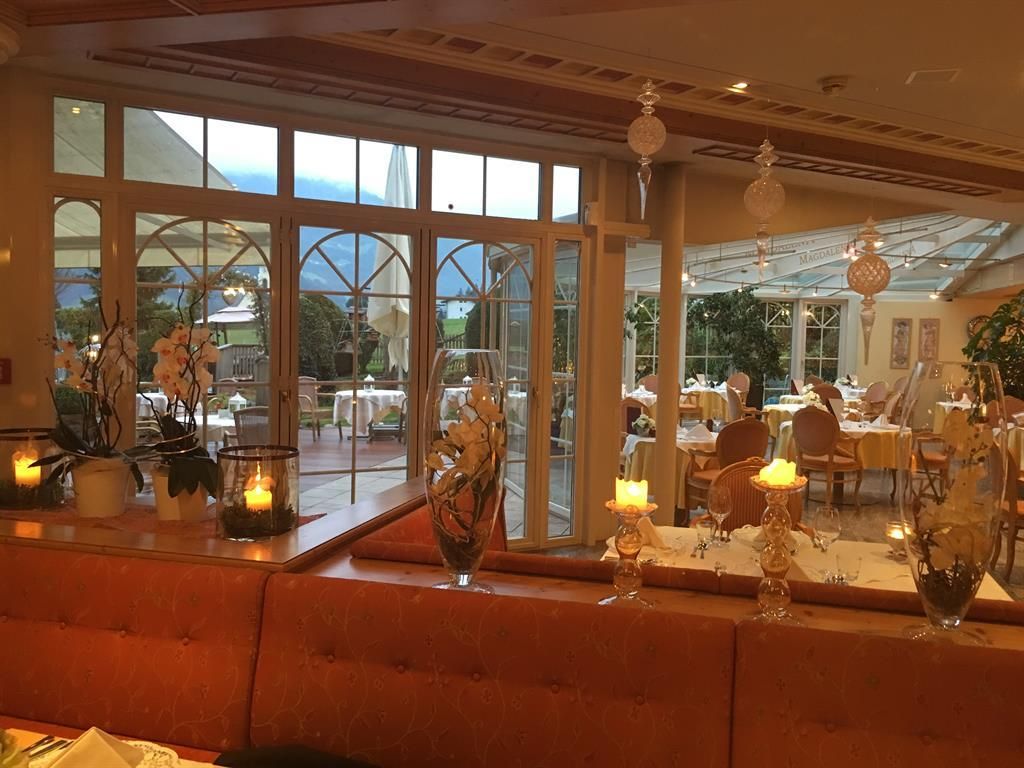 In the 4-star Gartenhotel Magdalena you are welcome and so is your dog! Spend your holidays with your pet in a spa hotel that does not only promise pure relaxation, but also has everything your four-legged darling desires. The 4-star Magdalena garden hotel is quietly located on the outskirts of Ried in the Zillertal and surrounded by flowering pastures and gardens. To ensure optimal relaxation in the Zillertaler mountains, the Magdalena garden hotel has a rich spa offer with Ayurveda massages and cosmetic treatments, a 250m2 spa temple with an extensive sauna world including external sauna, a heated panorama, as well as several outdoor and indoor pools and a solarium. In a nutshell: nothing is left to be desired when you are after a perfect spa experience! The Magdalena garden hotel is much acclaimed among dog lovers and turns your vacation with pet into a special highlight. In addition to that you will surely enjoy our exclusively suites, sized up to 60m2, and the many other pleasures such as free Wifi. Our generous winter garden with panorama view invites you to spend relaxed hours and at night we welcome you at the cosy hotel bar. A day in the Zillertaler mountains should begin with our large breakfast buffet with organic corner and juice bar. If you are after a snack later on, simply help yourself at our afternoon buffet. We even have an own dining hall for our guests with dog. Our 4-course menu with rich salad buffet or the gala Dinner with piano and candle light are guaranteed to memorably end your day at the Magdalena garden hotel. We also offer special dietary cuisine with vegetarian or vegan meals. The 4-star Magdalena garden hotel in Ried is an optimal starting point for almost any kind of winter and summer sports activity. Here in the Zillertal skiers, hikers and golfers are all equally pampered! In winter, the free ski bus stops directly in front of our hotel and we even have a special treat for you: 2 times per week we take you on a skiing safari with your own ski guide. After a winter walk you can enjoy our culinary delicacies in the evening. In summer, you can rent bicycles for free or join our daily activity programme with own hiking guide. The new golf course in Uderns lets the hearts of golfers beat faster and is only 1km away from our Magdalena garden hotel. Enjoy relaxing hours on our sun terrace with sunbathing lawn and chairs, discover the wonderful gardens and the large pond with Kneipp area. We look forward to your visit here with us at the Gartenhotel Magdalena! Your hosts, the Riedl & Schösser family