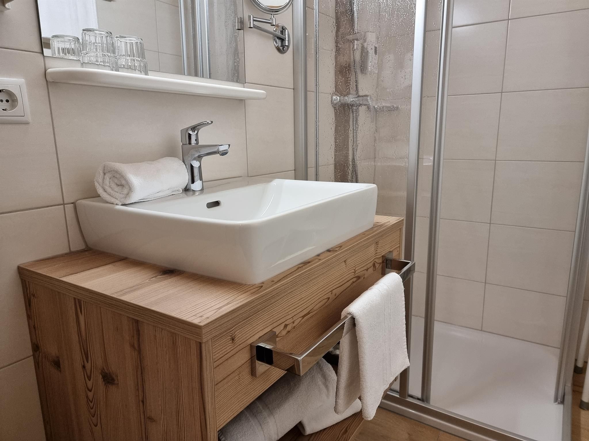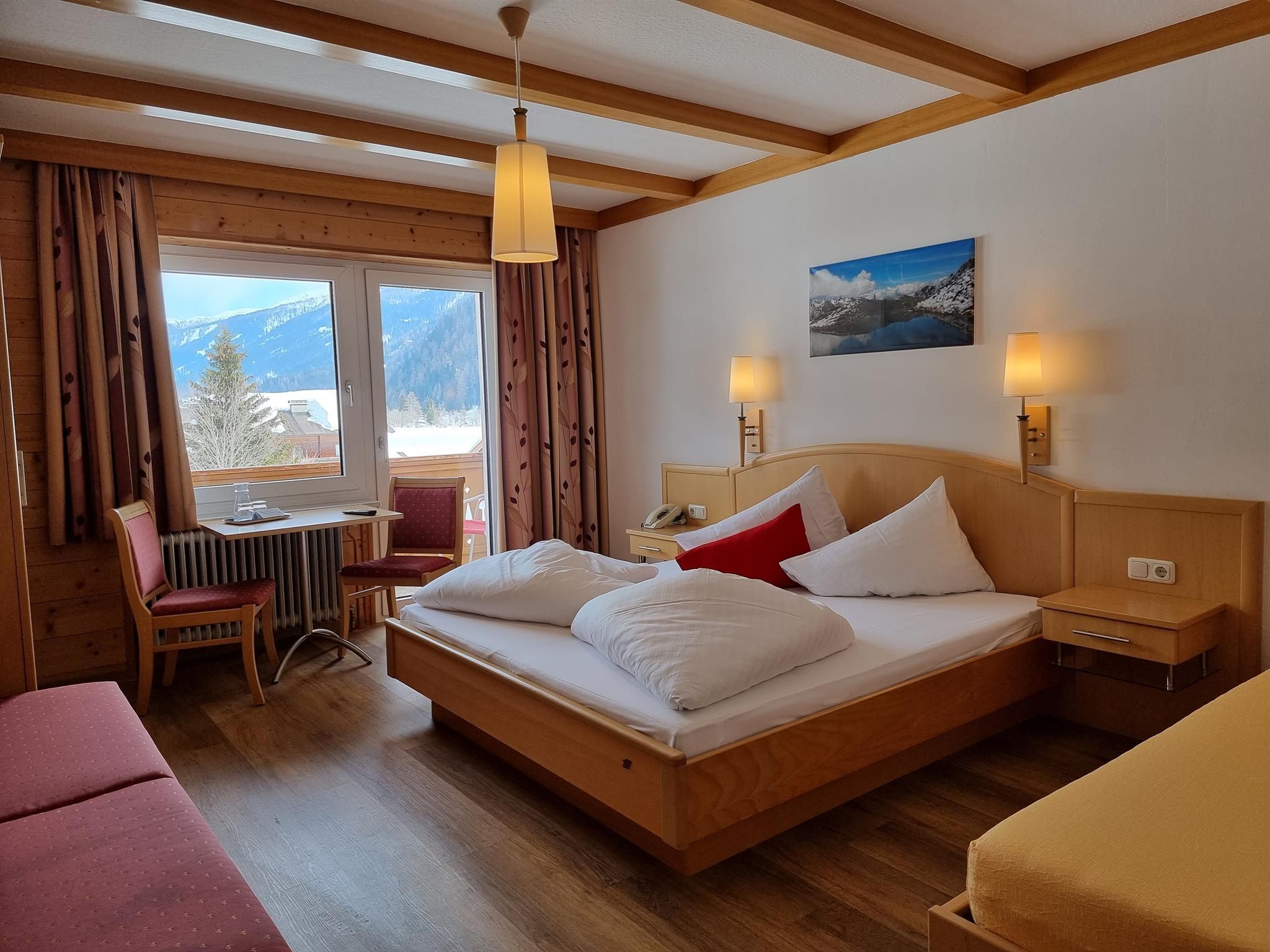 Family-run 3-star guesthouse, newly renovated, quiet location near the center of St. Jakob, good accommodation for vacation seekers about 45 beds in the main house and 8 beds in the apartment house all rooms and apartments are modern furnished with shower / WC, balcony, telephone and satellite TV. W-Lan free of charge. Evening restaurant, non-smoking, fine locals u. Entrance foyer. Relaxation can be found in our small but nice wellness area.