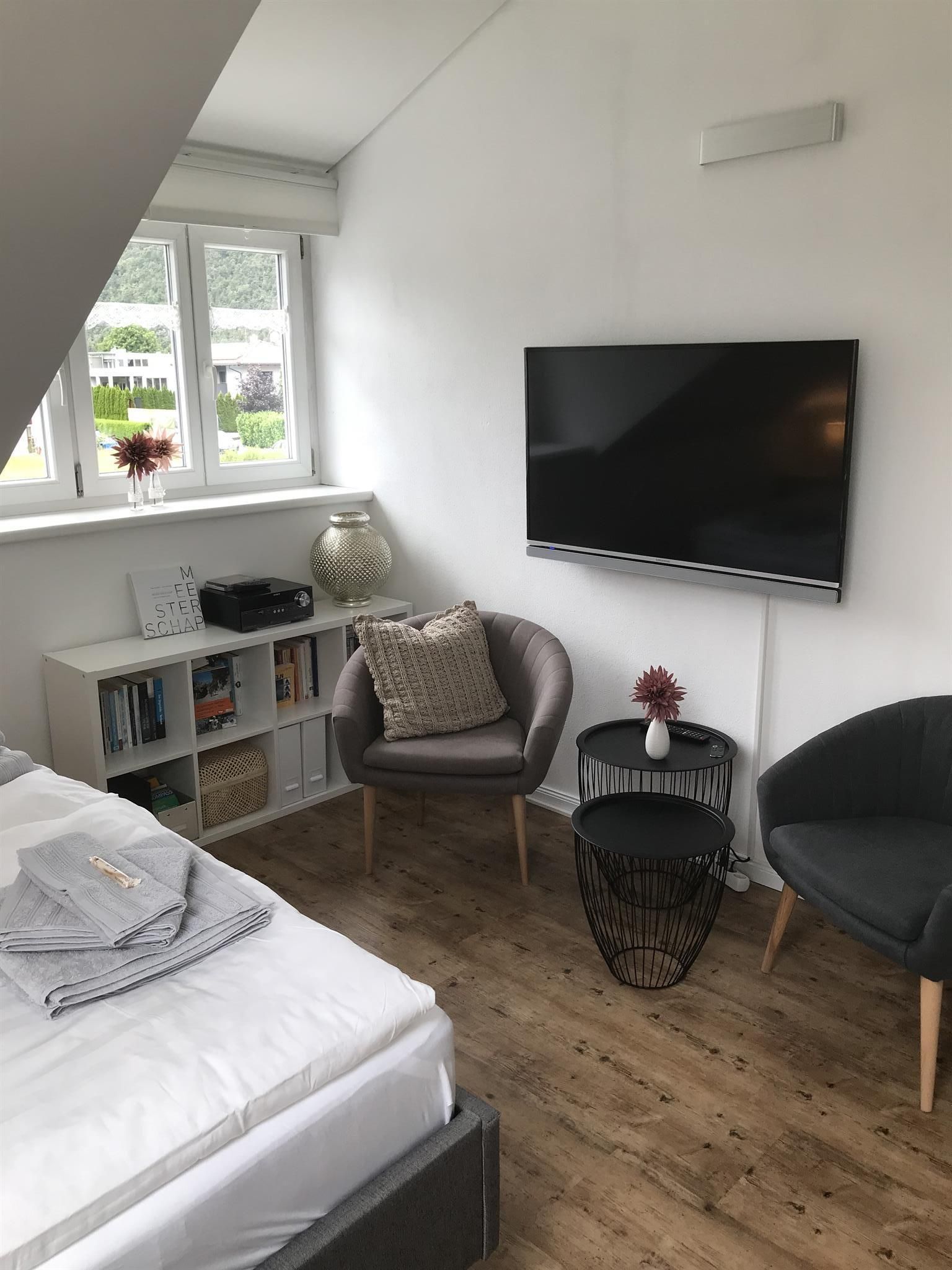 This 2-4 person apartment is a separate unit located on the top floor of an idyllic and tastefully furnished single-family home in the Tyrolean town of Zirl. The high-quality architect-designed house was built 10 years ago and has a small garden featuring a separate area for guests. The apartment includes a living room with a kitchen and dining area, one or two bedrooms (depending on the number of guests) and a bathroom with a shower and washer-dryer. There is a direct bus connection to Innsbruck every 30 minutes. The bus stop is about a 10-minute walk from the property. Zirl is a sunny and centrally located destination, only 15 minutes by car from the city of Innsbruck. The shops and small restaurants in the market town are 5-10 minutes away on foot.