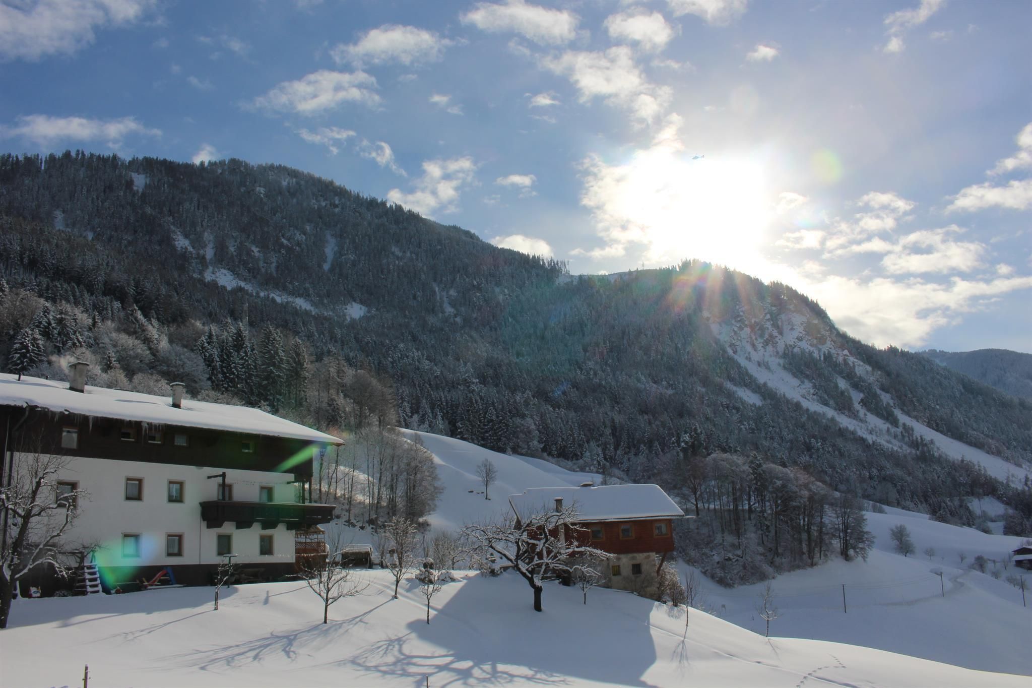 The HappmannhofOur farm is situated at 750m above sea level in the middle of a wonderful mountain landscape. We are surrounded by mountains with the best starting point for hiking, walking, skiing or simply to enjoy. Around our farm there are meadows and fields and a breathtaking view into the Inn valley. Holiday flatsOur family-friendly holiday flats have been repeatedly renovated and brought up to date. They not only have a fully equipped kitchen, but also rural comfort. Come and see for yourself! Holidays where children are happy!There is plenty of space for children right here on our farm. Experience farm life up close!Of course there is also the possibility to help us with the work on the farm. Guests young and old are always welcome in the stable. Animals at the HappmannhofAll our animals are looking forward to lots of cuddles! We are very much looking forward to seeing you! Your family Neuner!
