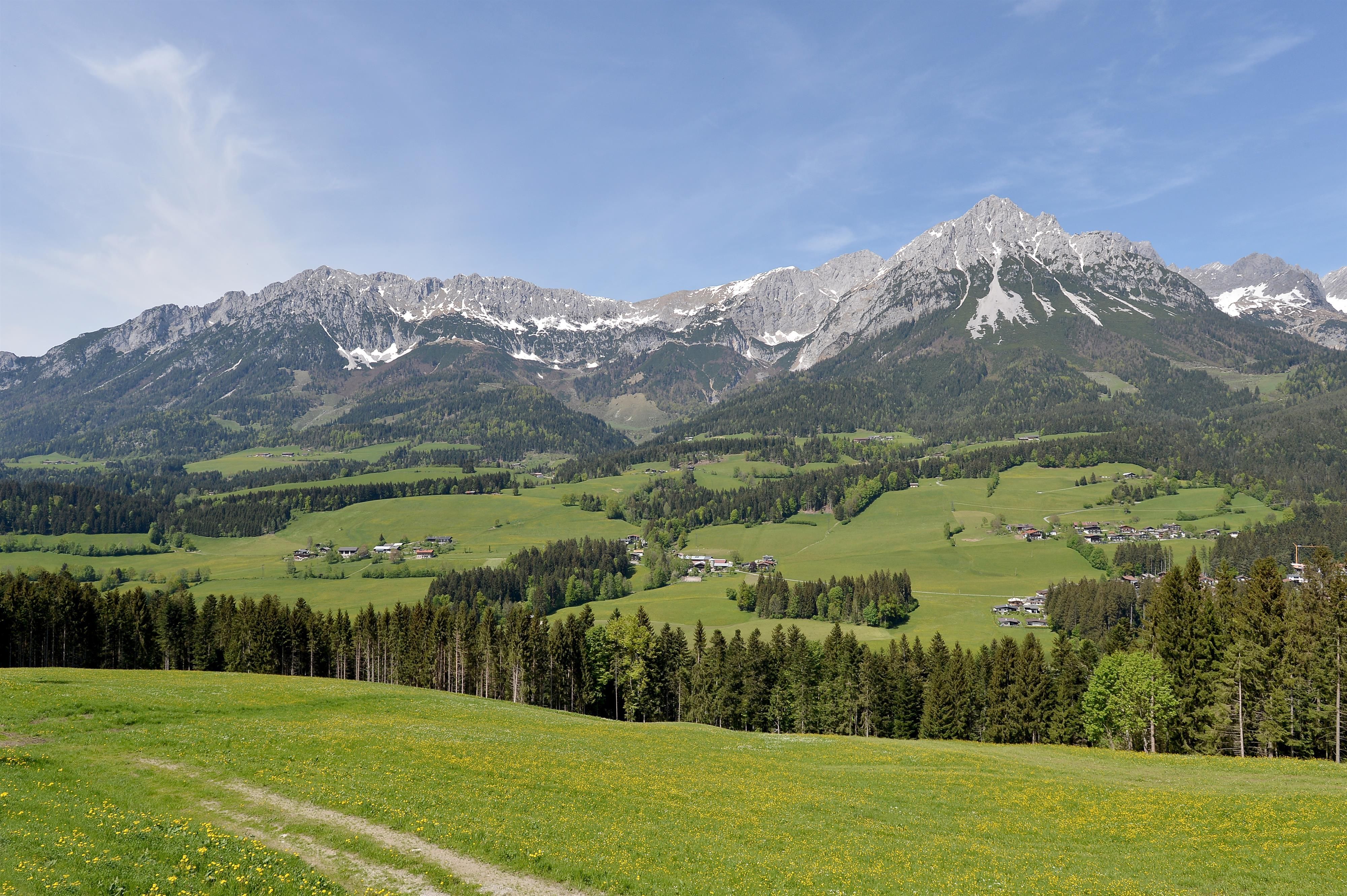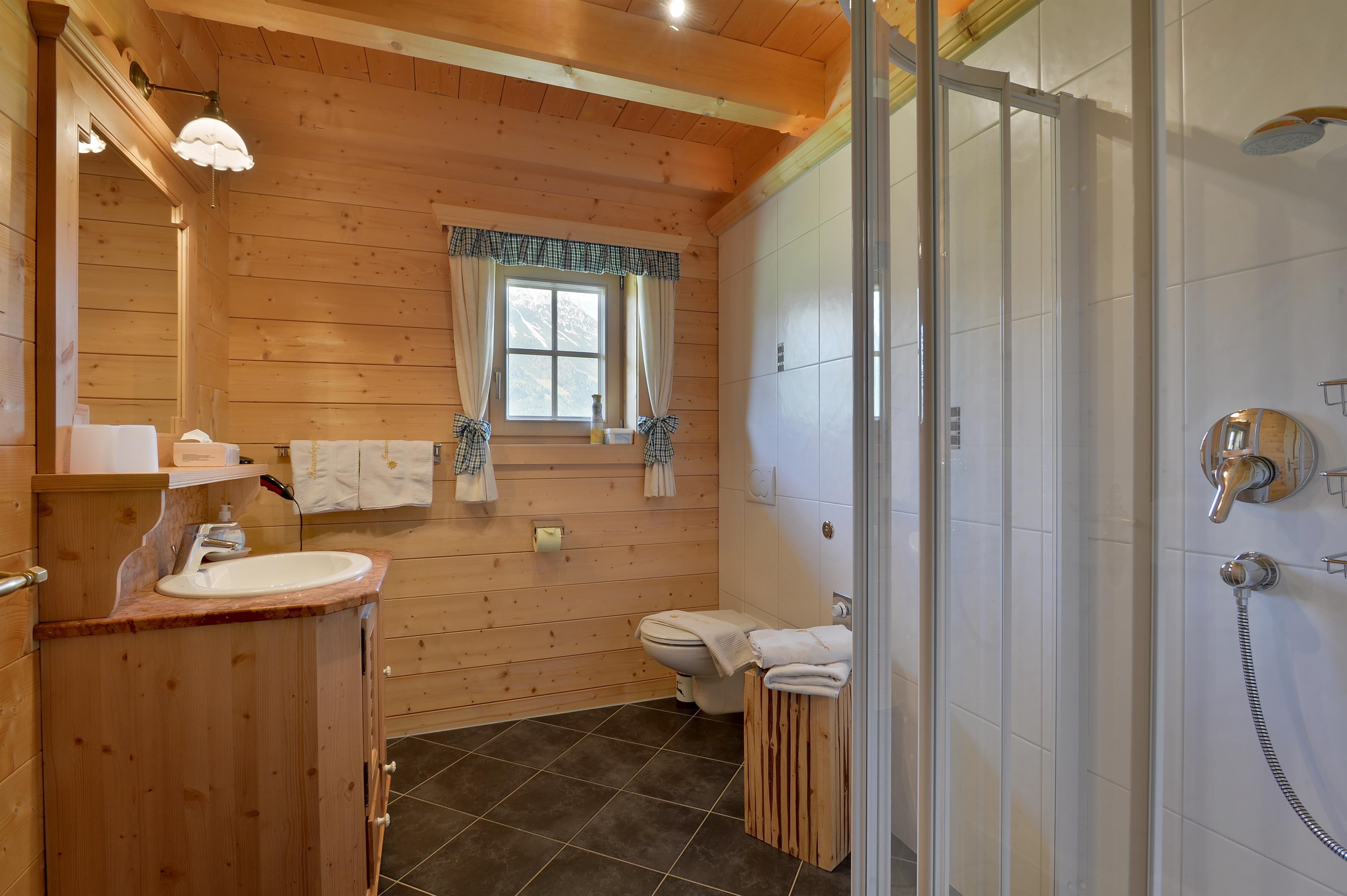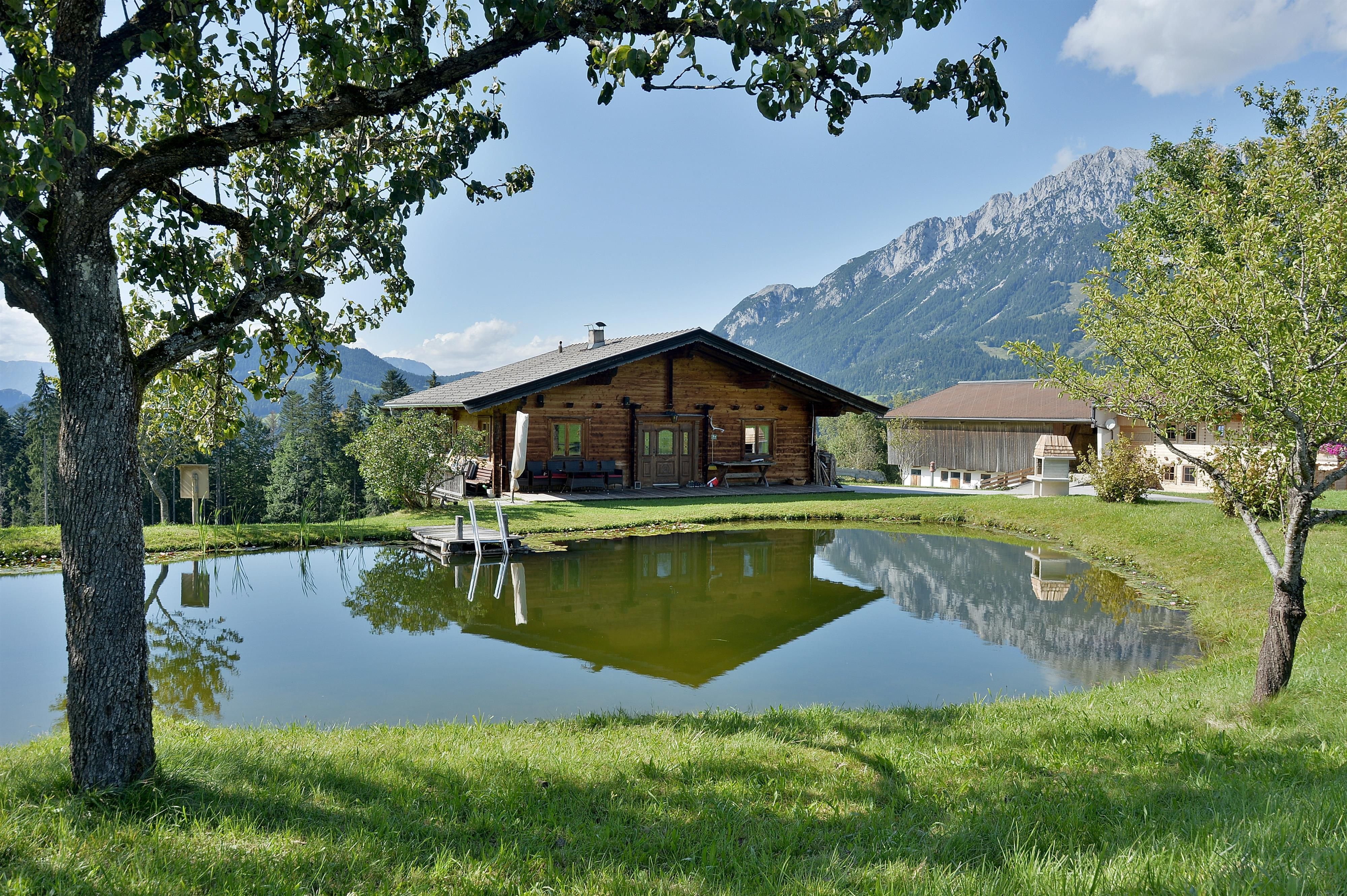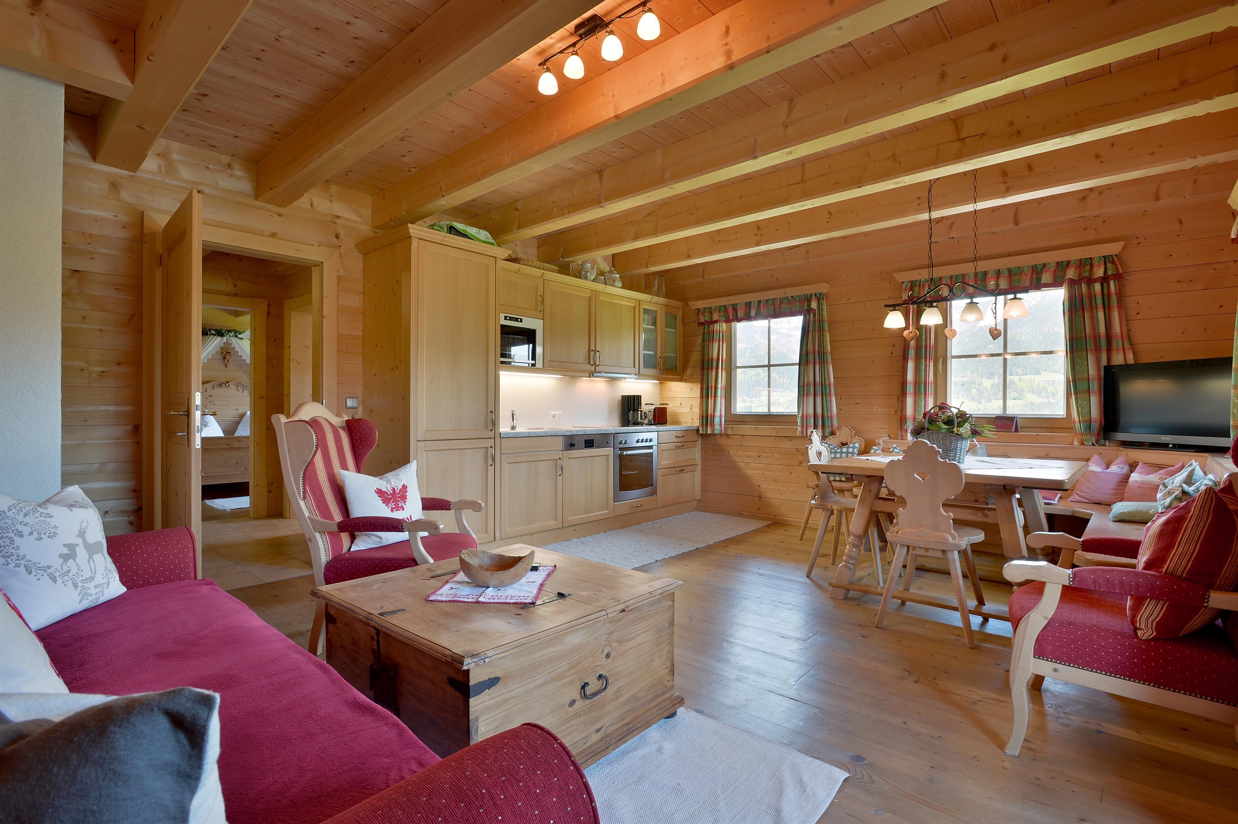 Our farmhouse is built like a blockhouse and in original tyrolean style and is situated on a hill about 2,5 km from the village Center. Very quiet and sunny position surrounded by the nature and with free view to the mountains like Wilder Kaiser and Hartkaiser. We offer a big apartment with 3 sleeping rooms and one double room, both in high quality wooden furniture in tyrolean country style. We are looking forward to welcome you in our farm house in Ellmau.