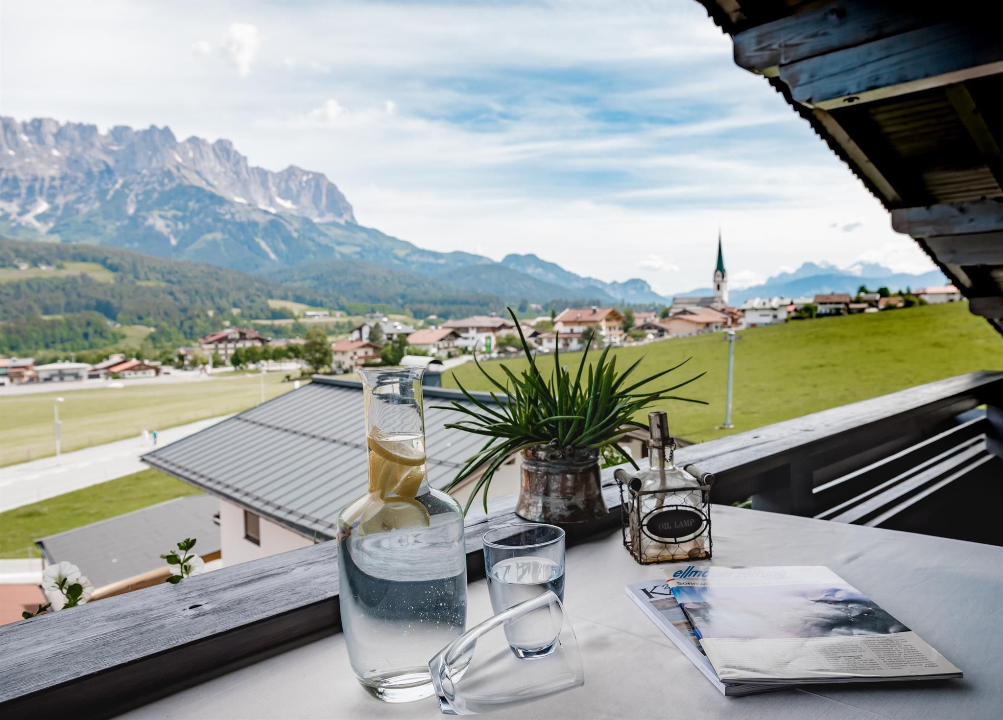 Apartment house in a beautiful location at the edge of the village, with outstanding views of the Wilder Kaiser Mountains. 9 first class apartments suitable for 2-6 guests. All apartments feature a fully equipped kitchen(microwave, dishwasher), TV, telephone, internet access, safe. Bath or shower/toilet an hairdyer. Each apartment also has a balcony. A heated ski&boot room, garden with deck chairs, parking, fitness room. Cots and highchairs for children can be provided on request. The ski lifts and the ski school are located right next to the apartment house.