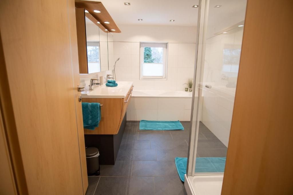 • Bathroom with shower and bathtub, double washbasin
