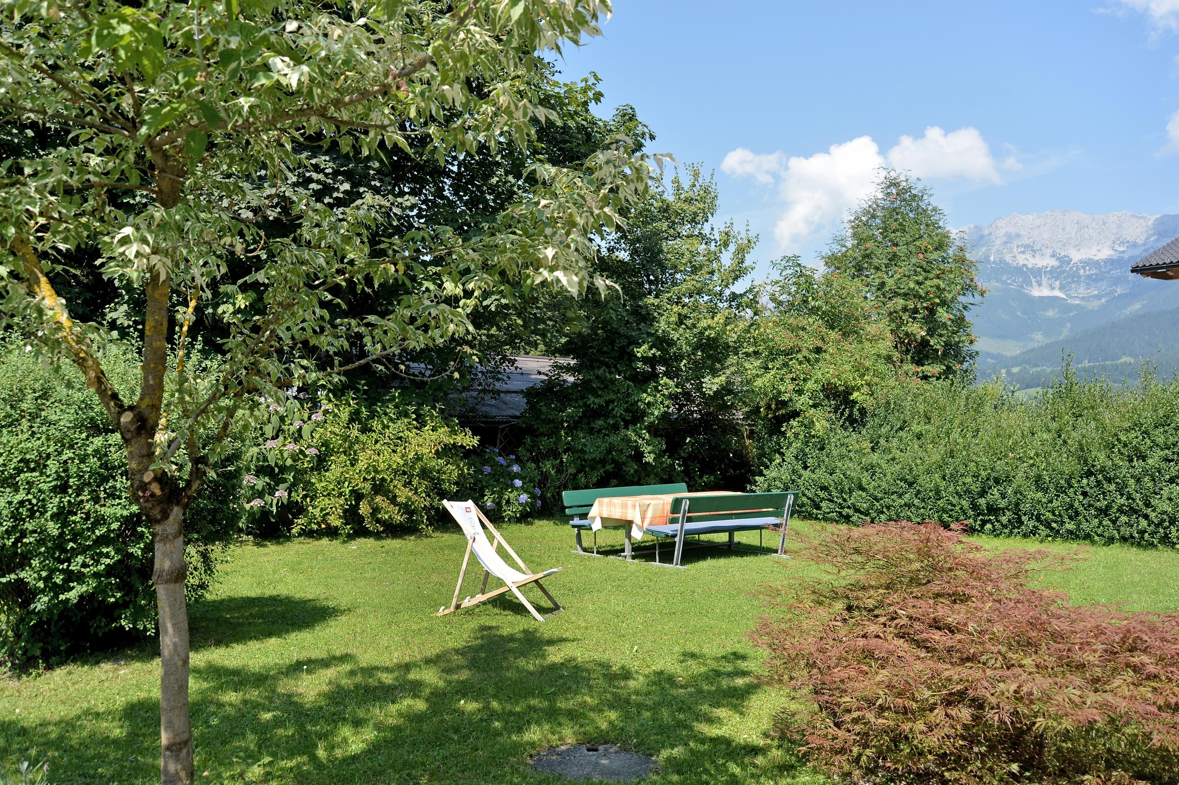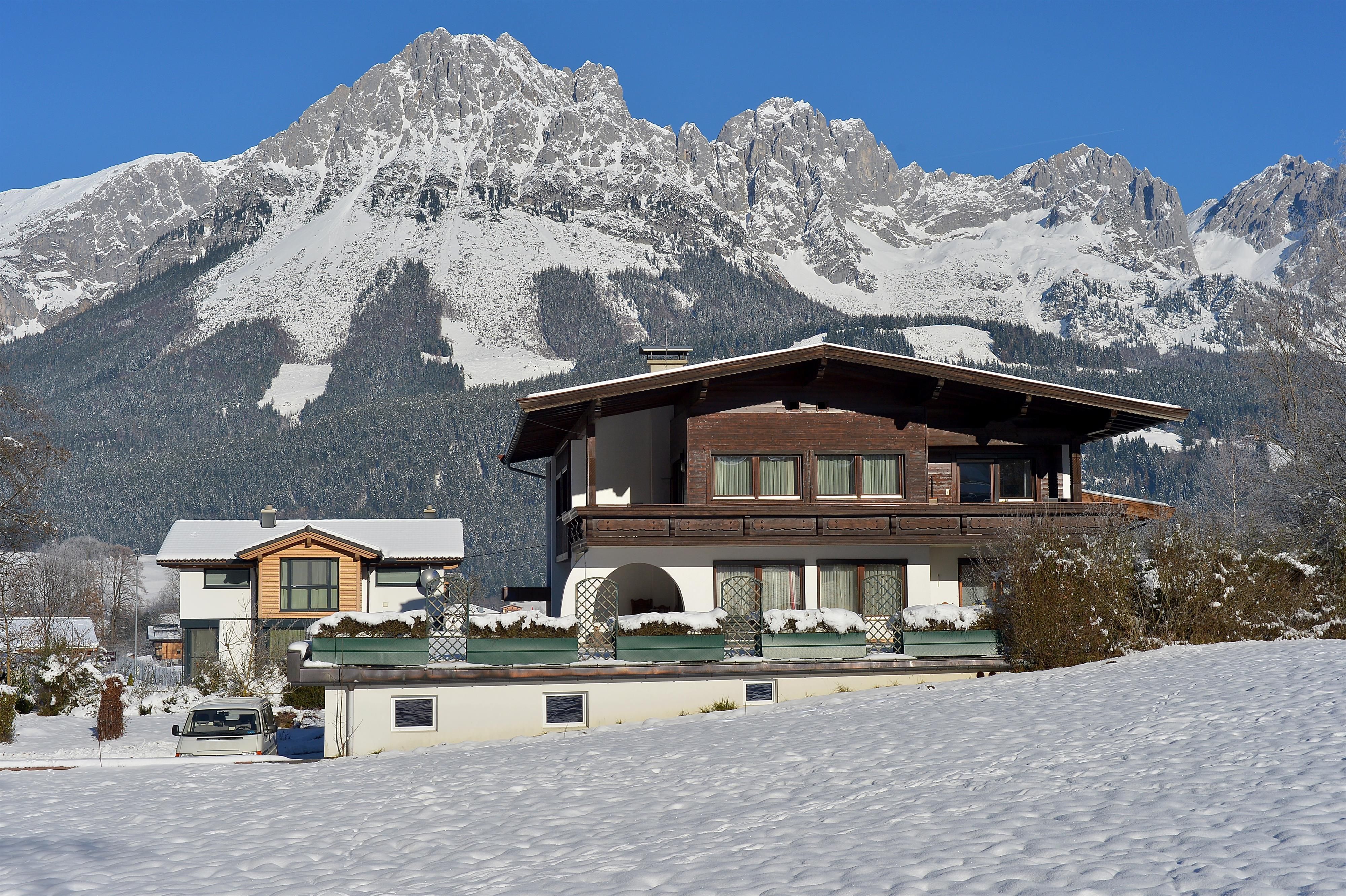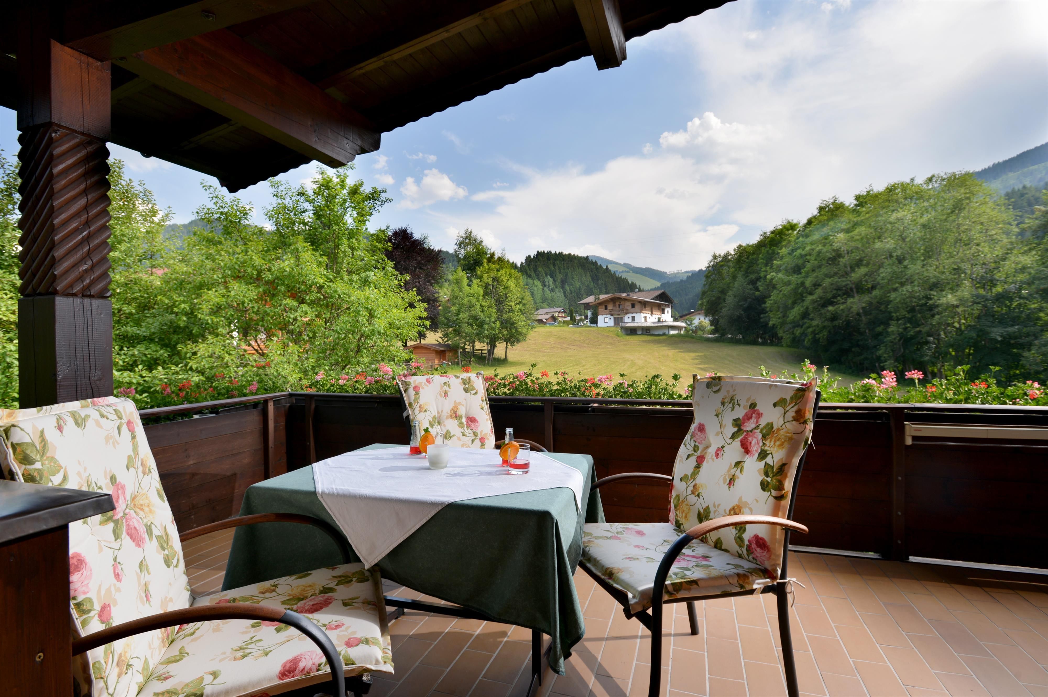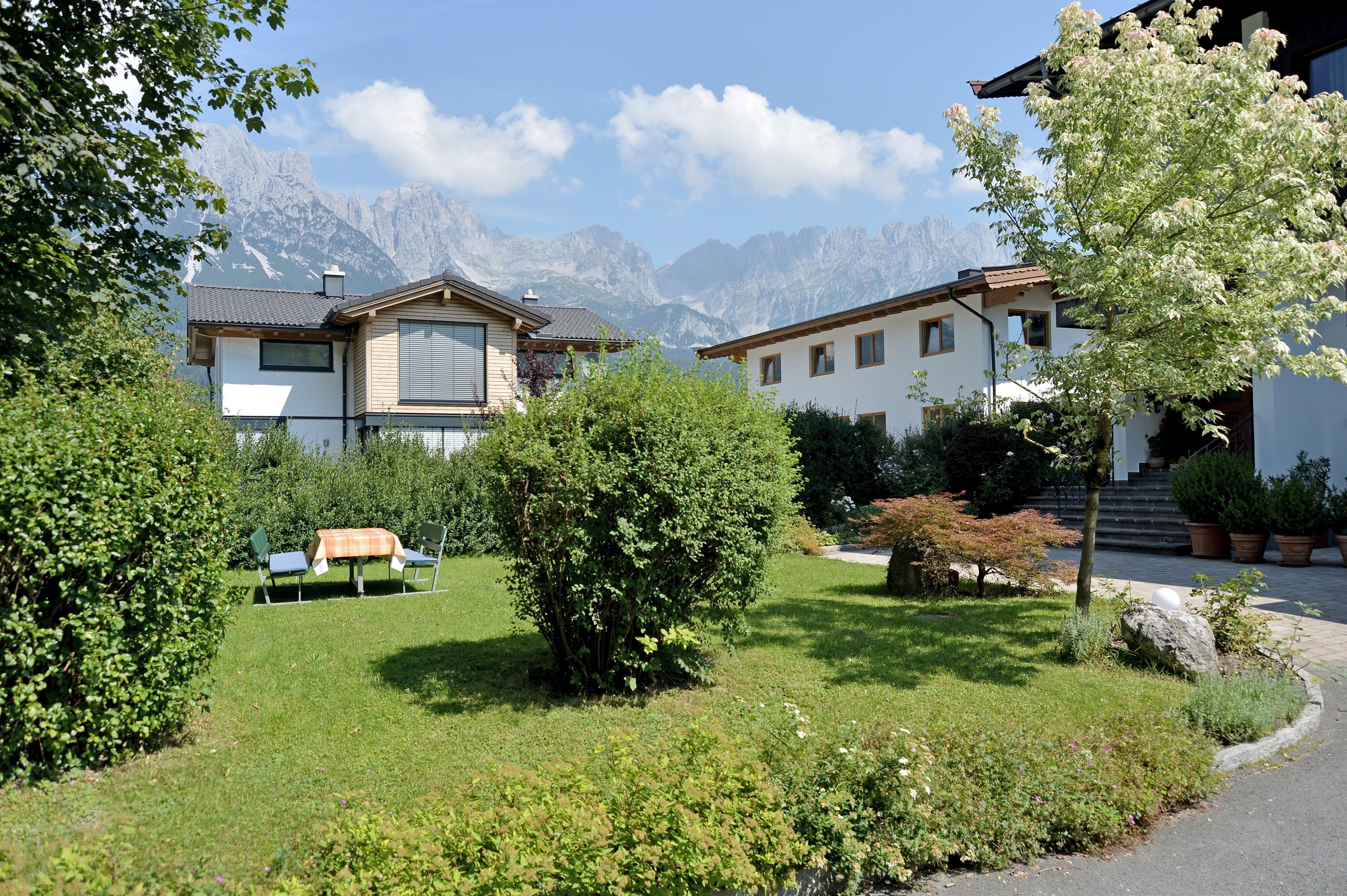 In summer, you can enjoy the magnificent panorama of the Wilder Kaiser from our house.