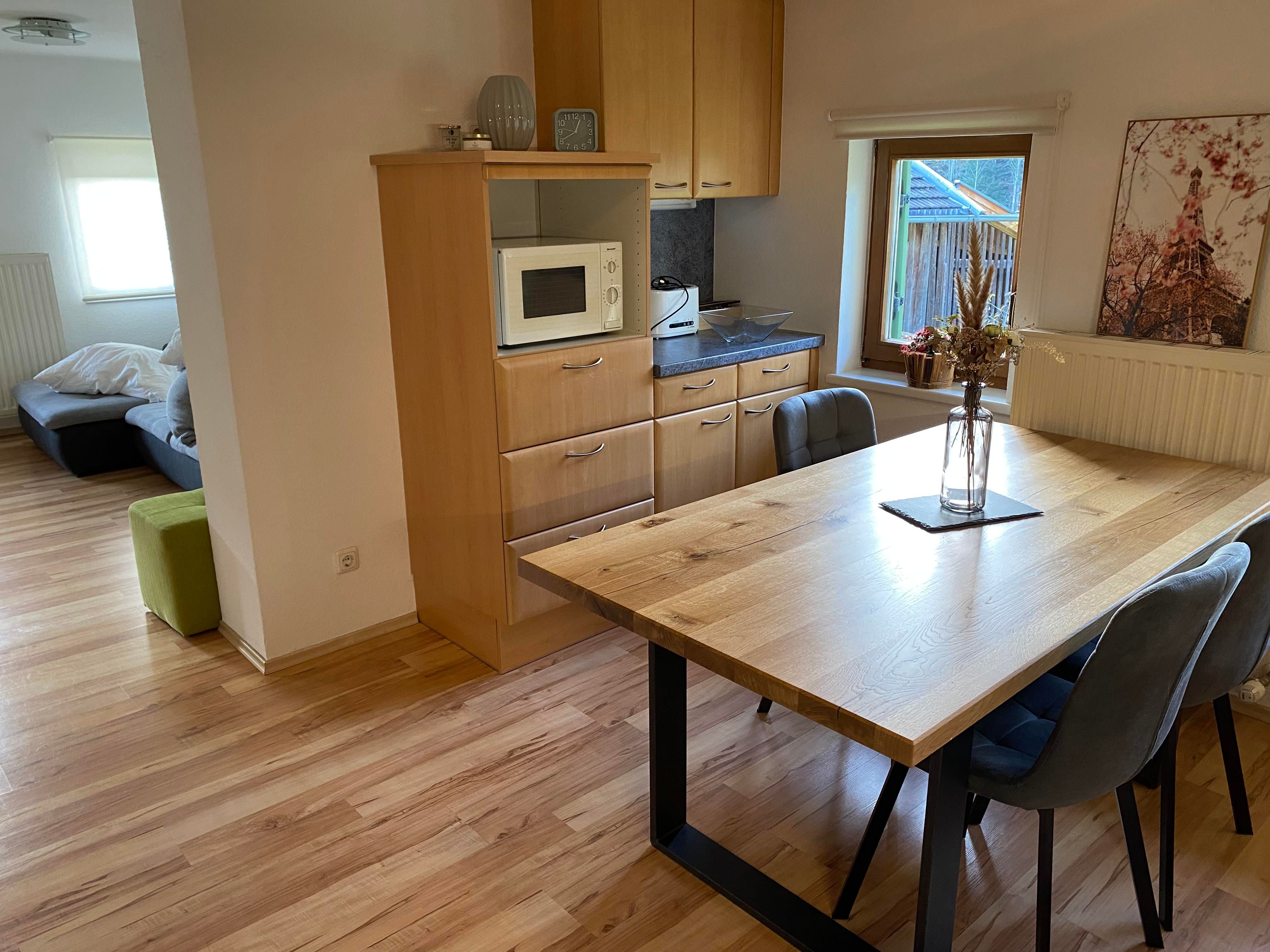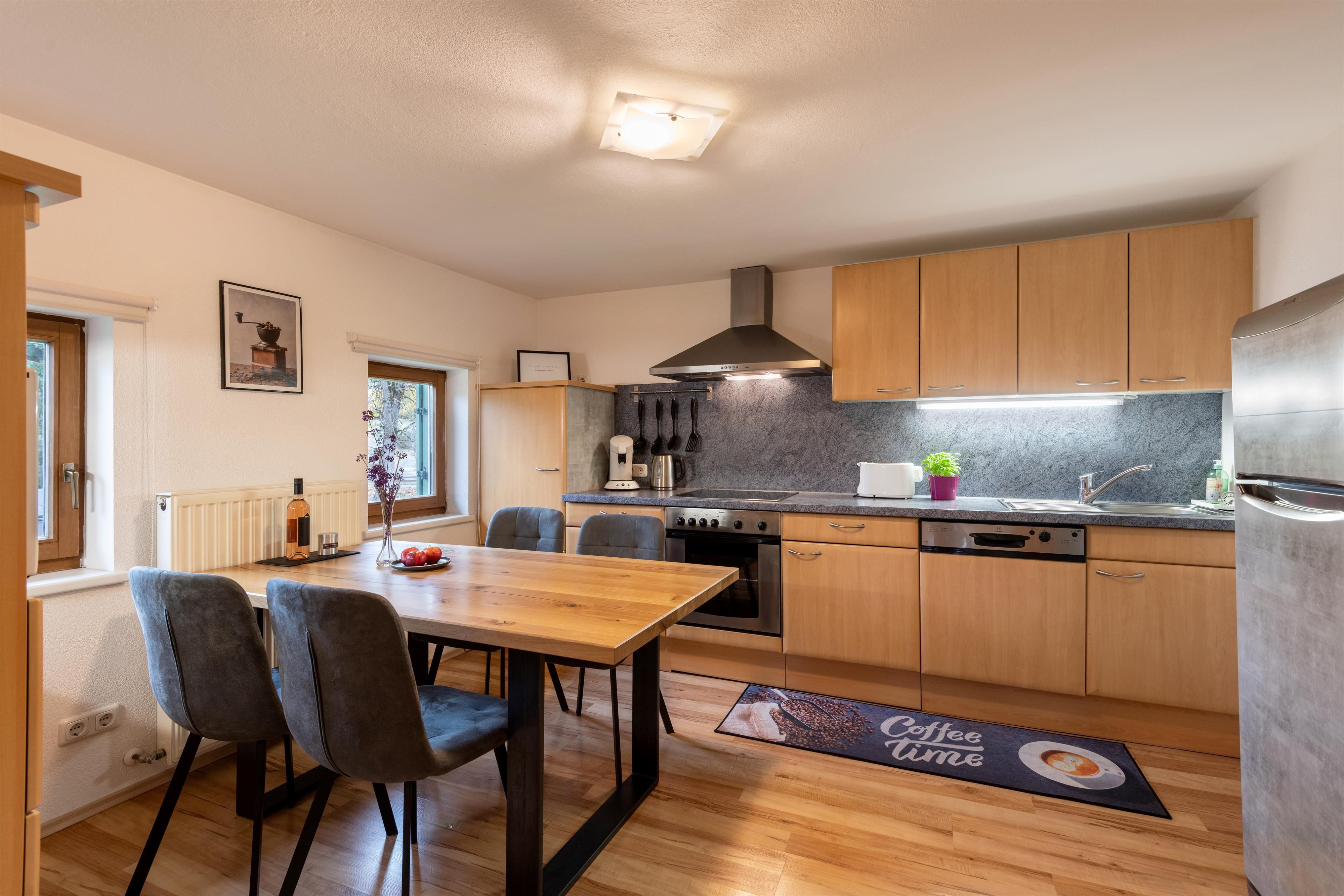 The apartment "Ahorn" is located on the second floor of the former farmhouse, which presents itself traditionally on the outside, but whose apartments have been lovingly renovated and furnished in a modern style.