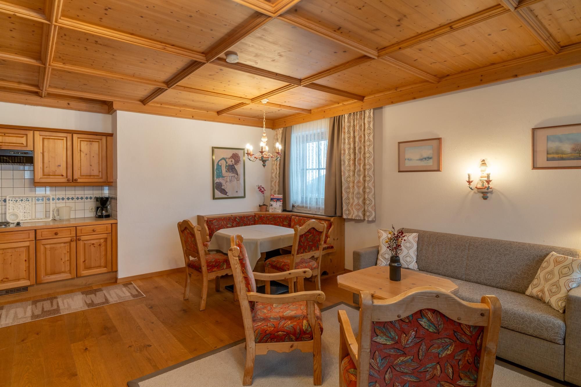 Our Haus Garden with it's cosy studios is located directly opposite from Hotel Hochfilzer in the heart of Ellmau. All studios have a tee-/coffee facilities, separate living/sleeping room, bathrom with separate WC, balcony and therefore offer the perfect accommodation for families with small children. The rich breakfast buffet from Hotel Hochfilzer can be booked on request as well.