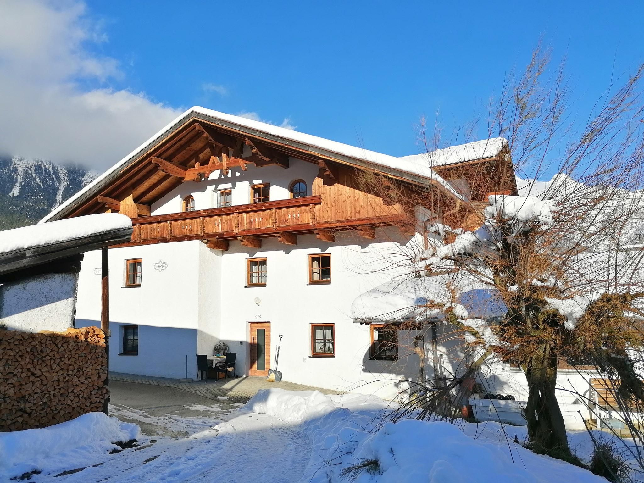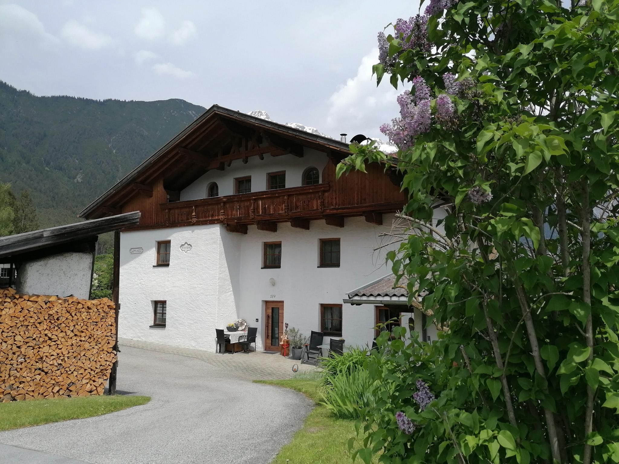 The accommodation is located in Gschwent, a small hamlet on the Mieminger Plateau, surrounded by green meadows and forests. There are hiking and cycling trails right on the doorstep, and even a cross-country ski trail in winter if there is enough snow.