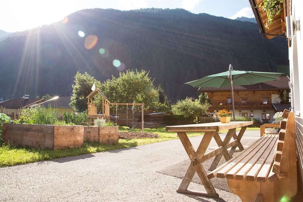 "Greet you" in Hieserhof ! Family atmosphere , sunny position , overlooking the Stubai Alps - an ideal prerequisite for the perfect vacation . Our newly furnished rooms and a rich breakfast buffet with products from the farm contribute to well-being - for the whole family ! We look forward to visiting ! Your family Siller