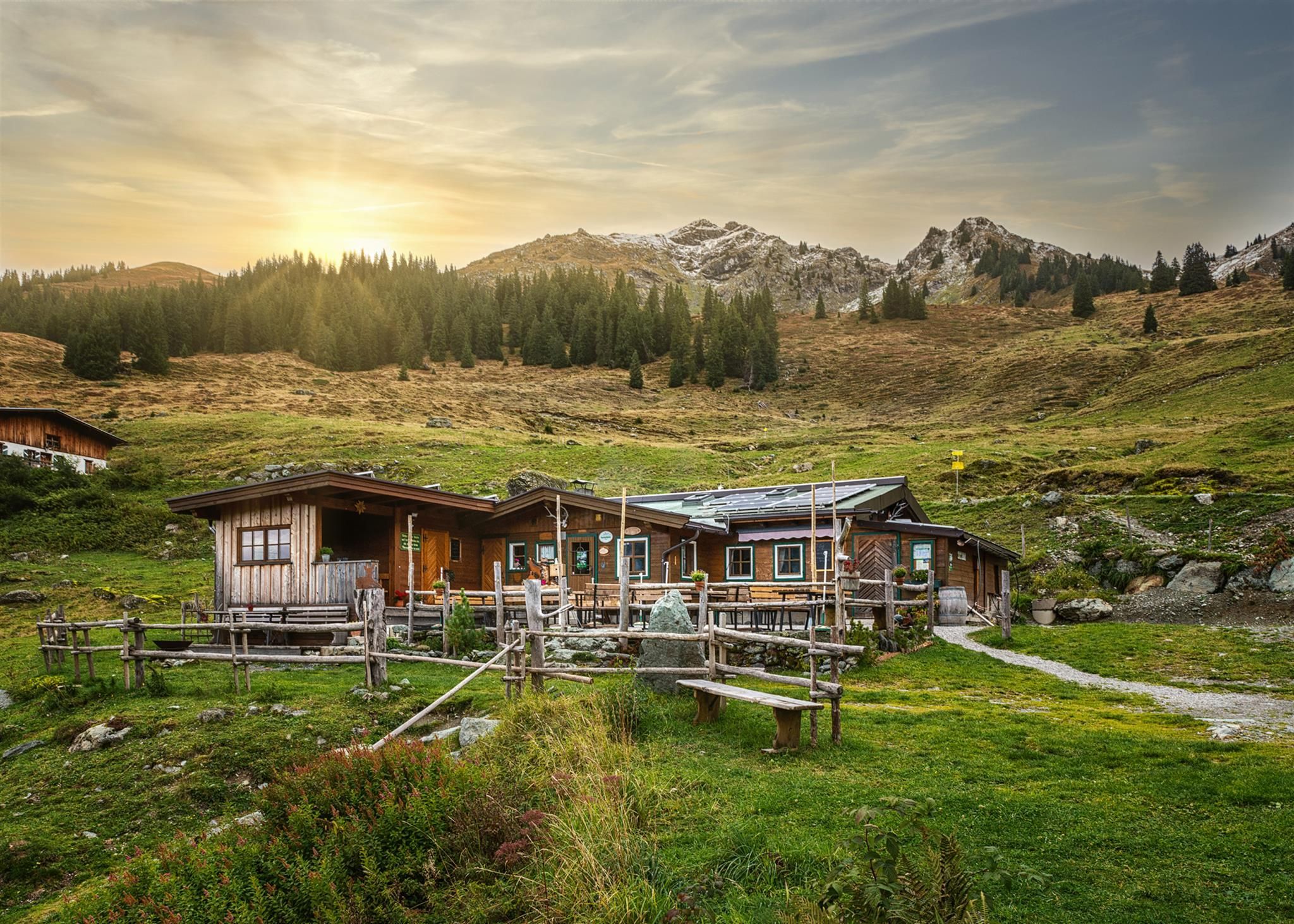 The cosy Hochwildalm (1557m a.s.l.) is as authentic as it gets. It’s situated right beneath the famous Bischof (2127m a.s.l.) and a popular destination for hikers and mountain bikers alike. Starting from the hut, you can go on exciting hikes to the surrounding peaks including the Bischof, Gebra (2057m a.s.l.) and the Sonnspitze (2062m a.s.l.) just to name a few. The Hochwildalm can also be used as an overnight stay for multi-day hikes, such as the “Kitzbüheler Spaziergang”.