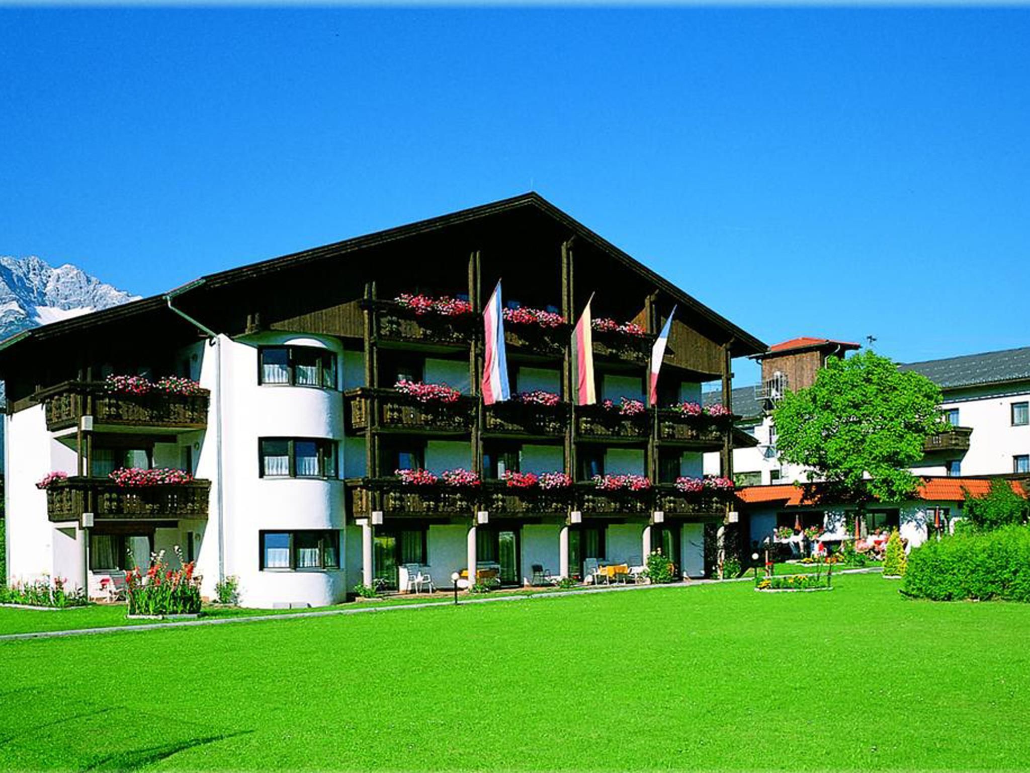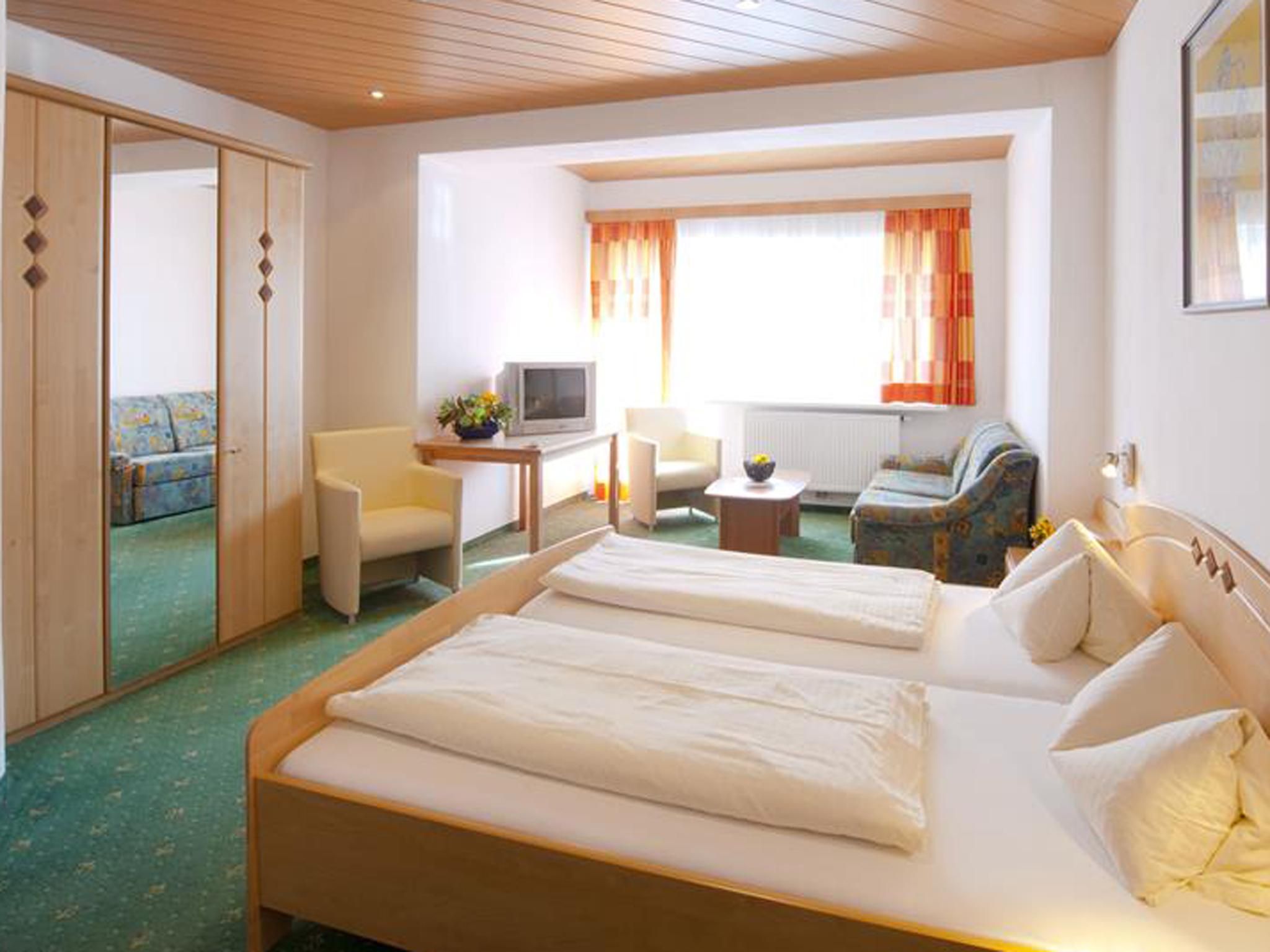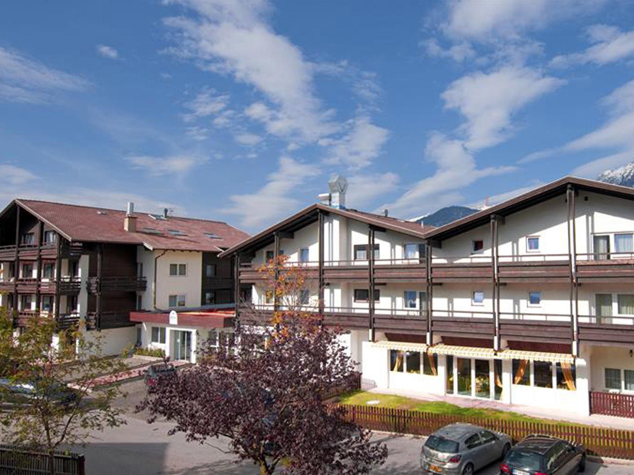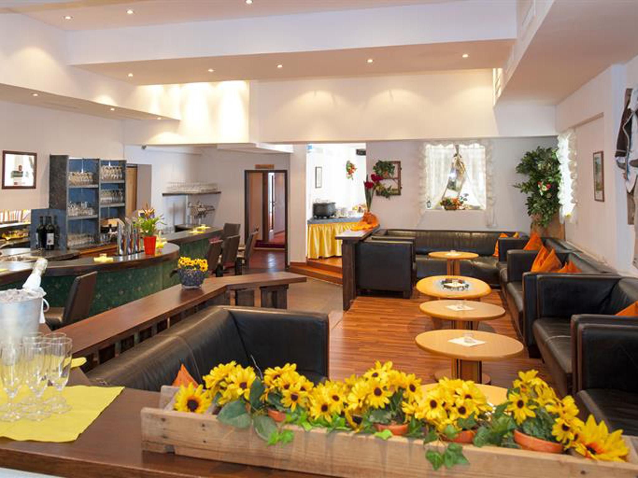Our family-run hotel is right in the centre of Götzens (100m to the village centre, near the Götznerbahn). Hotel facilities: 80 rooms, reception, bar, à la carte restaurant, fireside lounge, 2 large dining rooms, 3 parlours, 2 lifts, spar facility with indoor swimming pool, sauna, steam room, solarium, massages, gym equipment, WiFi internet access at half price for hotel guests. Free parking for cars, motorbikes and coaches (subject to availability), ski storage room. The hotel and all its rooms were totally refurbished in 2002-2004. Our extensive spa facility is free for all hotel guests and is easily reached by lift from all rooms. Indoor swimming pool with integrated Jacuzzi/whirlpool and waterfall, Finnish sauna, Turkish steam bath, solarium (at extra charge), massage room. On a sunny winter afternoon, our hotel bar is the ideal spot for a cosy evening meal.