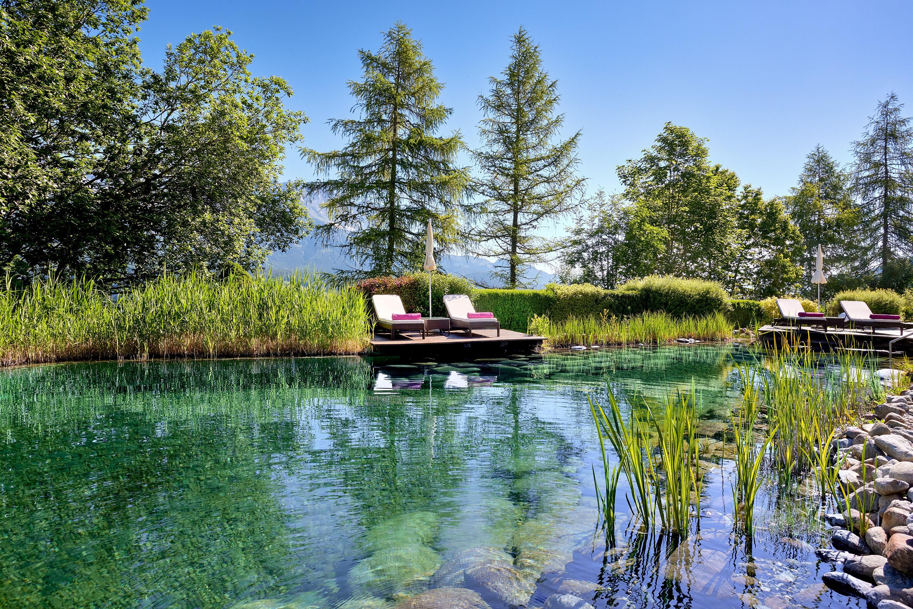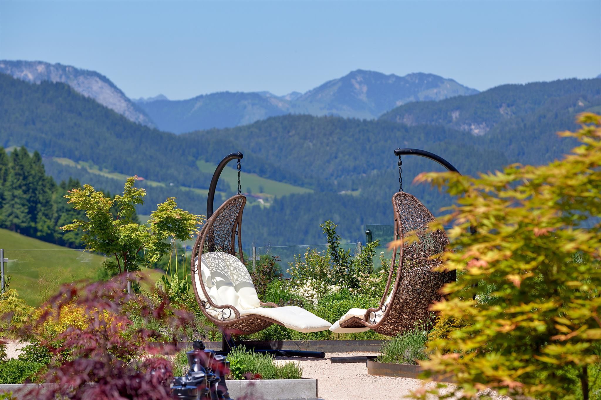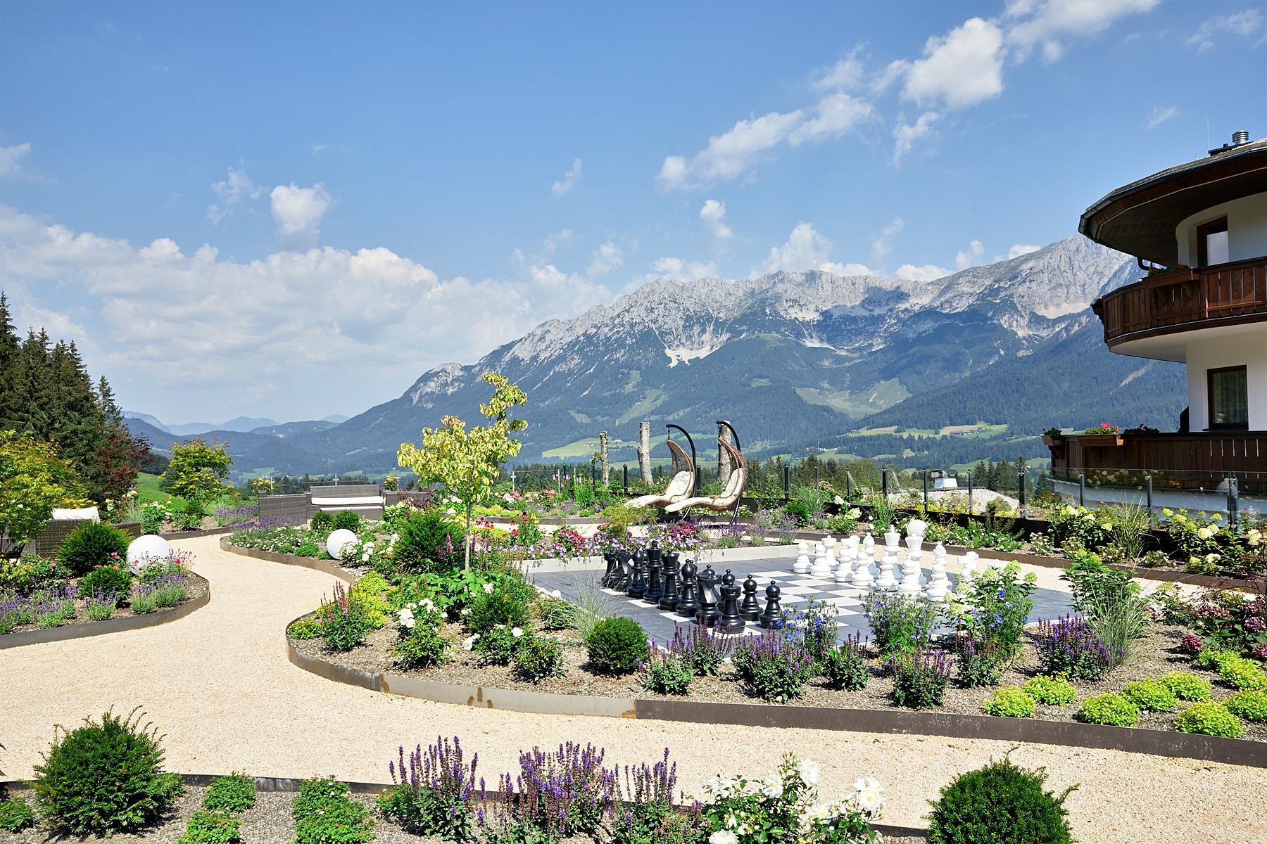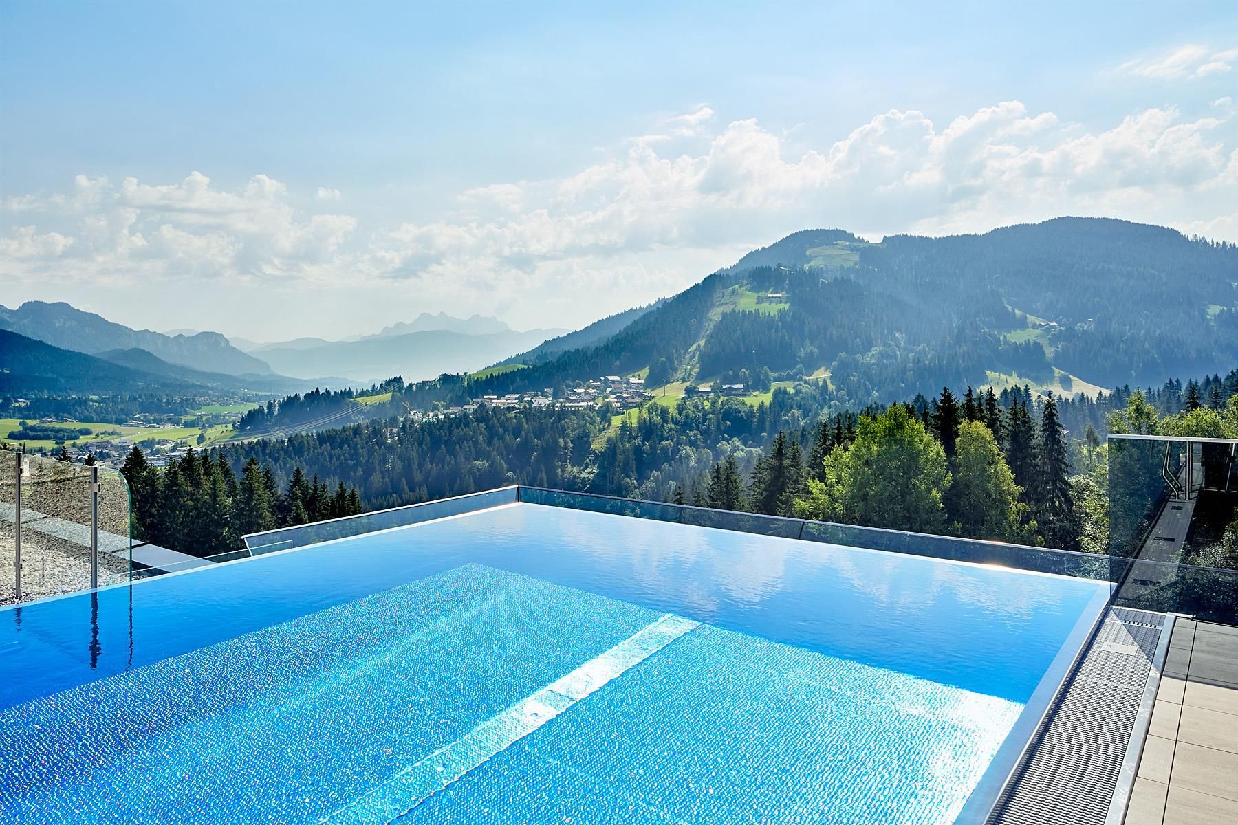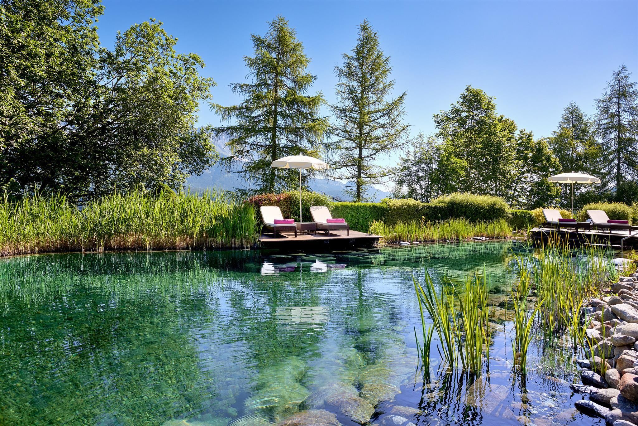 Enjoy unique alpine wellness flair in "Austrias Hotel of the Year 2022" our family-run luxury hotel (52 rooms/suites) situated in an extremely privileged location on a sunny plateau high above Ellmau with breathtaking views to the Wilder Kaiser. In winter directly next to the Hartkaiser valley ski run and in summer the perfect starting point for extensive hikes.