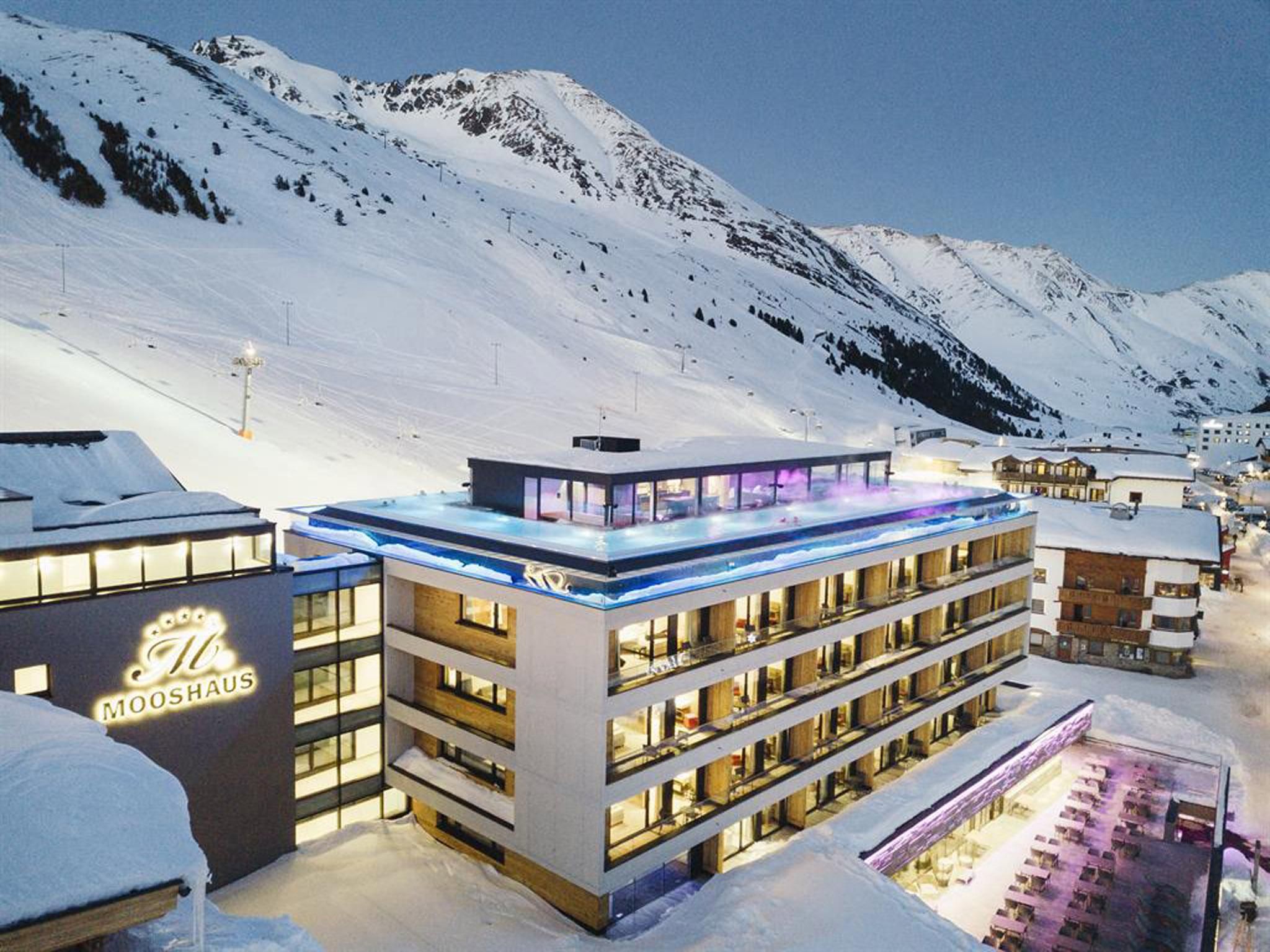 The family-run 4-star superior Mooshaus is a winter resort set at an altitude of 2,020 metres above sea level in the village of Kühtai. Experience extravagant holiday comfort and modern alpine chic, including the highest infinity pool in the Alps, the Endless Sky Pool! Adults, couples and children are all sure to enjoy a perfect winter holiday here with us. Straight from your ski locker to the slopes. The in-house sports shop, GERBER SPORTS, offers ski equipment and ski school. The Gerber Card acts as a ski ticket and can be used as a cashless payment method in all Gerber businesses. Relax in our spa and wellness area with various saunas and steam rooms or on our panoramic sun terrace. Children can let off steam in the Kids Spa, which has a pool and a water slide, or pass the time in the supervised Ravensburger Kühtai Play Zone.