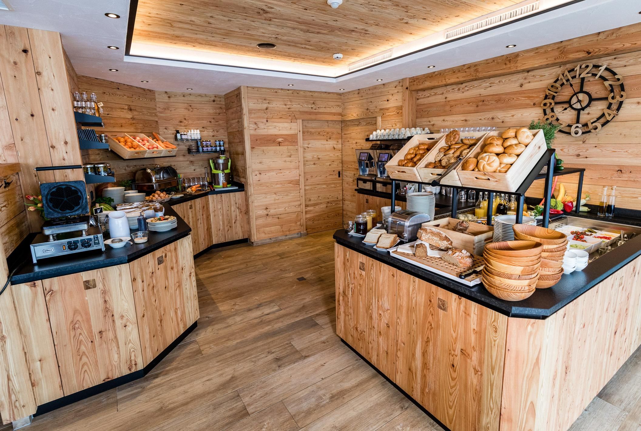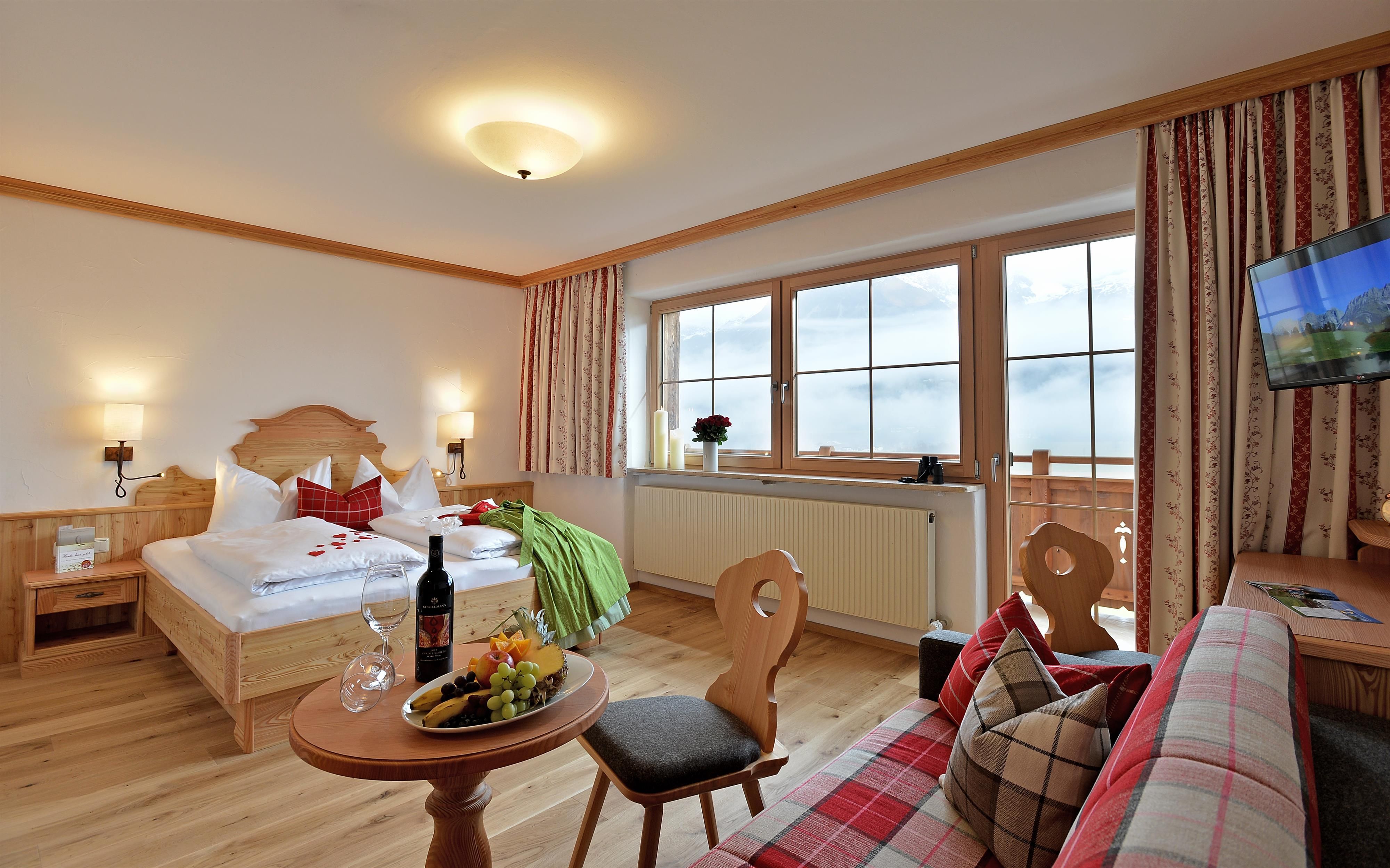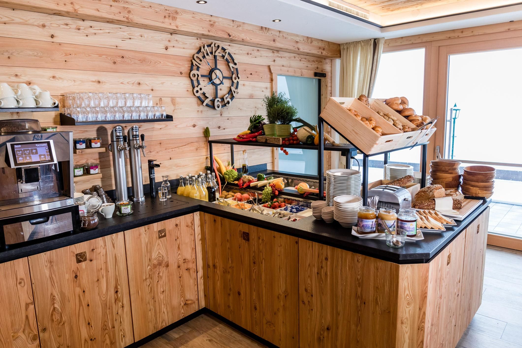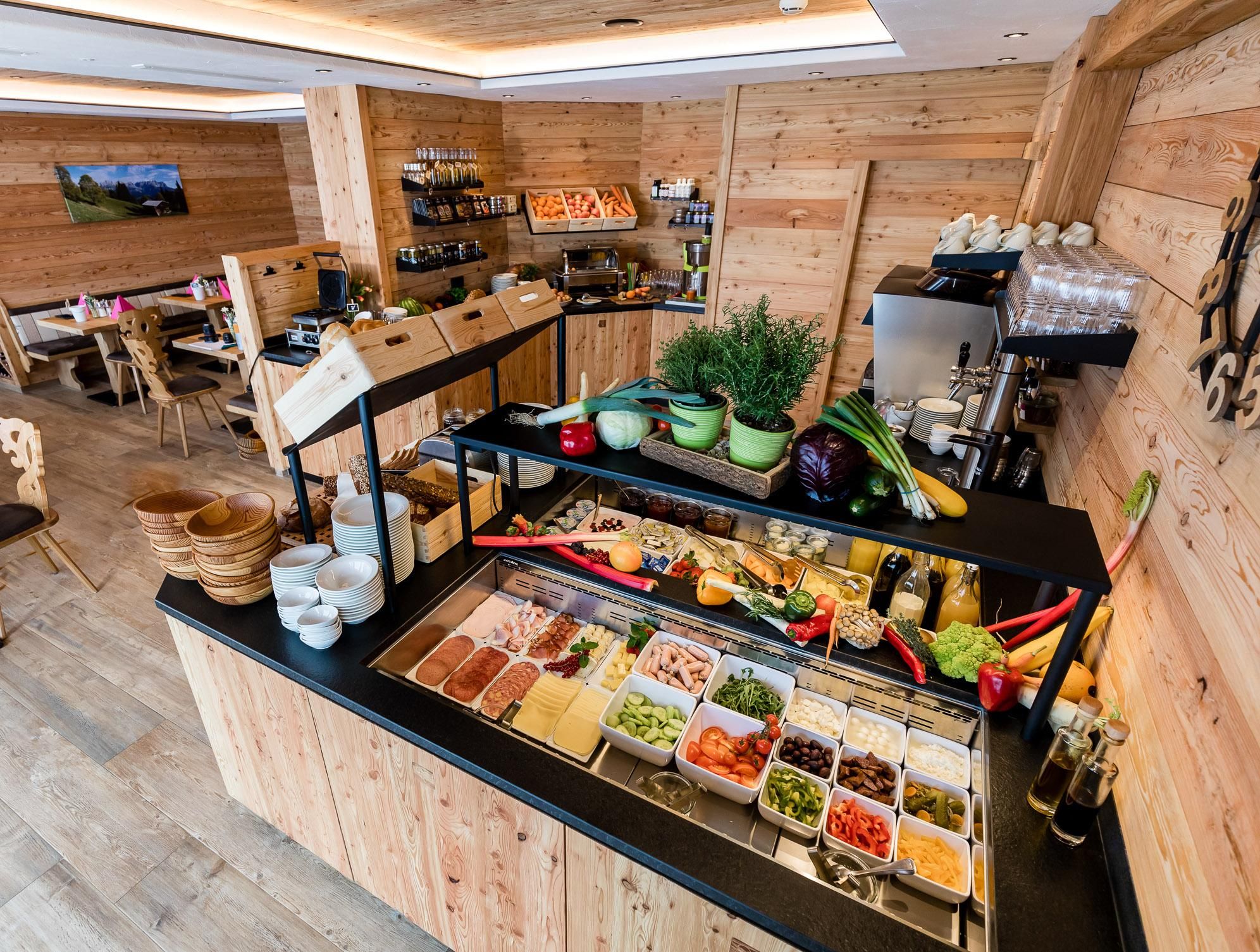 FREE Enjoy every moment! Your convenient quick check-in with personal arrival folder and your independent catering option via our gourmet shop with drinks, sweets, salty treats, bread, sausage, cheese and much more gives you the freedom to organise your day as you wish. You will receive a personal enjoyment pass and your own fridge compartment in our guest room. The entire splendour of the Wilder Kaiser mountain world greets you on our panorama terrace!