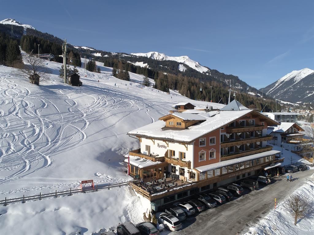 Our house “Hotel Rustika” is located in a quiet panoramic position directly to the snowy ski slopes and lifts, cable-railway “Family Jet” and the 6-seater chairlift “Hochmoosexpress” 150m from the ski school and training ground, “Bobo” Children´s Club. The ski-hire is just steps from the hotel.