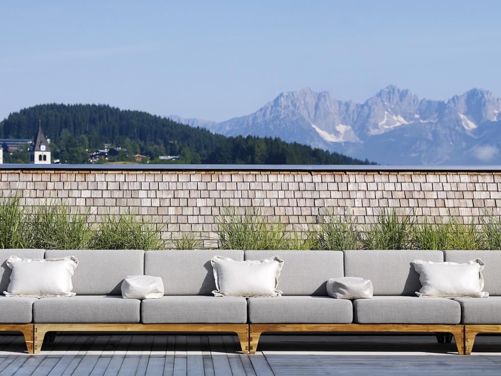 After an exciting day on the mountain or shopping and discovering Kitzbühel, our Black Spa area invites you to relax. Our highlight: the 360° panoramic pool on the roof of the house (only open in summer).