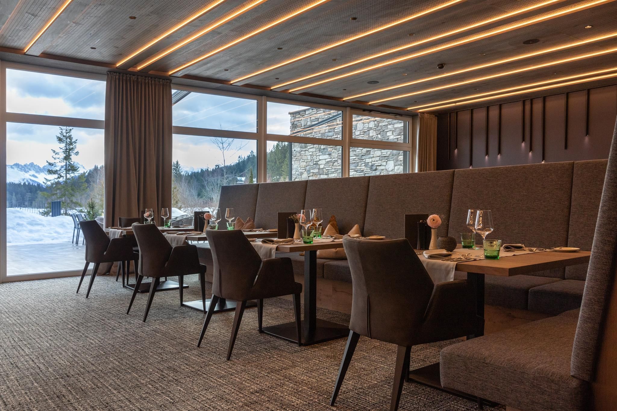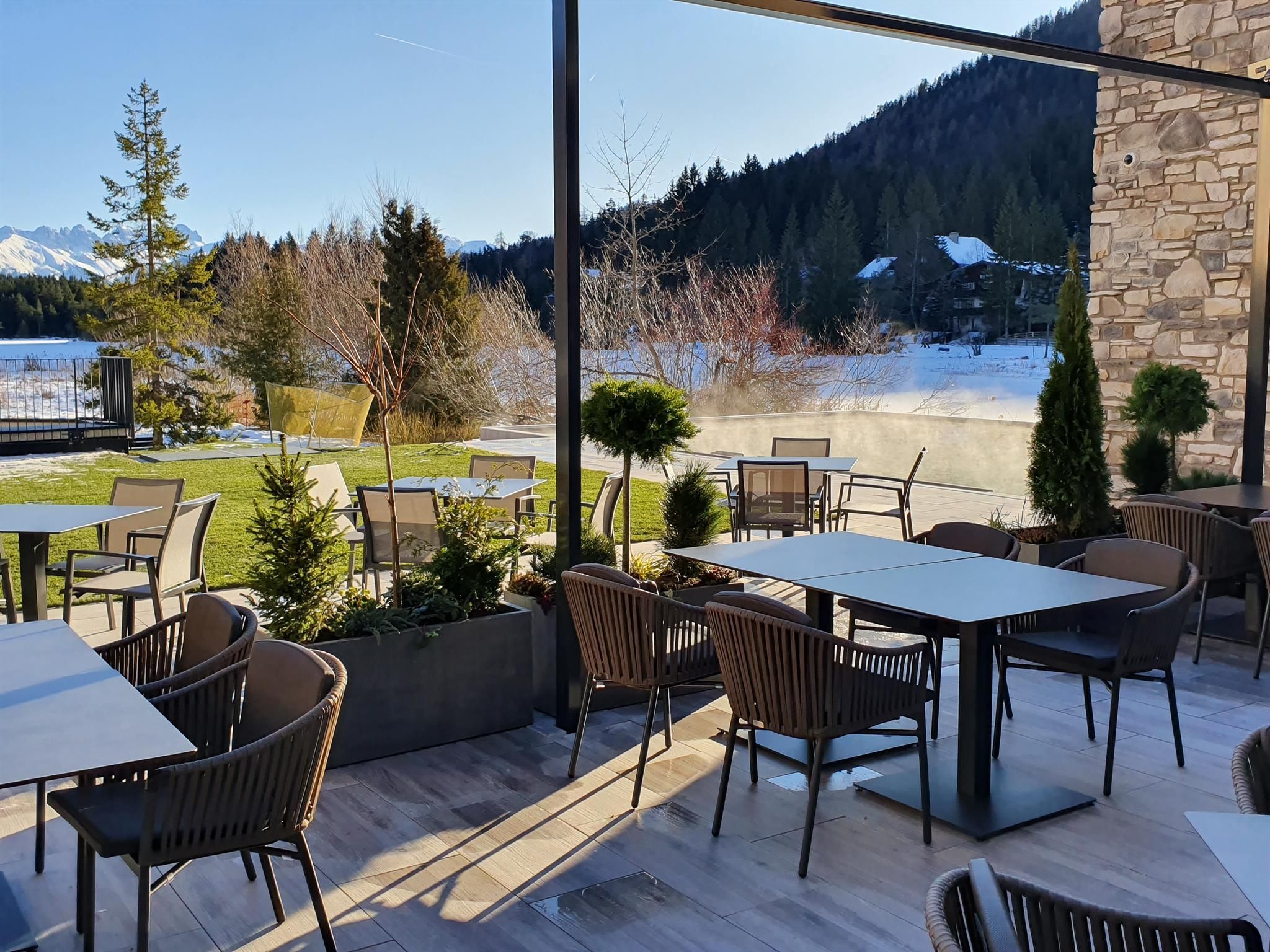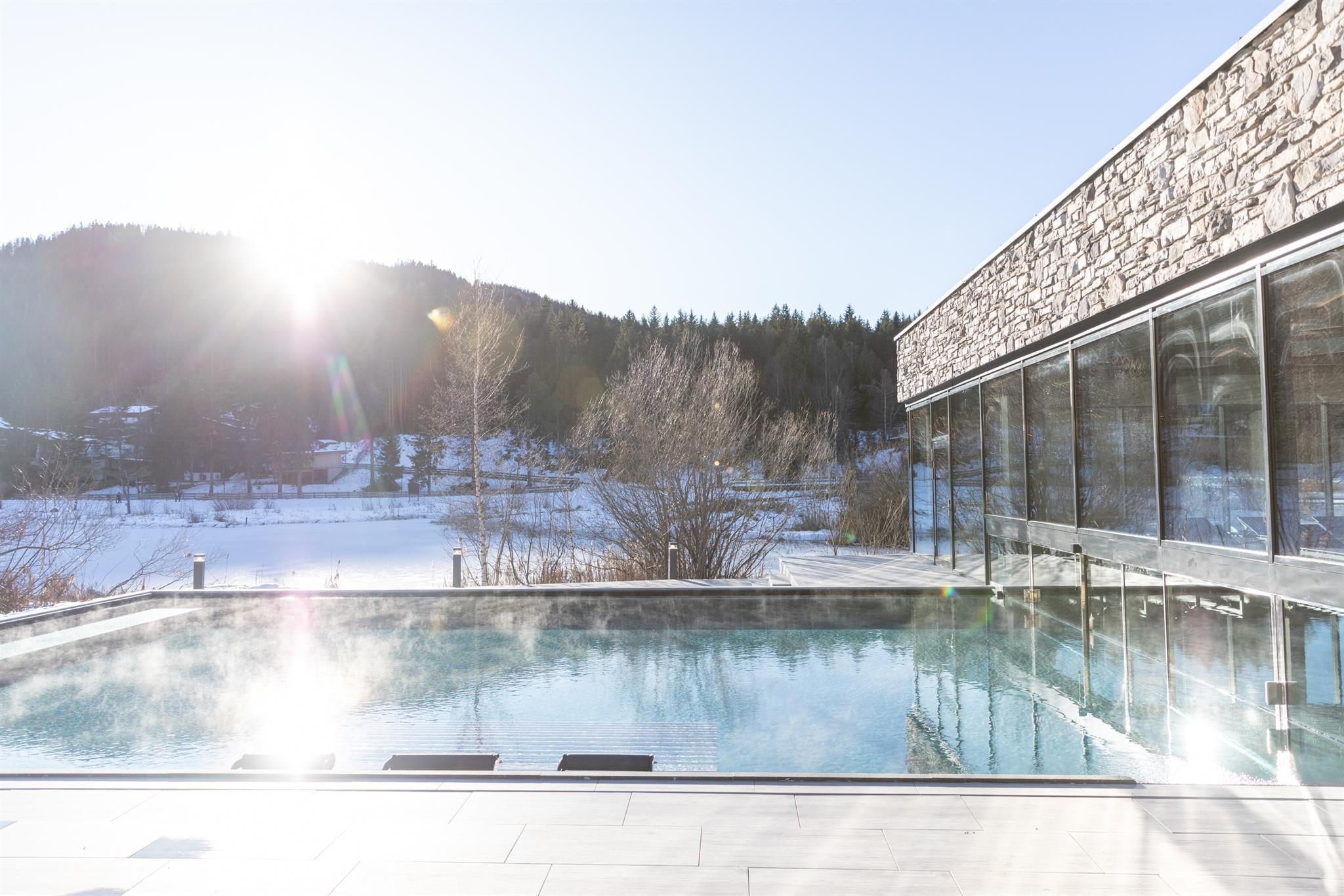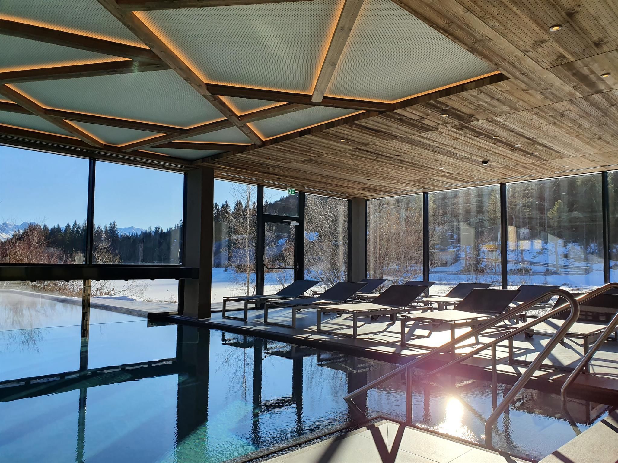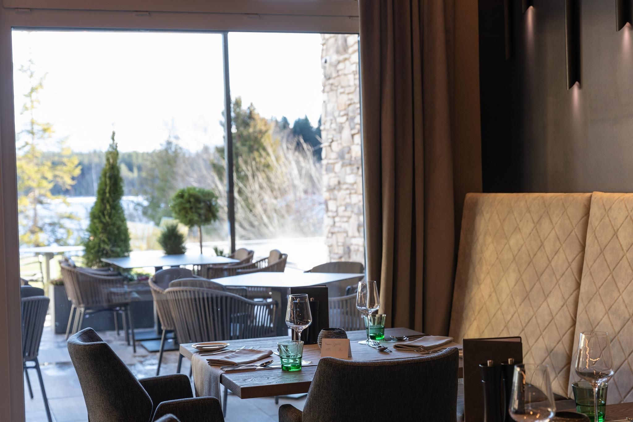 The entire lobby and restaurant area has been redesigned and adapted to the new design. The modern, alpine lifestyle ambience is characterized by lots of wood, stone and large windows that contribute to a cozy and open atmosphere. From our new Lake-SPA with heated indoor & outdoor pool, relaxation rooms, sauna cabins, treatment rooms and vitality buffet (with healthy snacks and drinks) you can enjoy the view over the lake "Wildsee" and the impressive mountain panorama.