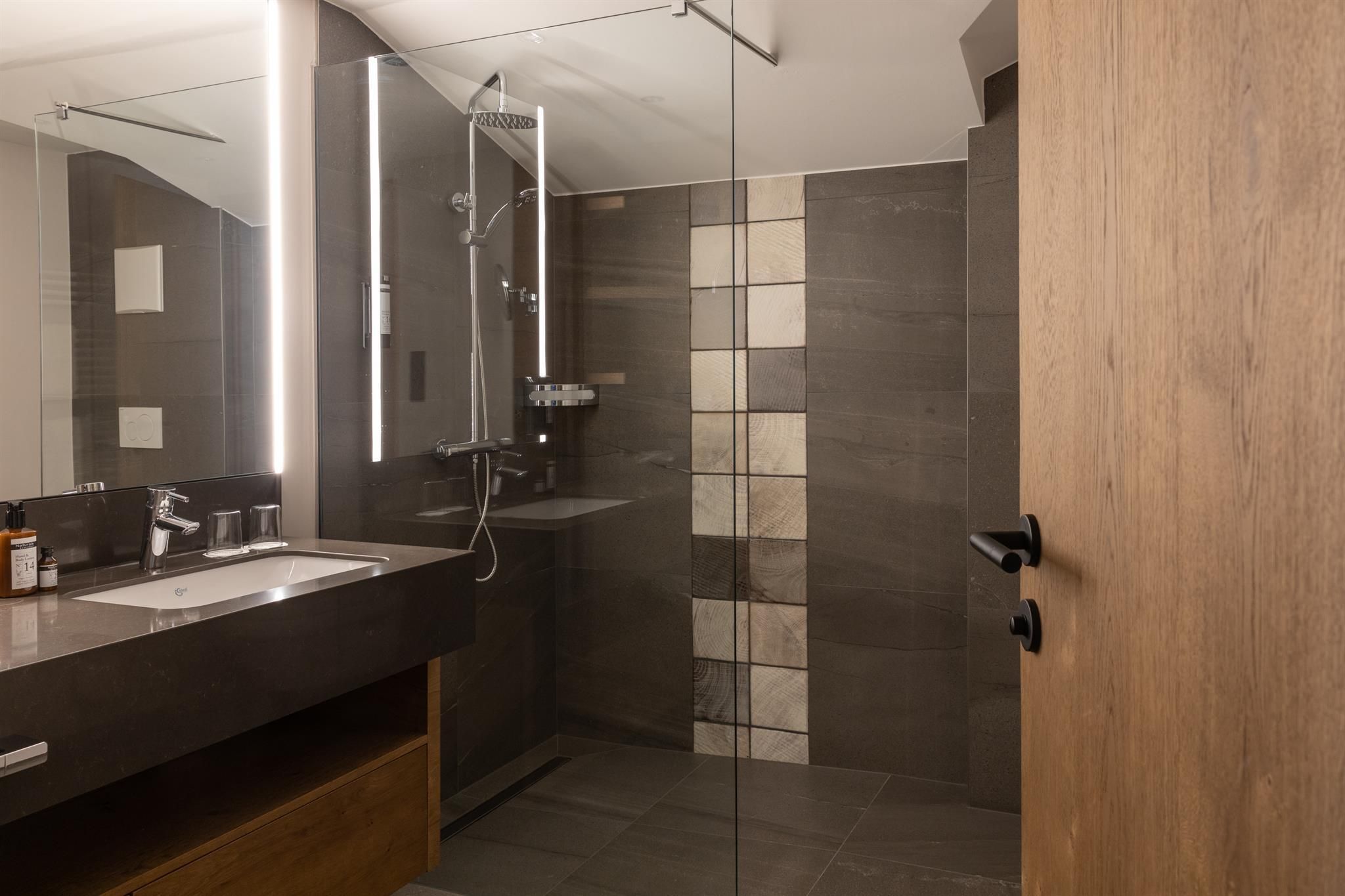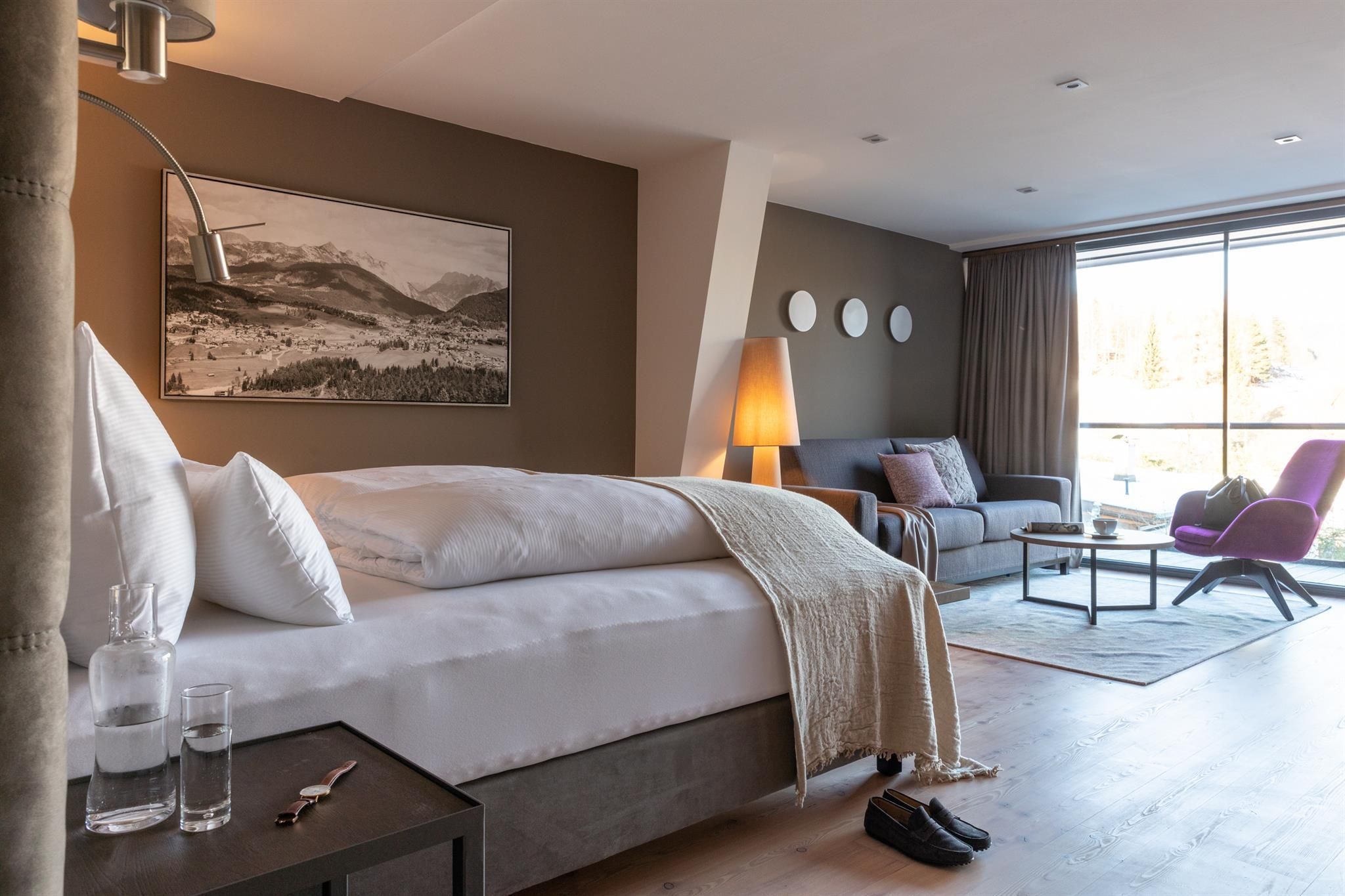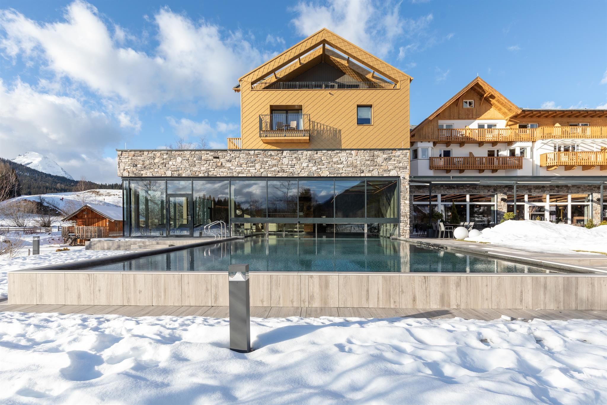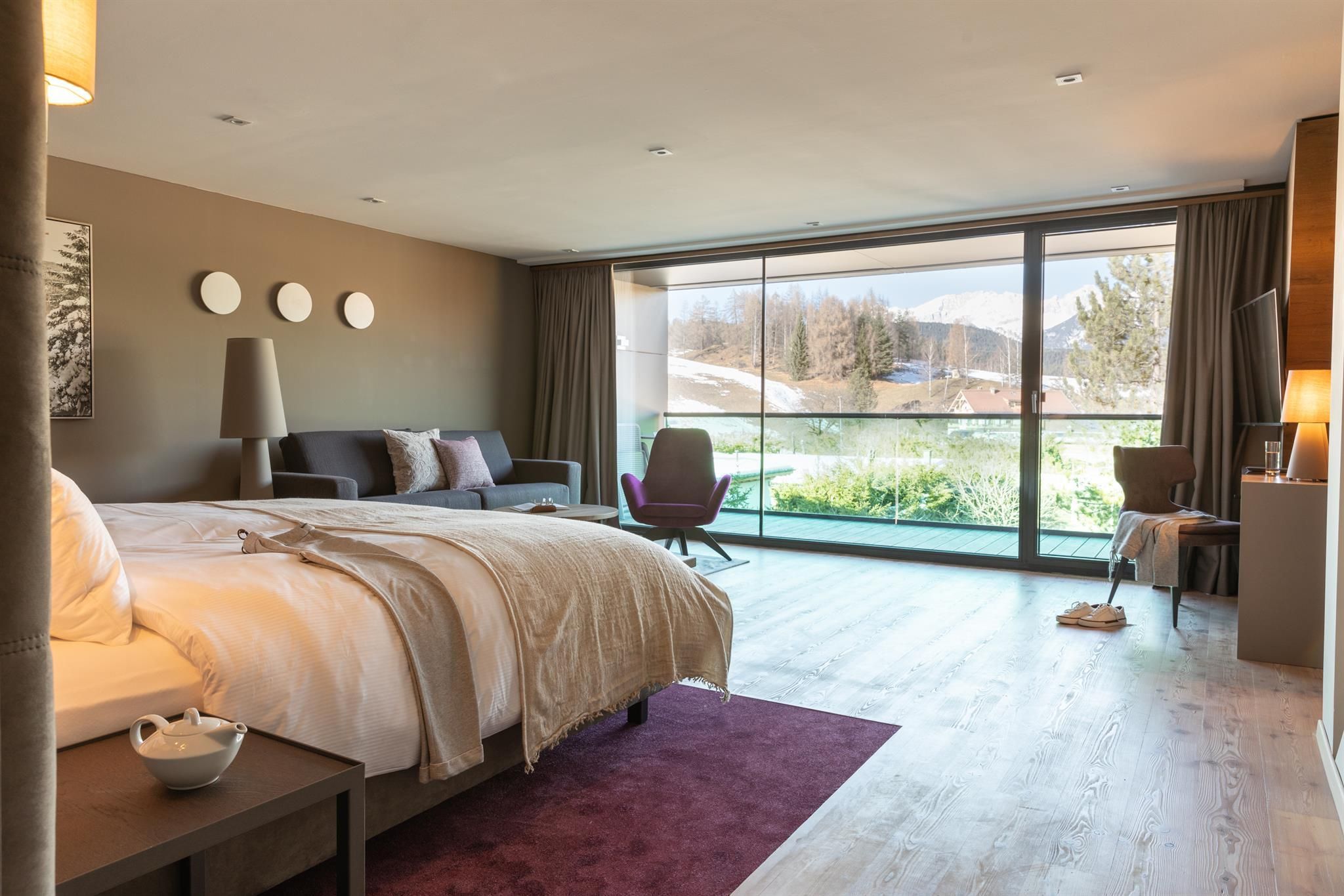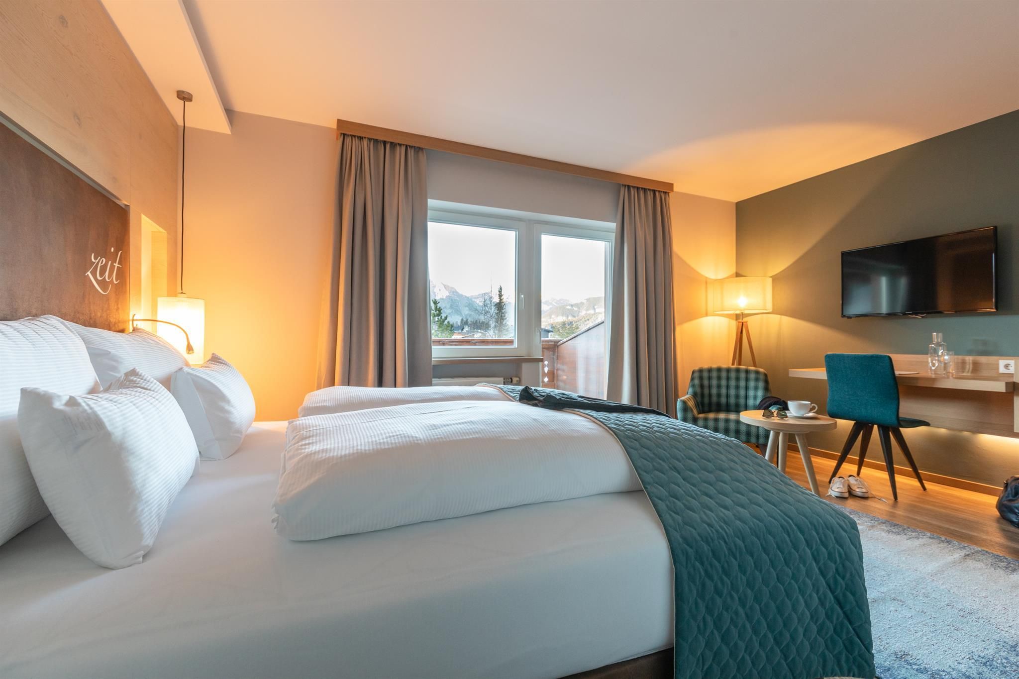 The entire lobby and restaurant area has been redesigned and adapted to the new design. The modern, alpine lifestyle ambience is characterized by lots of wood, stone and large windows that contribute to a cozy and open atmosphere. From our new Lake-SPA with heated indoor & outdoor pool, relaxation rooms, sauna cabins, treatment rooms and vitality buffet (with healthy snacks and drinks) you can enjoy the view over the lake "Wildsee" and the impressive mountain panorama.