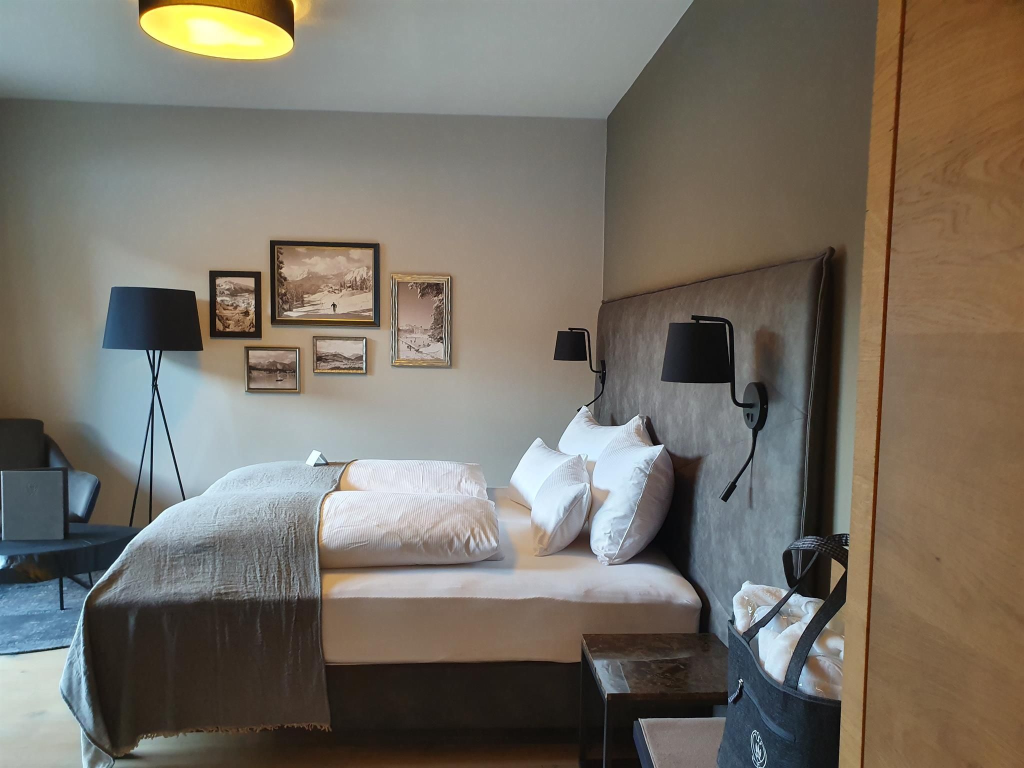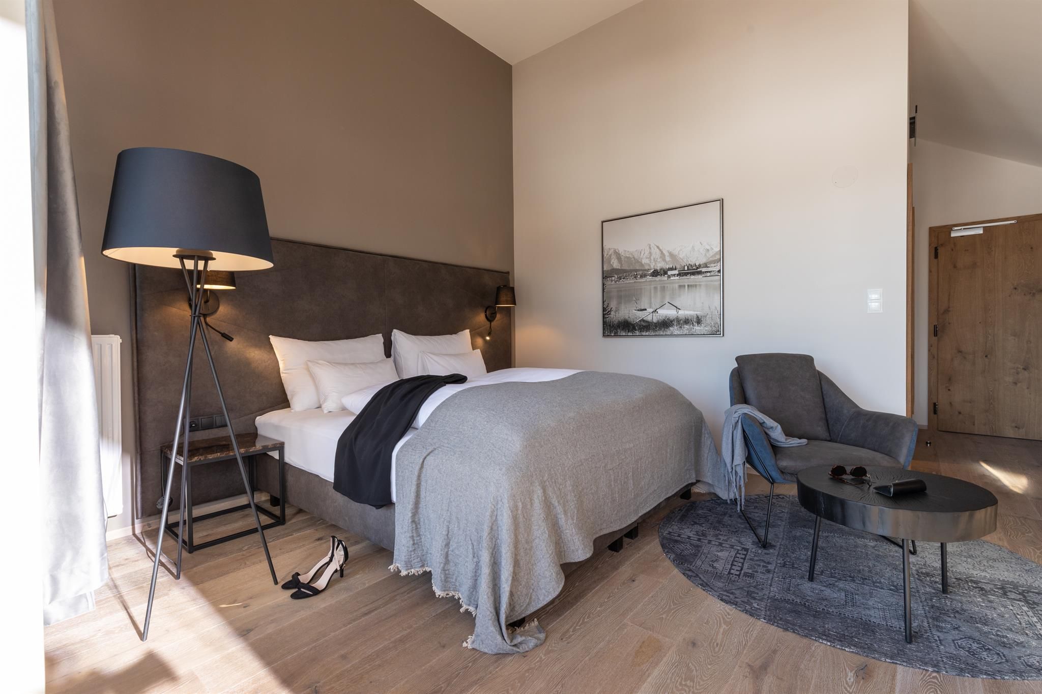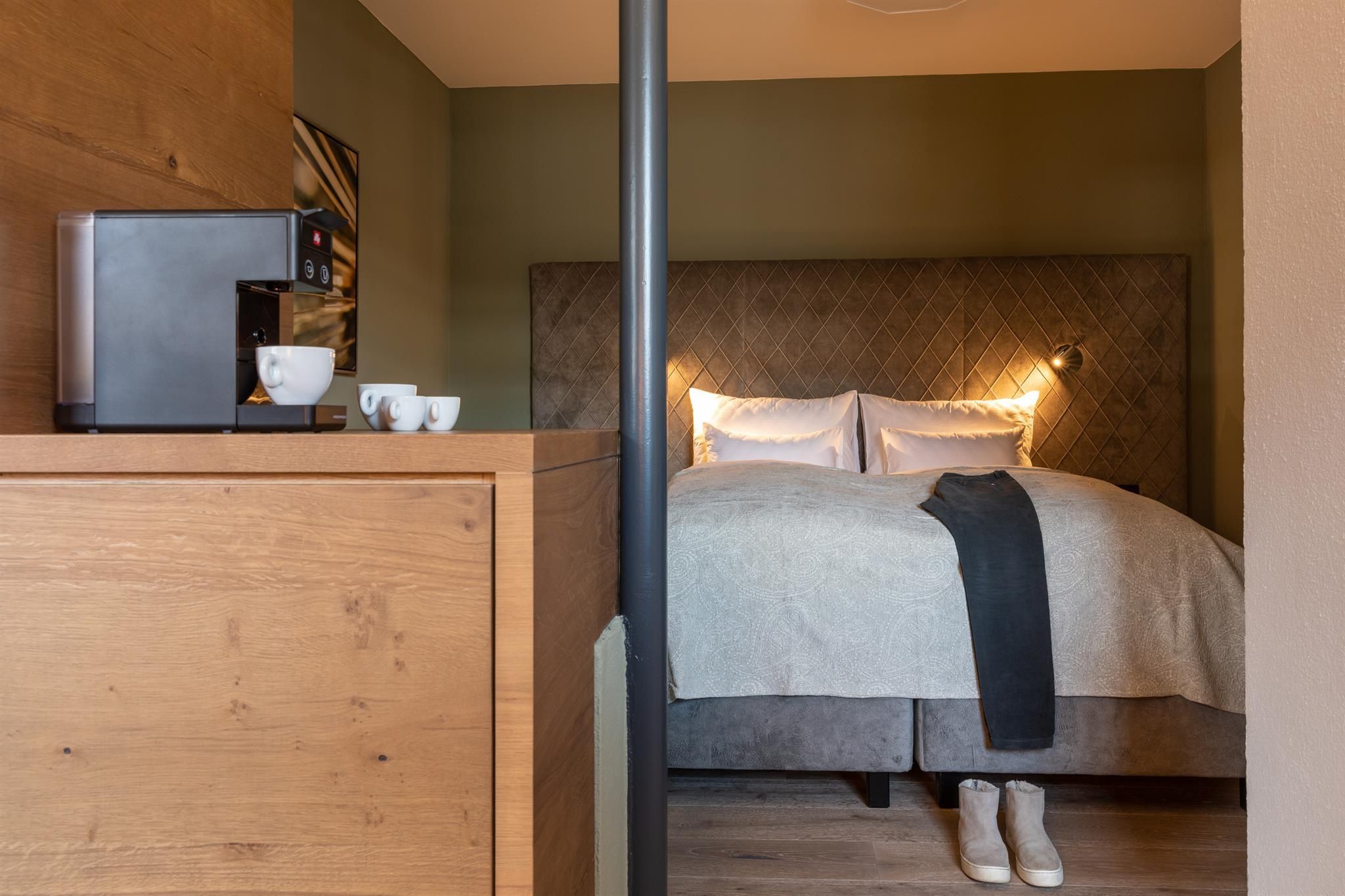 Each of the rooms at the Hotel Seespitz provides numerous arguments that couples and families find a place of recreation. All guest rooms are equipped with real wood flooring (occasionally synthetic parquet), most with balcony or terrace with lake view, separable box spring beds, a wellness bag with cozy bathrobes & slippers, a walk-in shower, Bluetooth speaker, flat screen TV, WIFI, telephone, safe, fridge (filled when requested), capsule coffee machine & kettle with a tea assortment, hair dryer and cosmetic mirror. In the rooms with available synthetic parquet flooring pets can be accommodated on request.