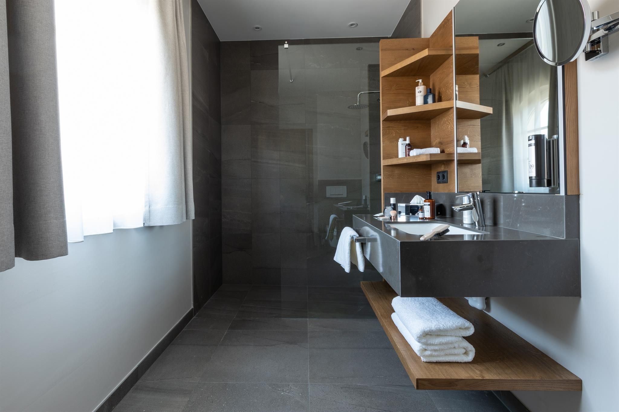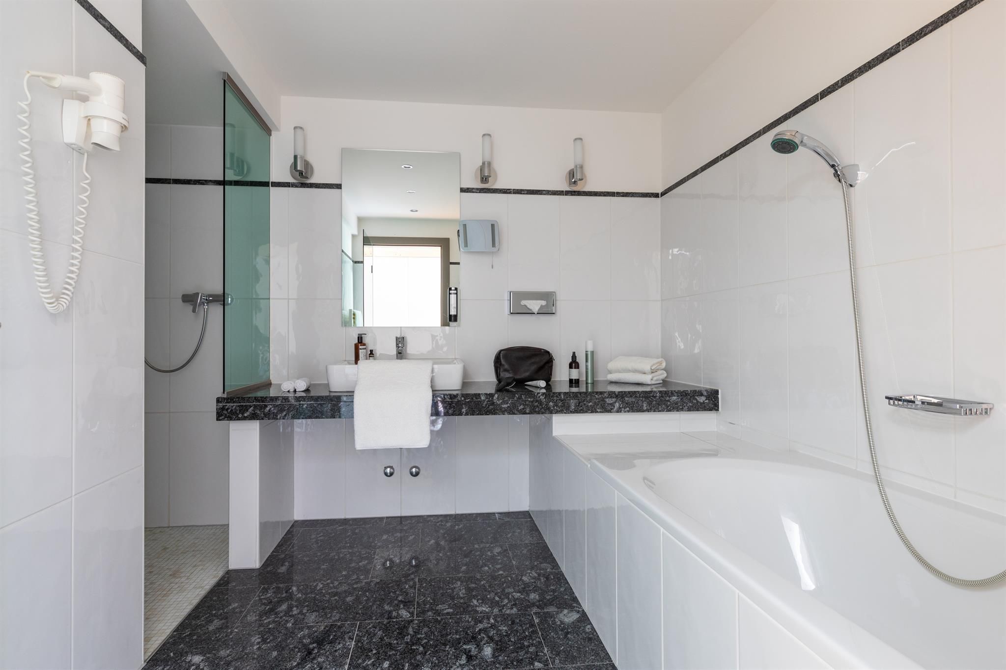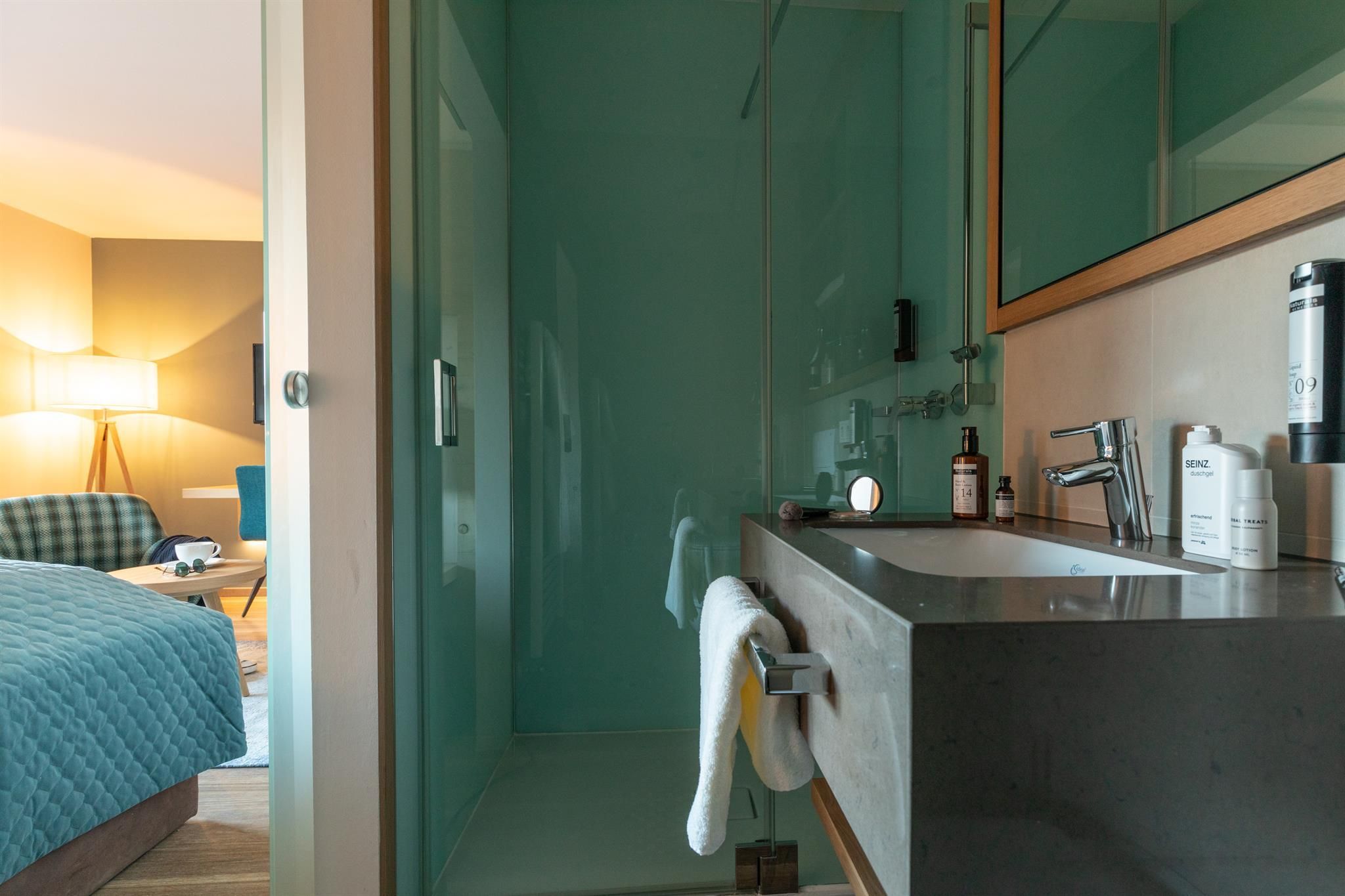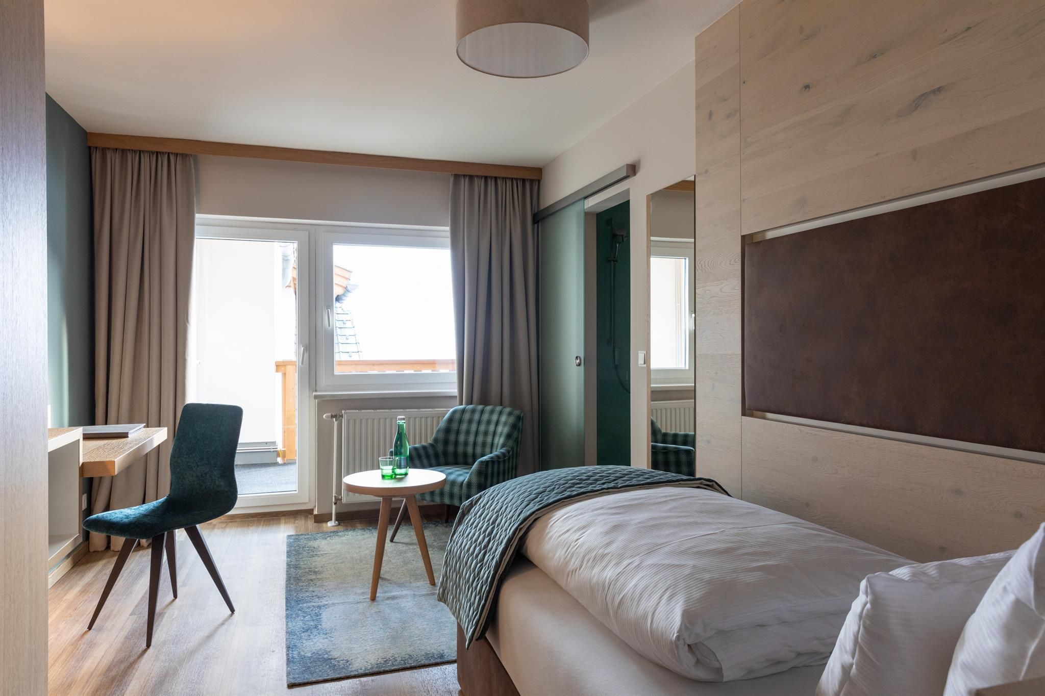 Each of the rooms at the Hotel Seespitz provides numerous arguments that couples and families find a place of recreation. All guest rooms are equipped with real wood flooring (occasionally synthetic parquet), most with balcony or terrace with lake view, separable box spring beds, a wellness bag with cozy bathrobes & slippers, a walk-in shower, Bluetooth speaker, flat screen TV, WIFI, telephone, safe, fridge (filled when requested), capsule coffee machine & kettle with a tea assortment, hair dryer and cosmetic mirror. In the rooms with available synthetic parquet flooring pets can be accommodated on request.